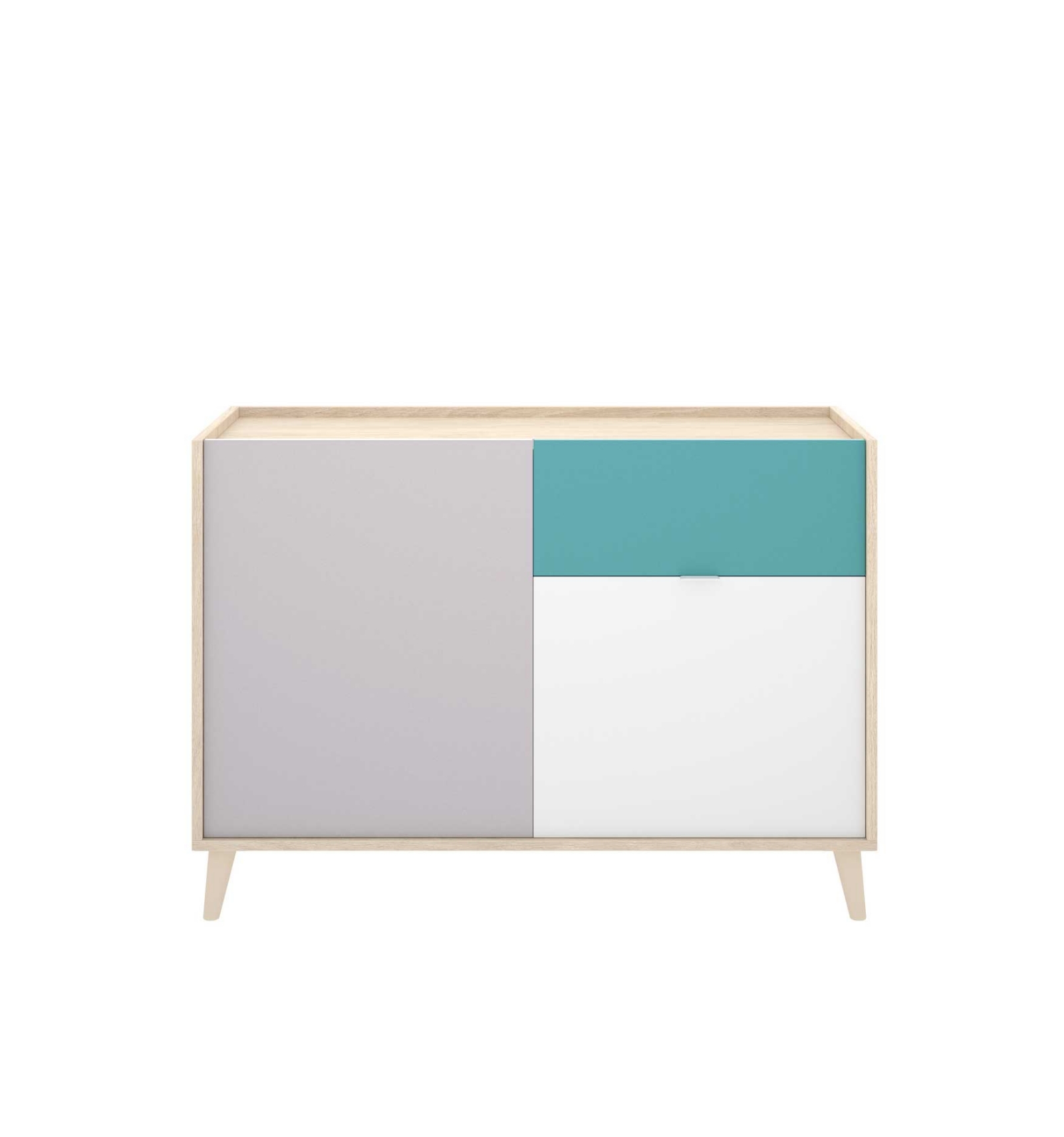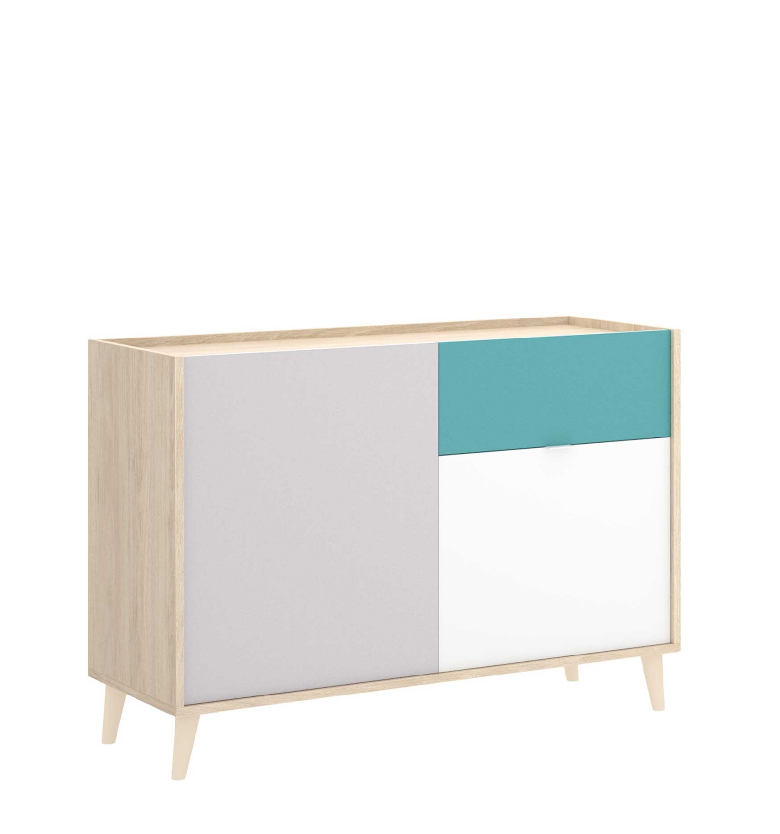 Además de tener un estilo muy retro gracias a su combinación de colores, este aparador cuenta con 2 puertas y un cajón. Dispone de un amplio espacio en su interior donde podrás almacenar todo lo que quieras y así tener tu salón organizado y recogido.