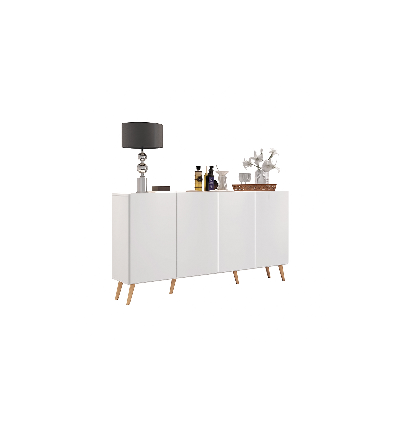 El aparador bufet blanco AGATA de 4 puertas es una pieza elegante y funcional que añade un toque de distinción a cualquier espacio de tu hogar.