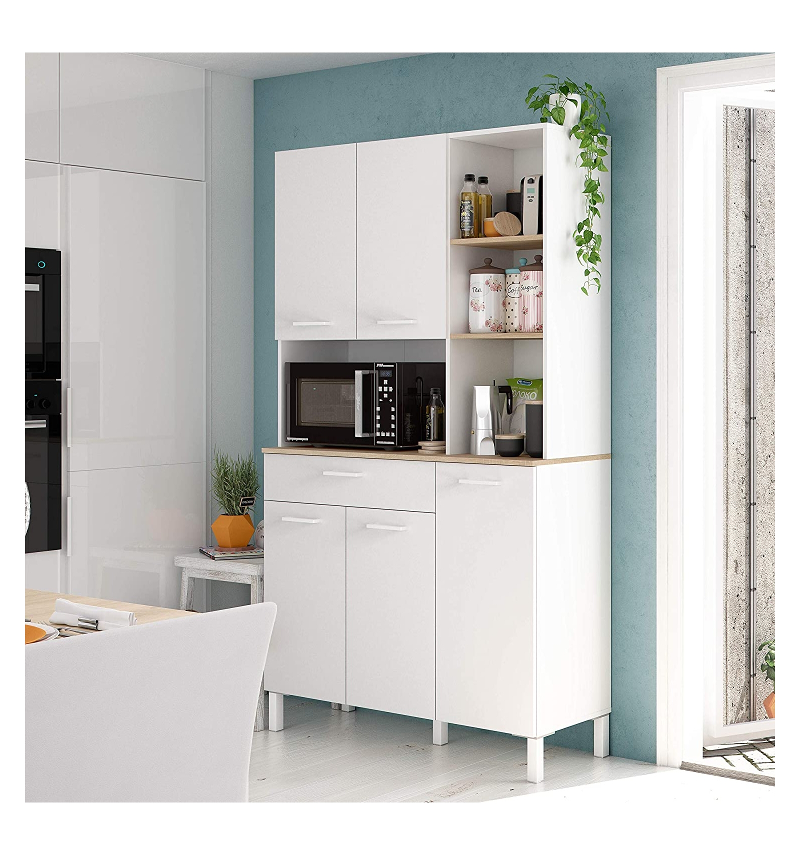 Su acabado de melamina hará que puedas limpiarla fácilmente con un paño húmedo y detergentes no agresivos. ¡El mueble auxiliar Berilo será el complemento perfecto para tu cocina, ya que tiene un estilo muy nórdico y queda bien con cualquier decoración gracias a su color blanco y roble! ¡Organiza todos tus utensilios de cocina y dale un toque moderno a la estancia más especial de tu casa!