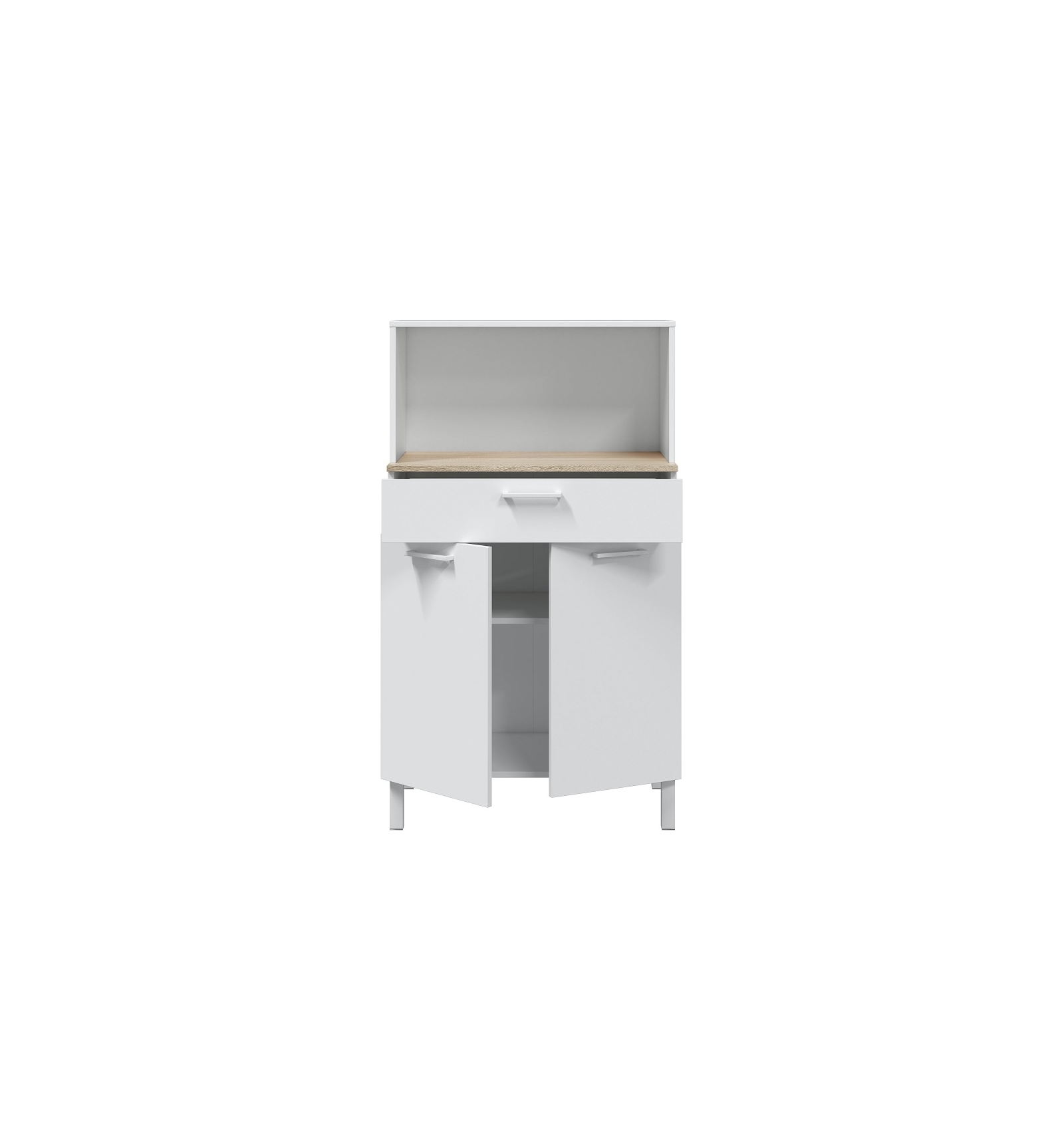 • Funcionalidad: Gran capacidad de almacenaje en su interior. Compuesto por un armario y un hueco donde podrás poner el microondas o los electrodomésticos que desees.