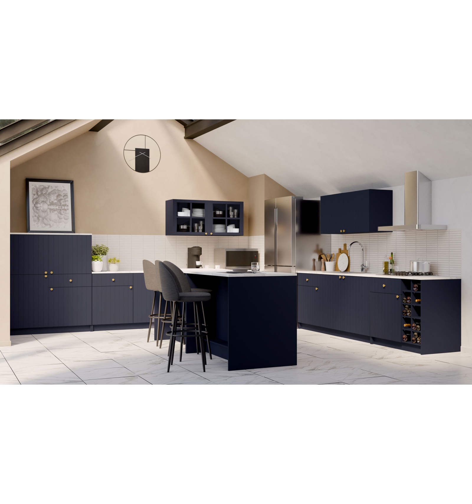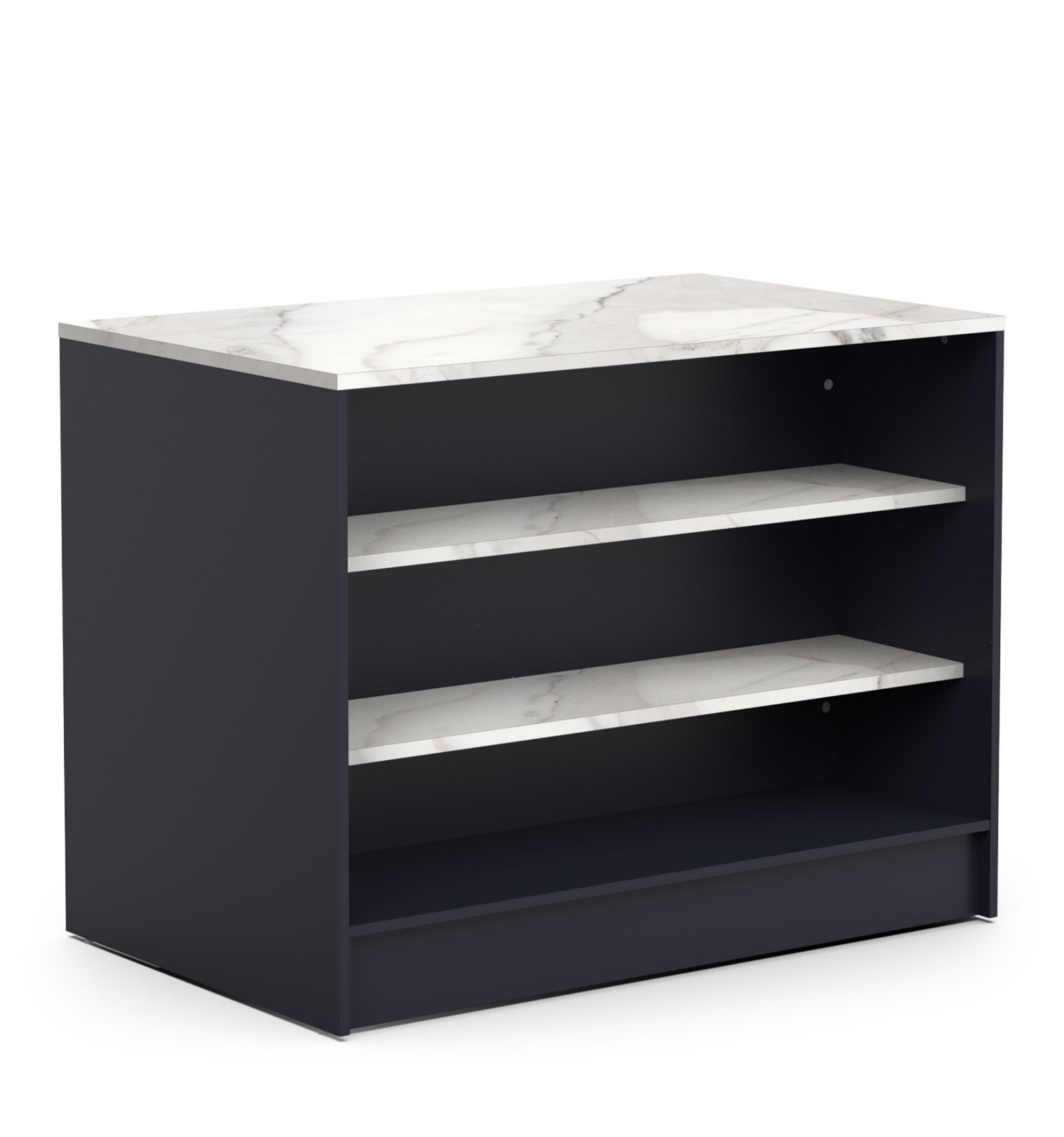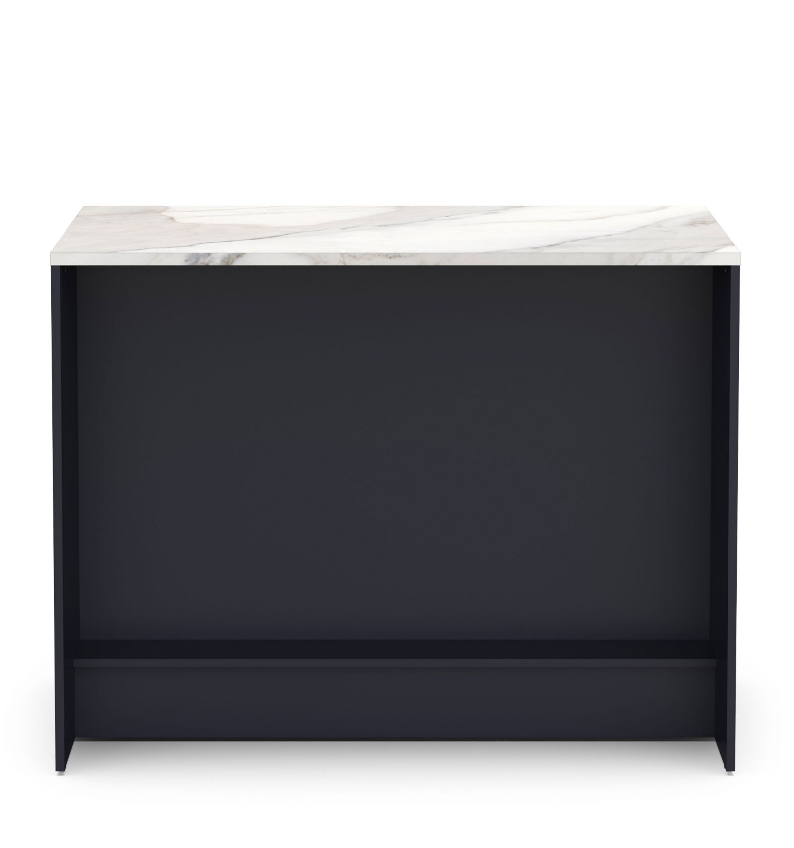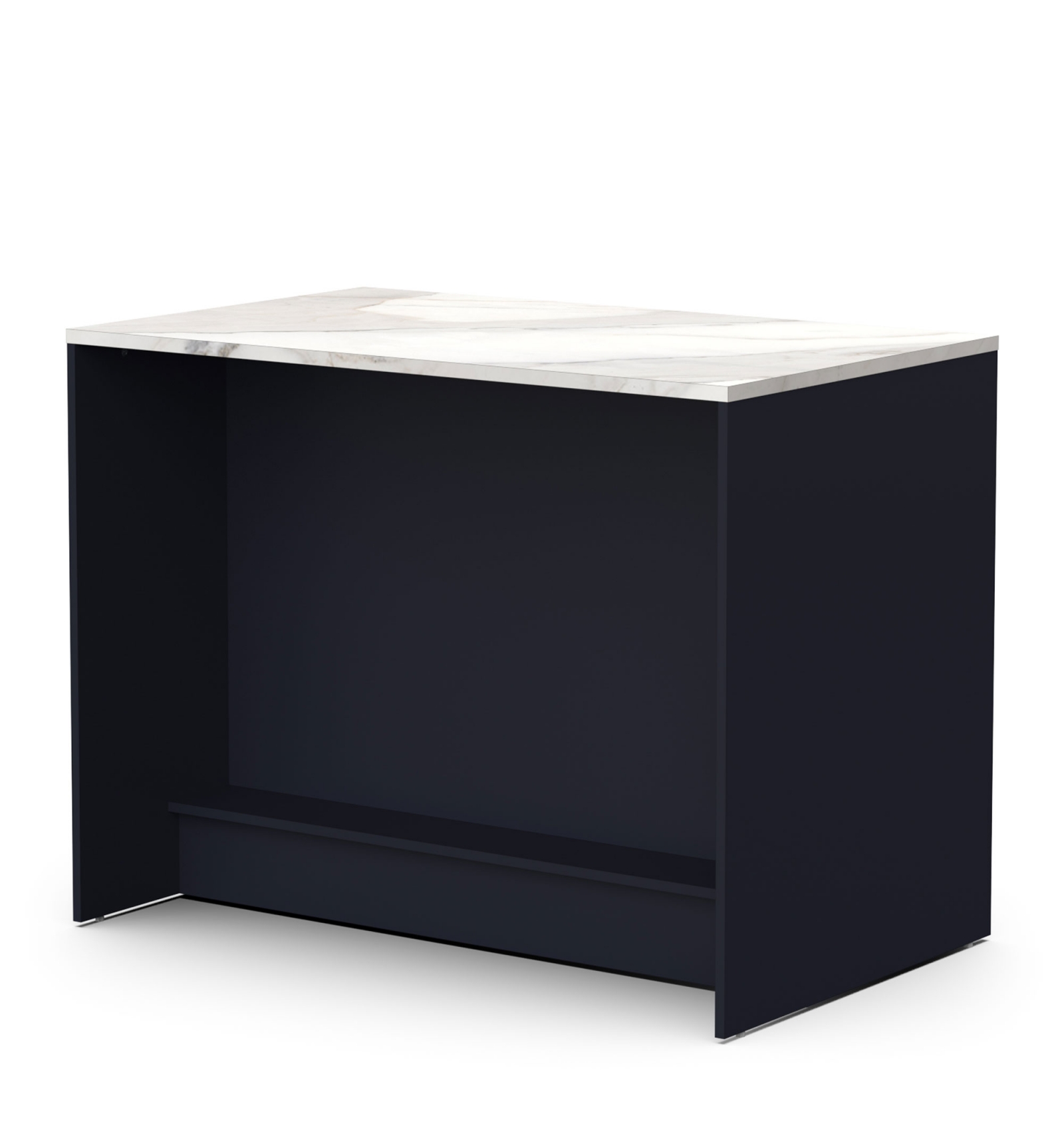 Con un diseño moderno que combina un acabado en azul índigo, mármol y blanco, este mueble se convierte en el centro de atención de cualquier espacio.