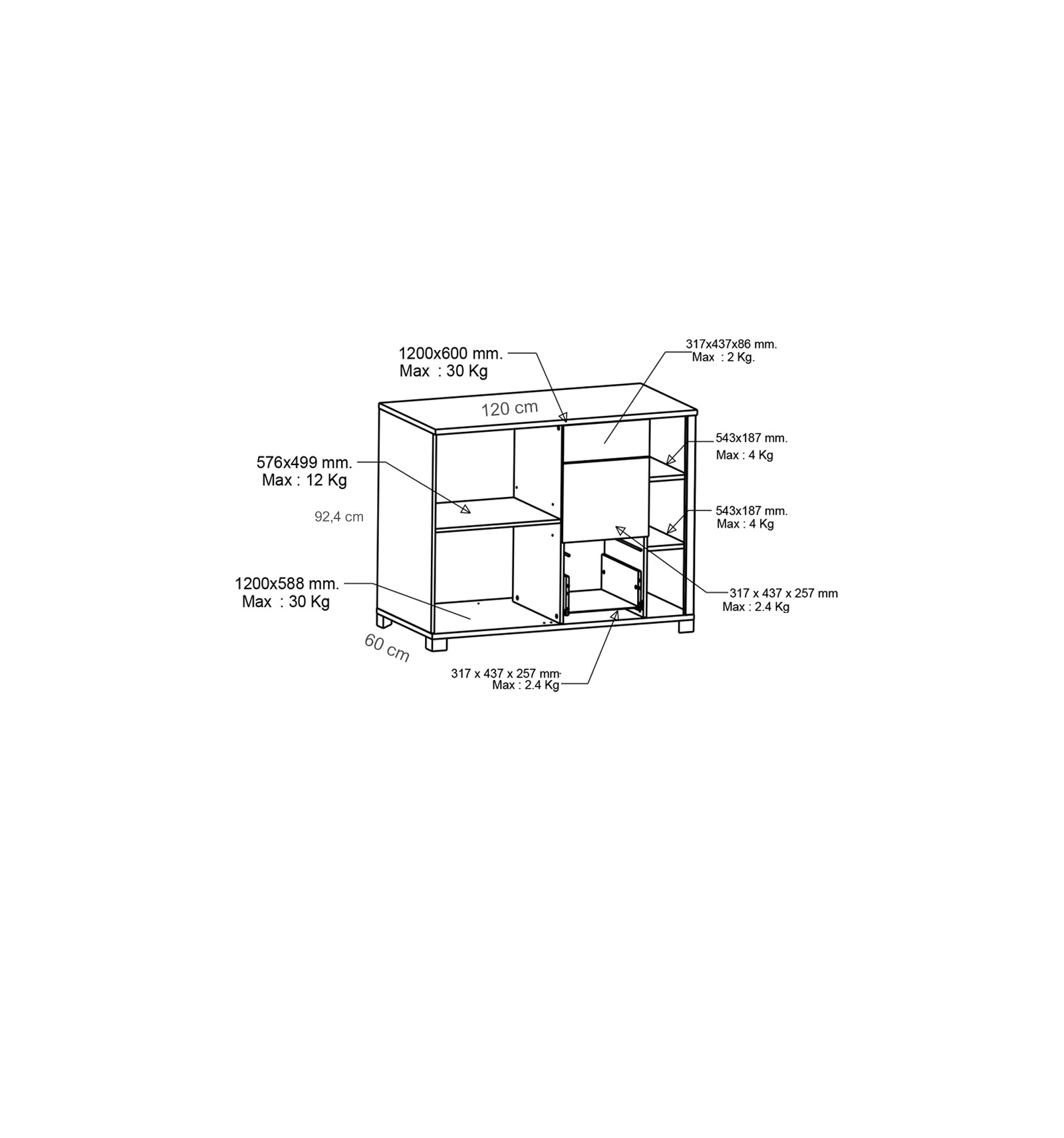 | Otras características: | Estantes laterales 54,3 x 18,7 cm |
