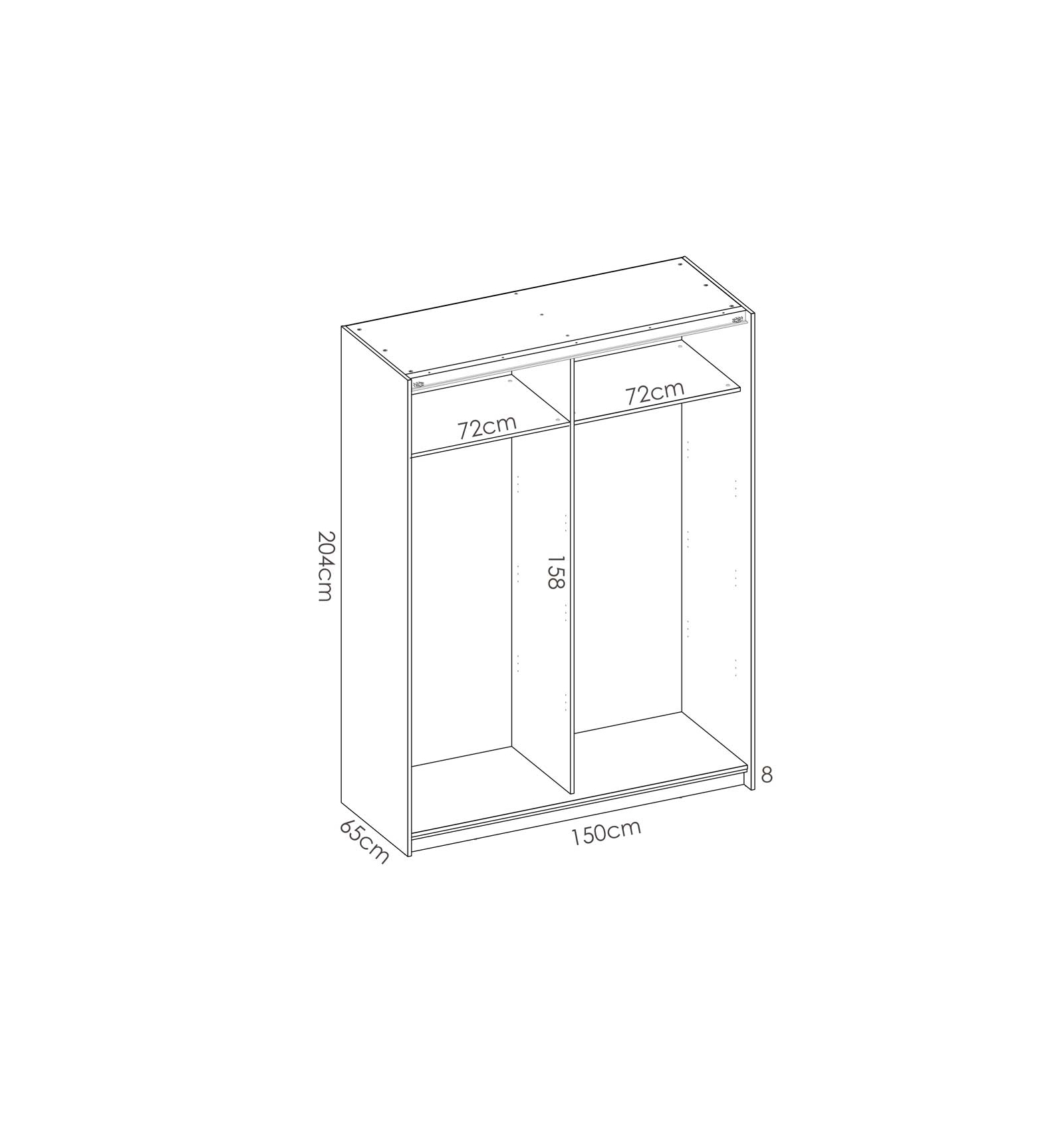 El Armario STEF combina diseño moderno, resistencia y funcionalidad. Su estructura de melamina de 16 mm y su sistema de puertas correderas lo convierten en una opción ideal para mantener la ropa organizada y aprovechar al máximo el espacio de tu habitación.