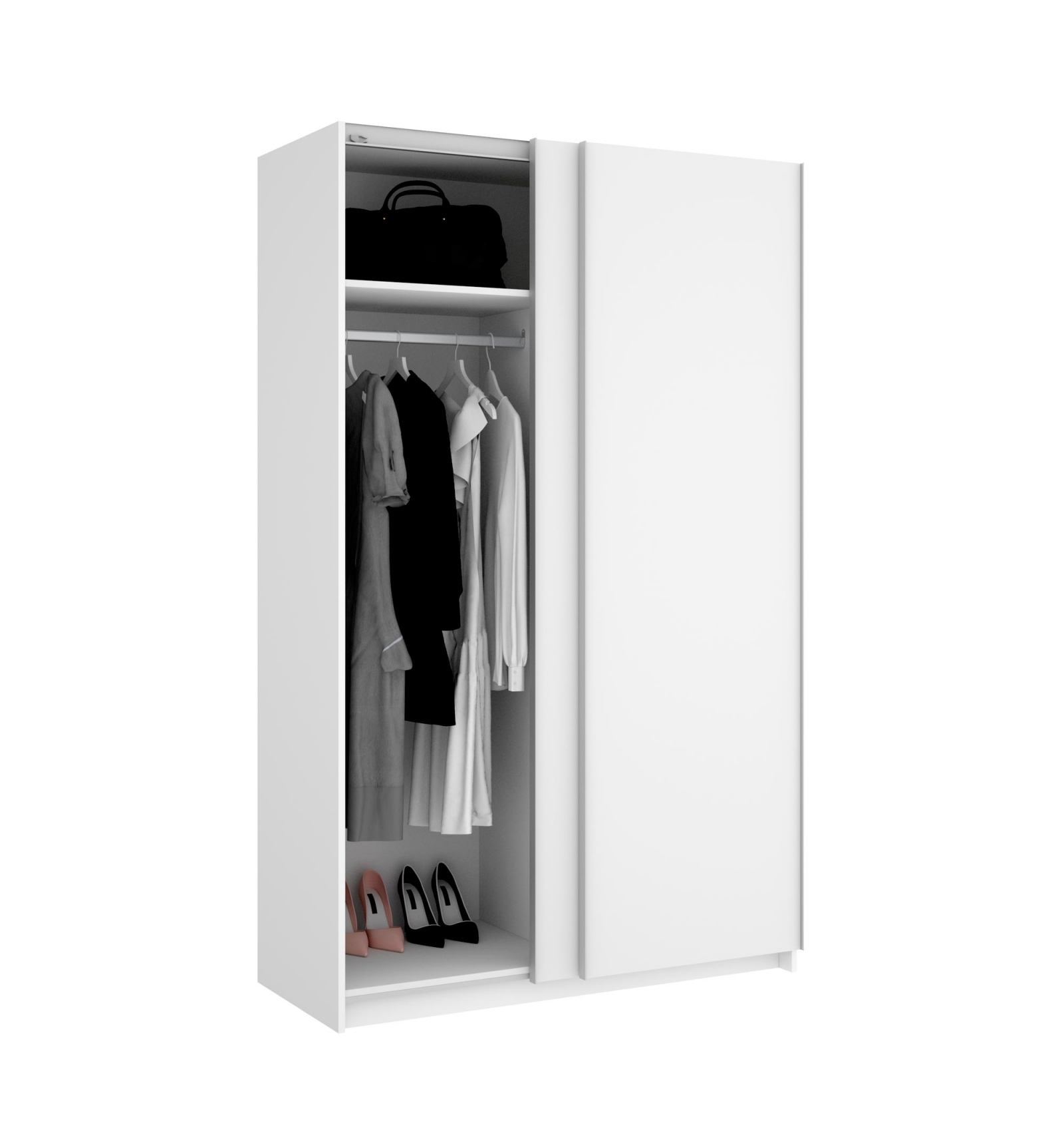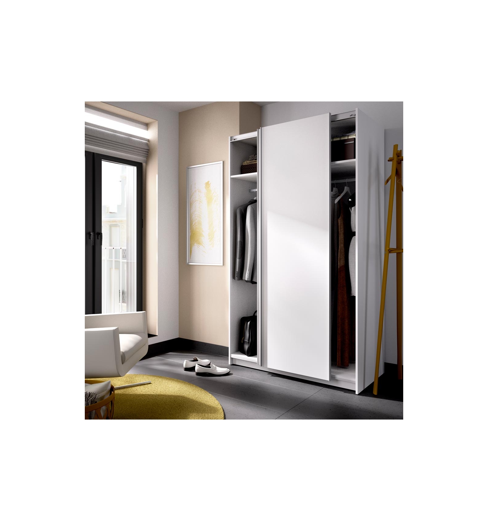 No te conformes con menos, elige nuestro armario ropero blanco con dos puertas correderas y división interior para transformar tu espacio de almacenamiento en un lugar funcional y elegante.