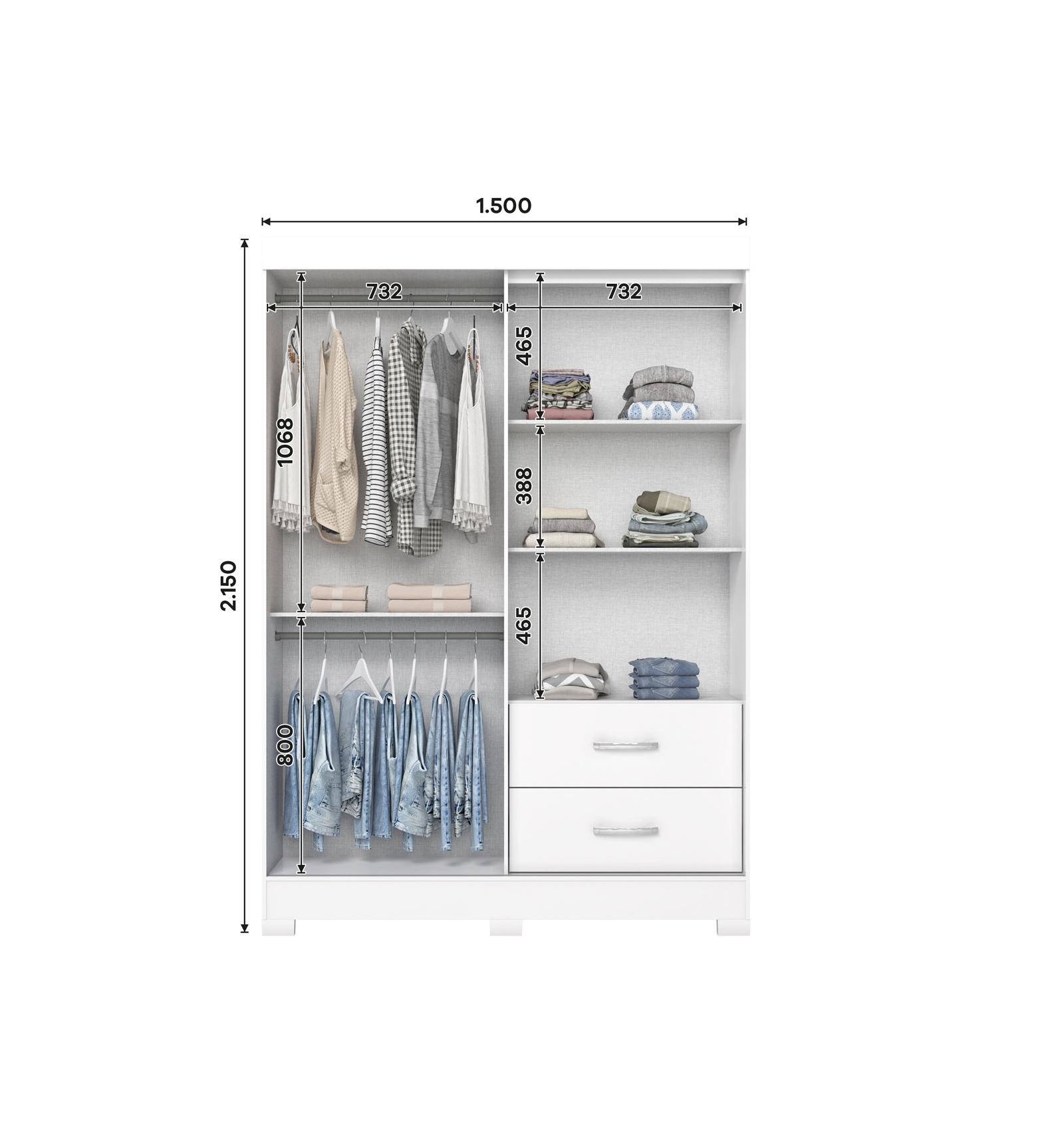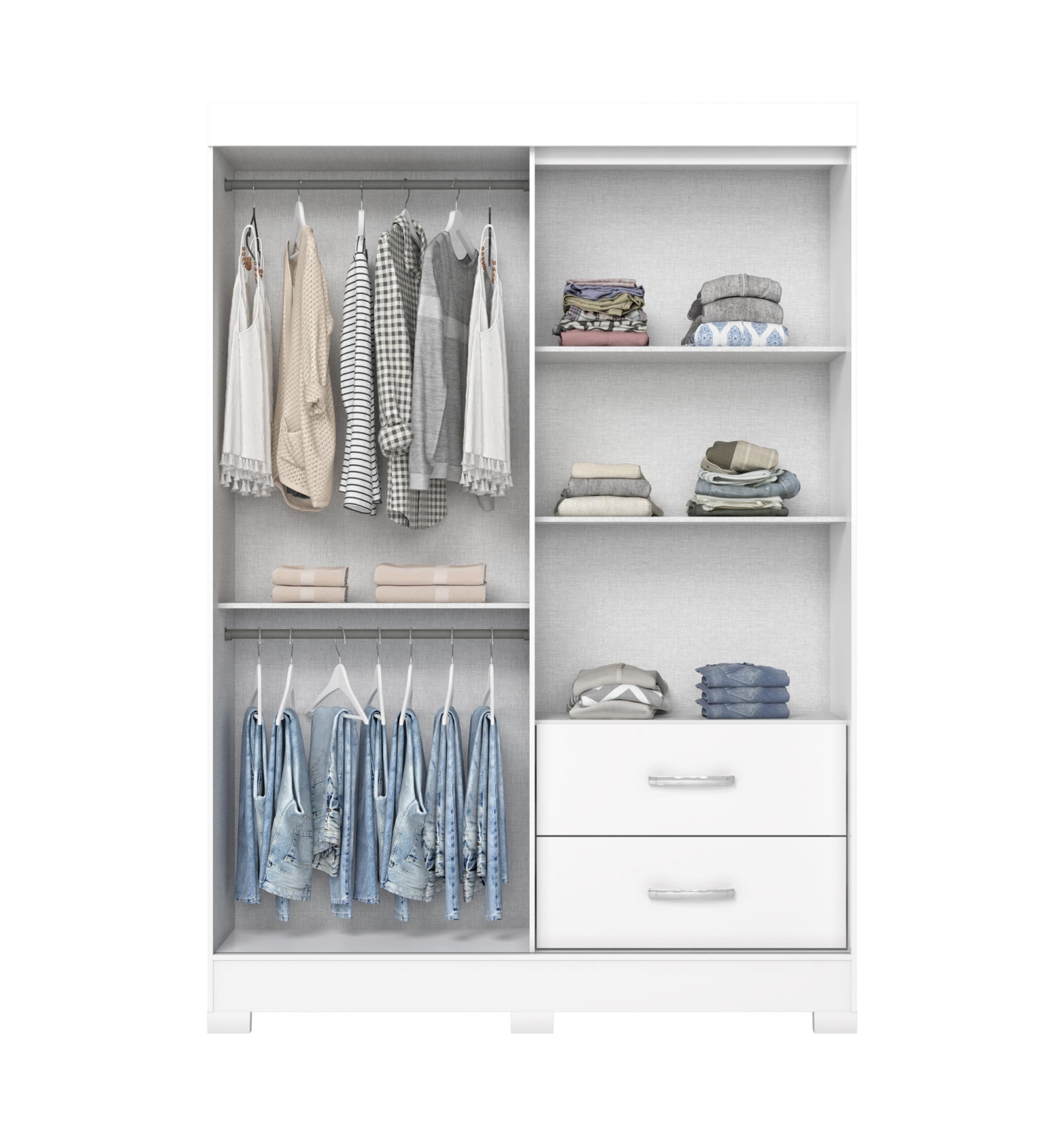 ✅ Zonas de colgado dobles y estantes fijos