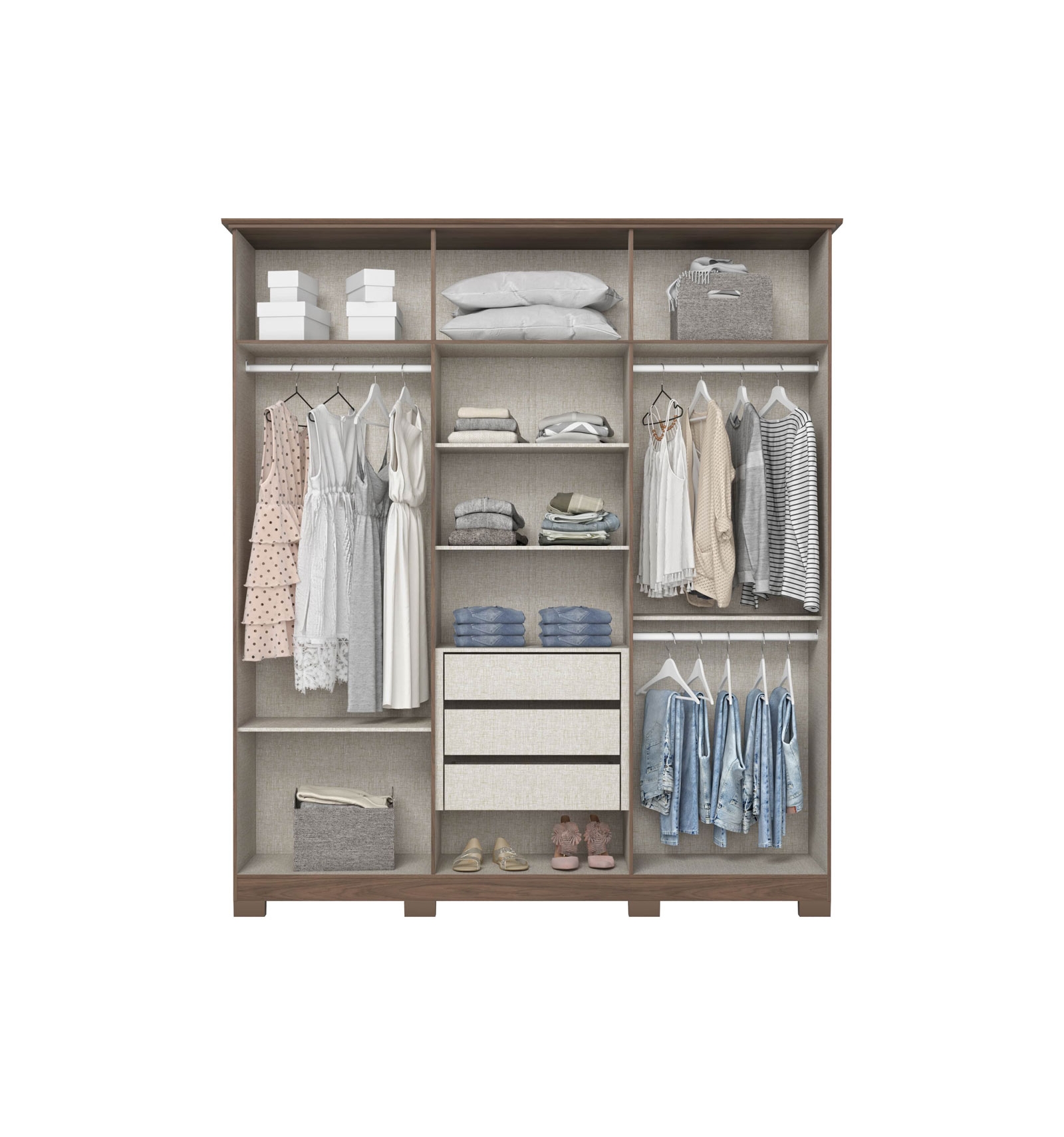 El Armario Crisol ofrece soluciones completas de almacenaje para tu ropa, accesorios y calzado. Funcional, resistente y elegante, ideal para mantener cualquier dormitorio organizado y armonioso.