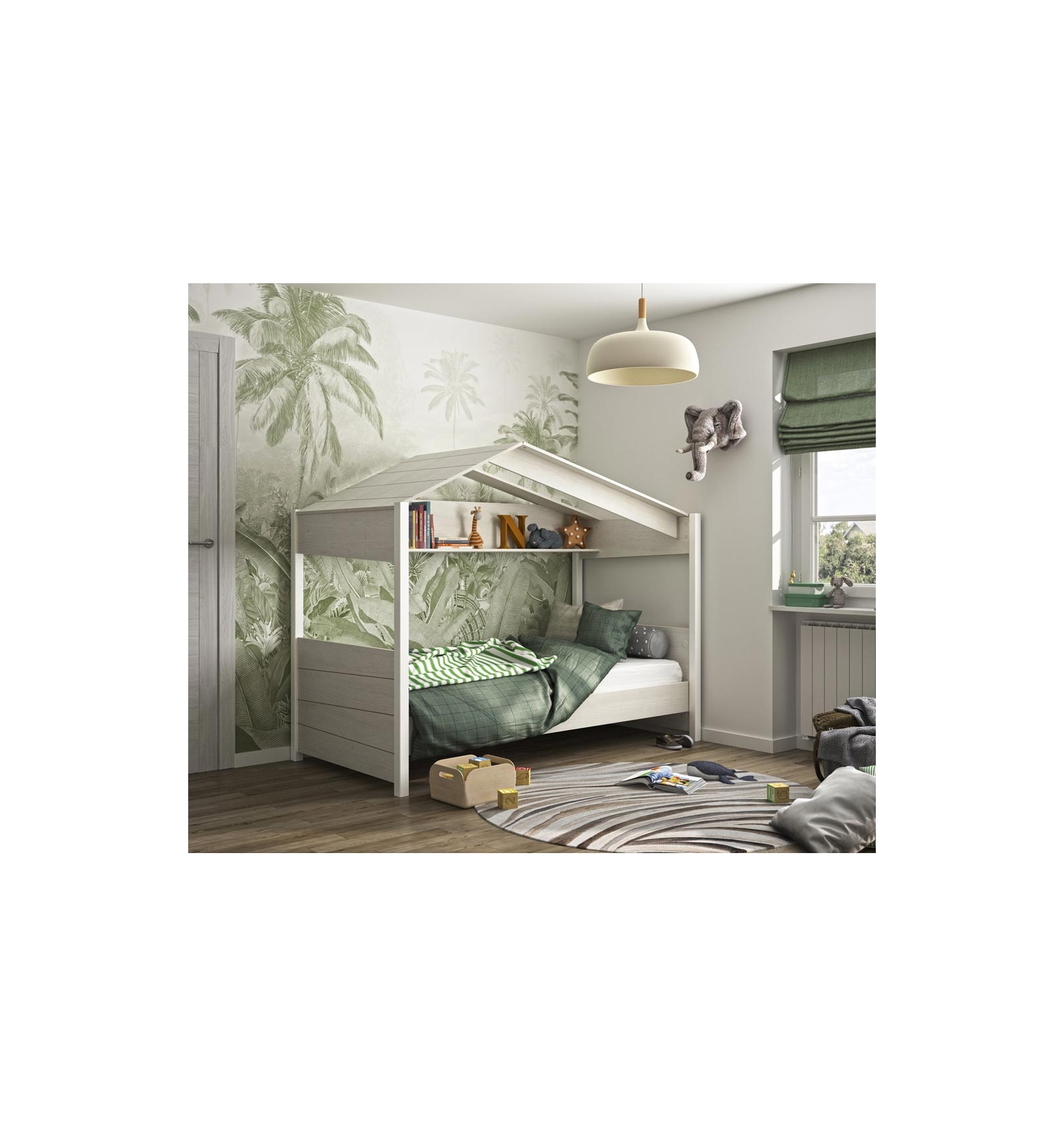 ¡La cama casita infantil Klerk es la elección perfecta para brindar a tu hijo un espacio encantador donde jugar y dormir. Esta cama casita está diseñada para un colchón de tamaño 90 x 200 cm proporcionando comodidad y descanso óptimos. Además, cuenta con una práctica estantería para almacenar libros y juguetes, manteniendo el espacio ordenado y organizado. El diseño de la cama presenta detalles de ranuras en ciertos paneles, creando un efecto de "tablones de madera" encantador. Con su estilo de cabaña y techo de listones, esta cama casita brinda un toque de encanto y aventura a la habitación de tus hijos.