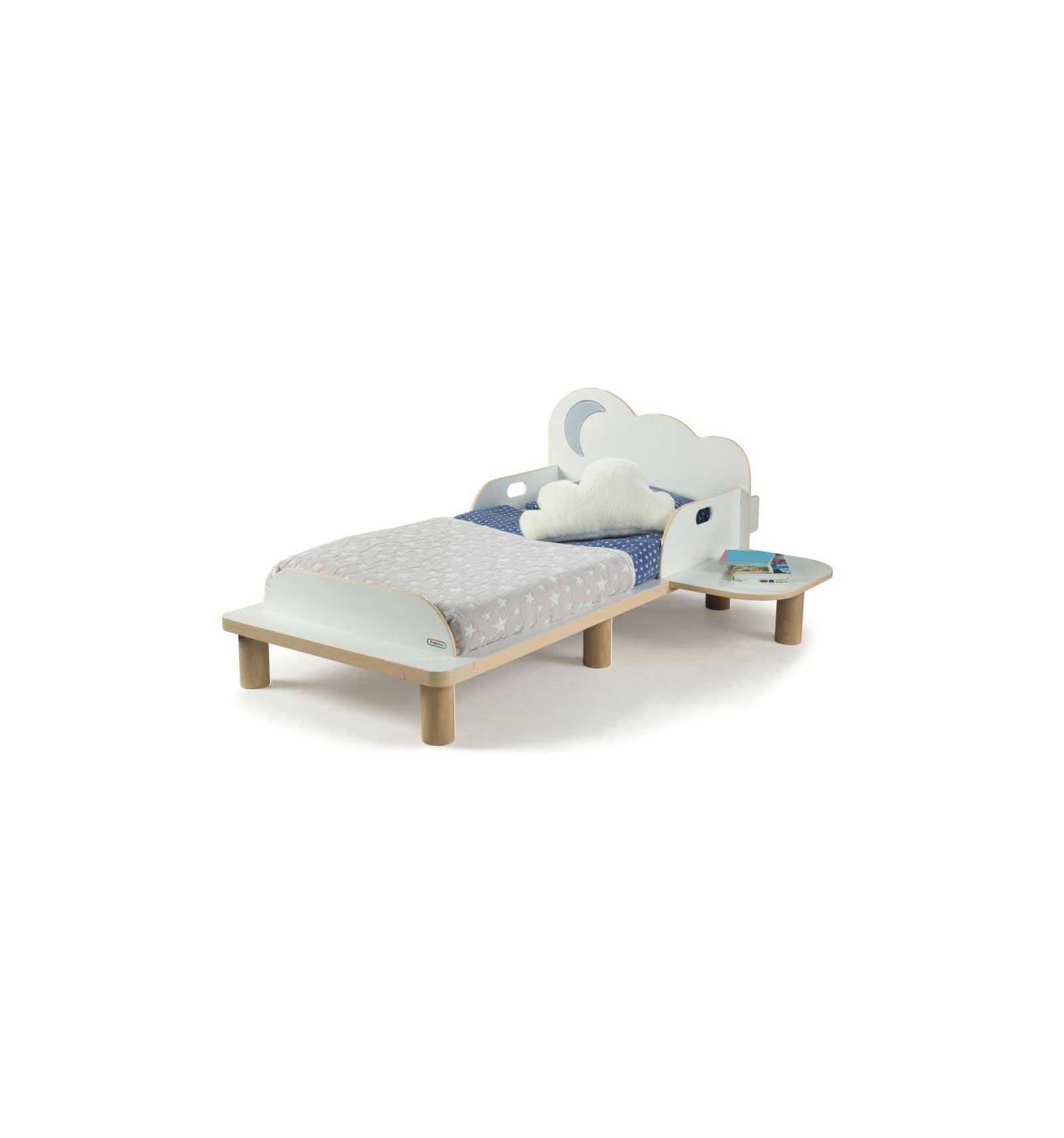 La cama infantil con luz Moonlight incorpora una pequeña luz con forma de luna que se ilumina por la noche para ayudar a conciliar el sueño y un proyector que se apaga a los 15 minutos.