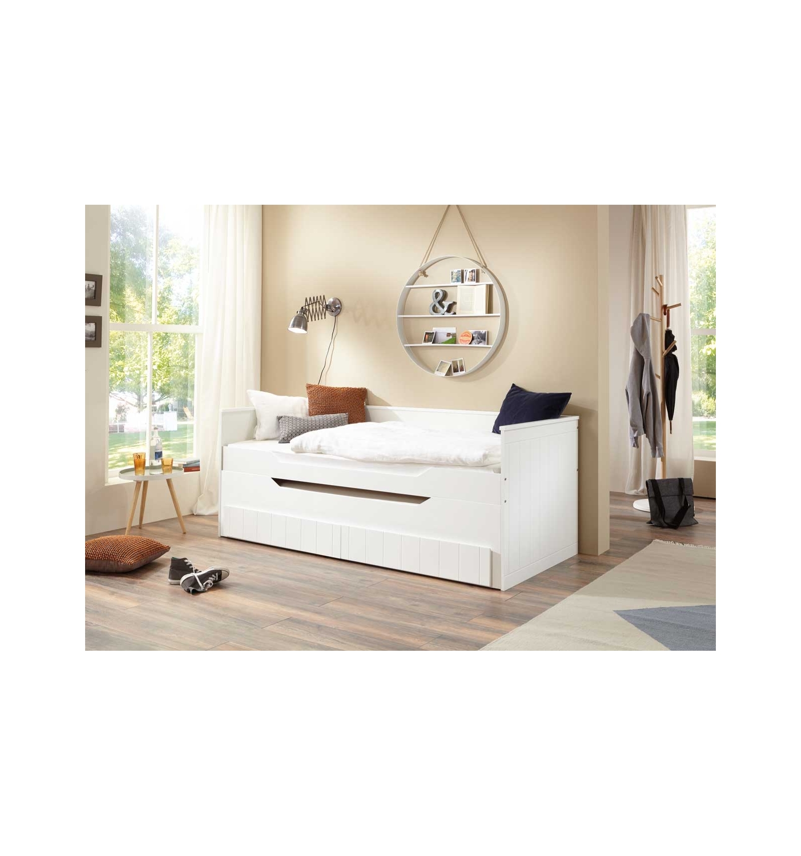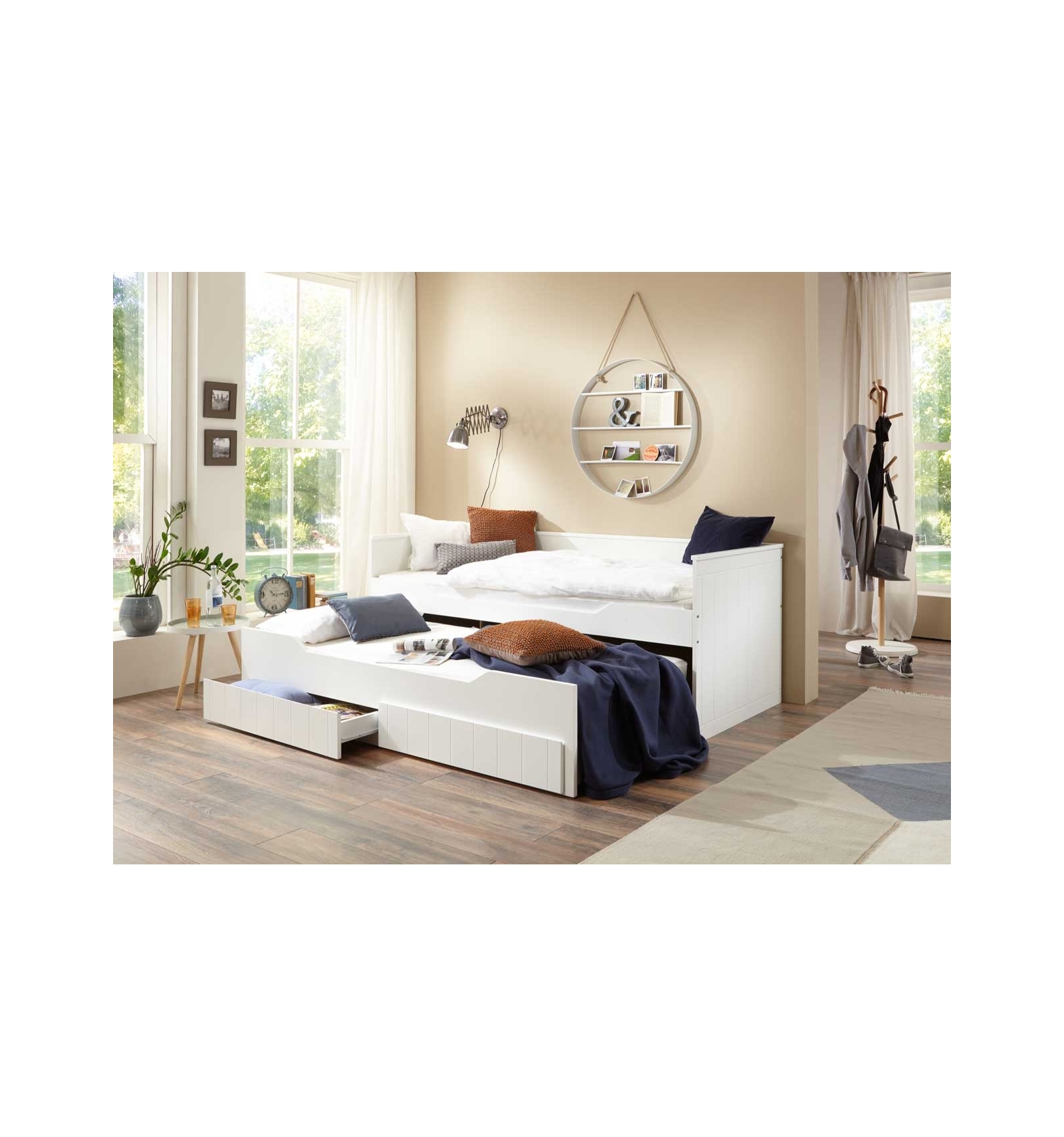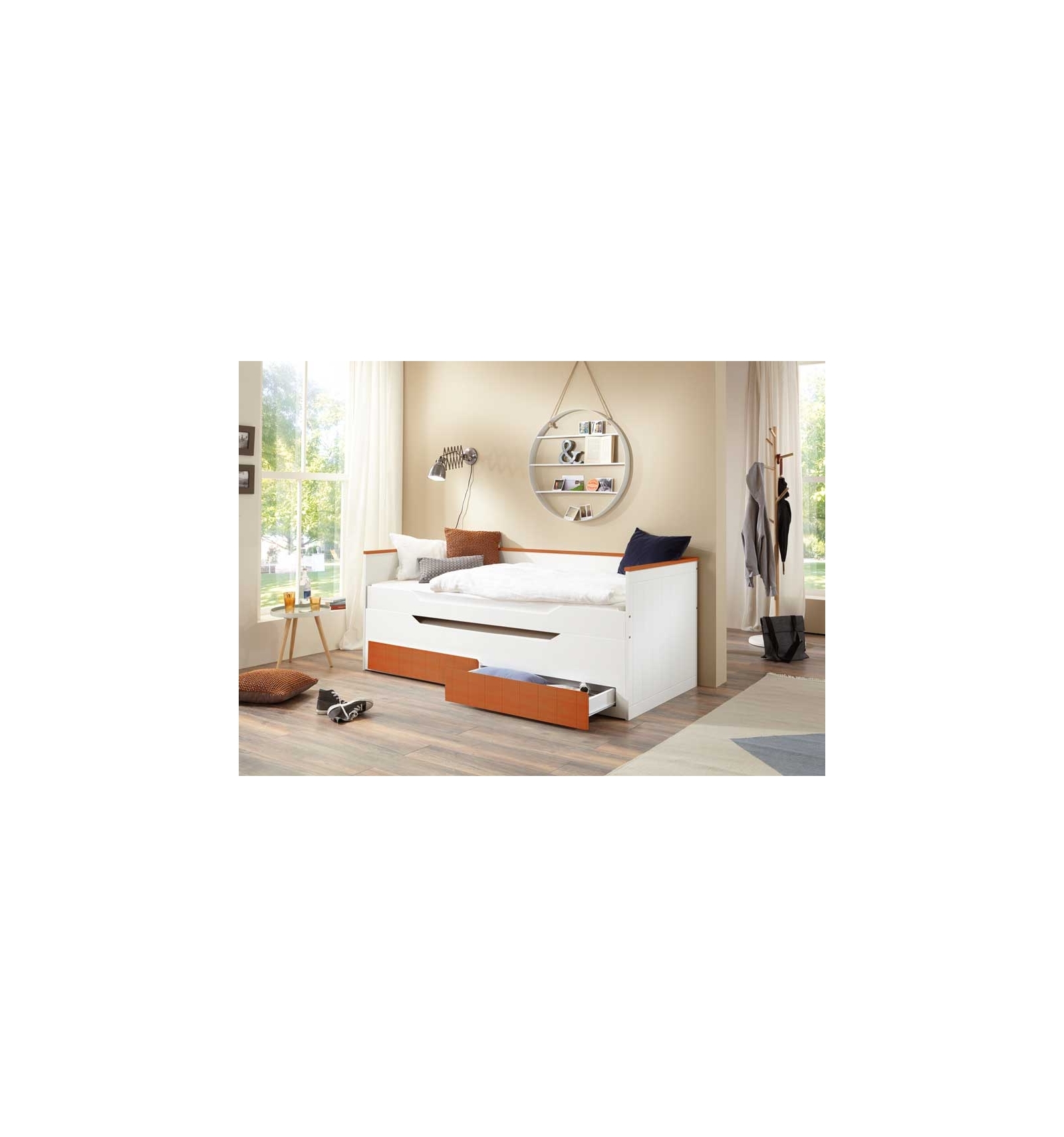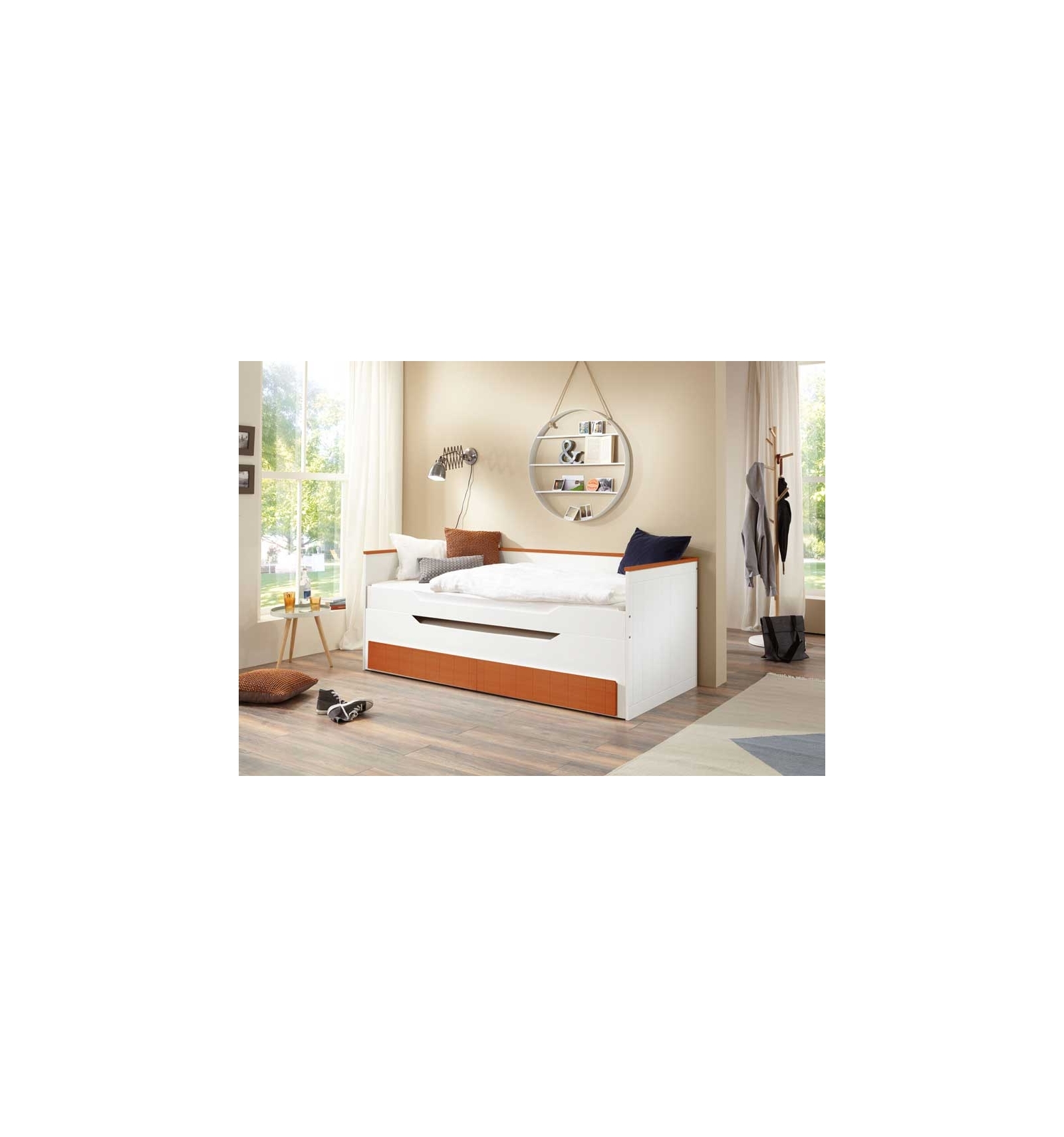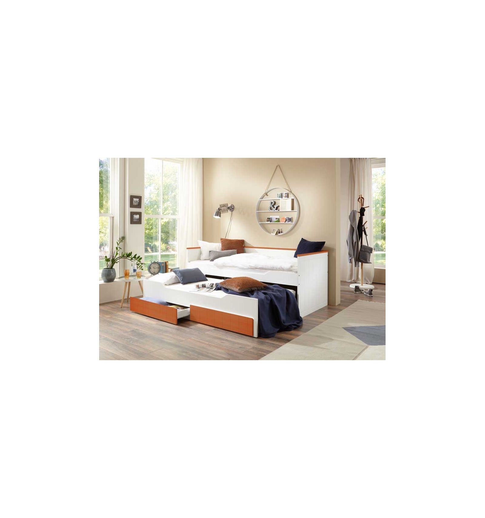 La cama nido con cajones Patmos incluye dos somieres y dos cajones inferiores de 78 x 45 cm. Puedes completar tu cama con el colchón anatómico Soft o el colchón Orange.
