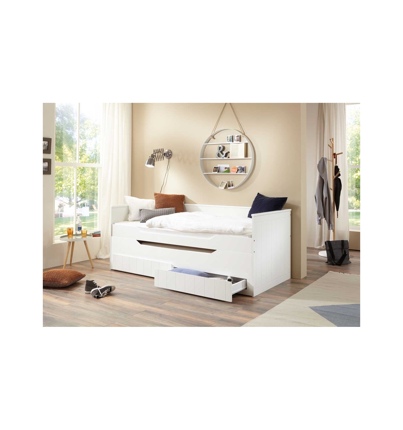 • Optimización de espacio: cama individual con 2 cajones para almacenaje. Además, incluye una cama nido extraíble a media altura perfecta para visitas.