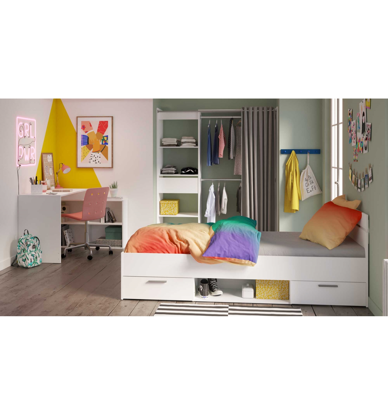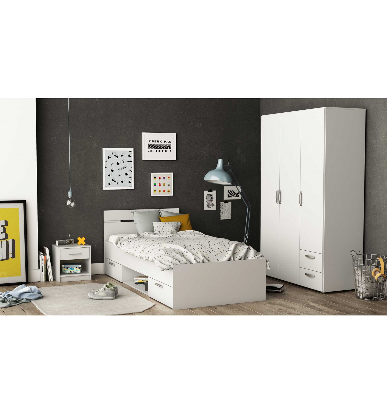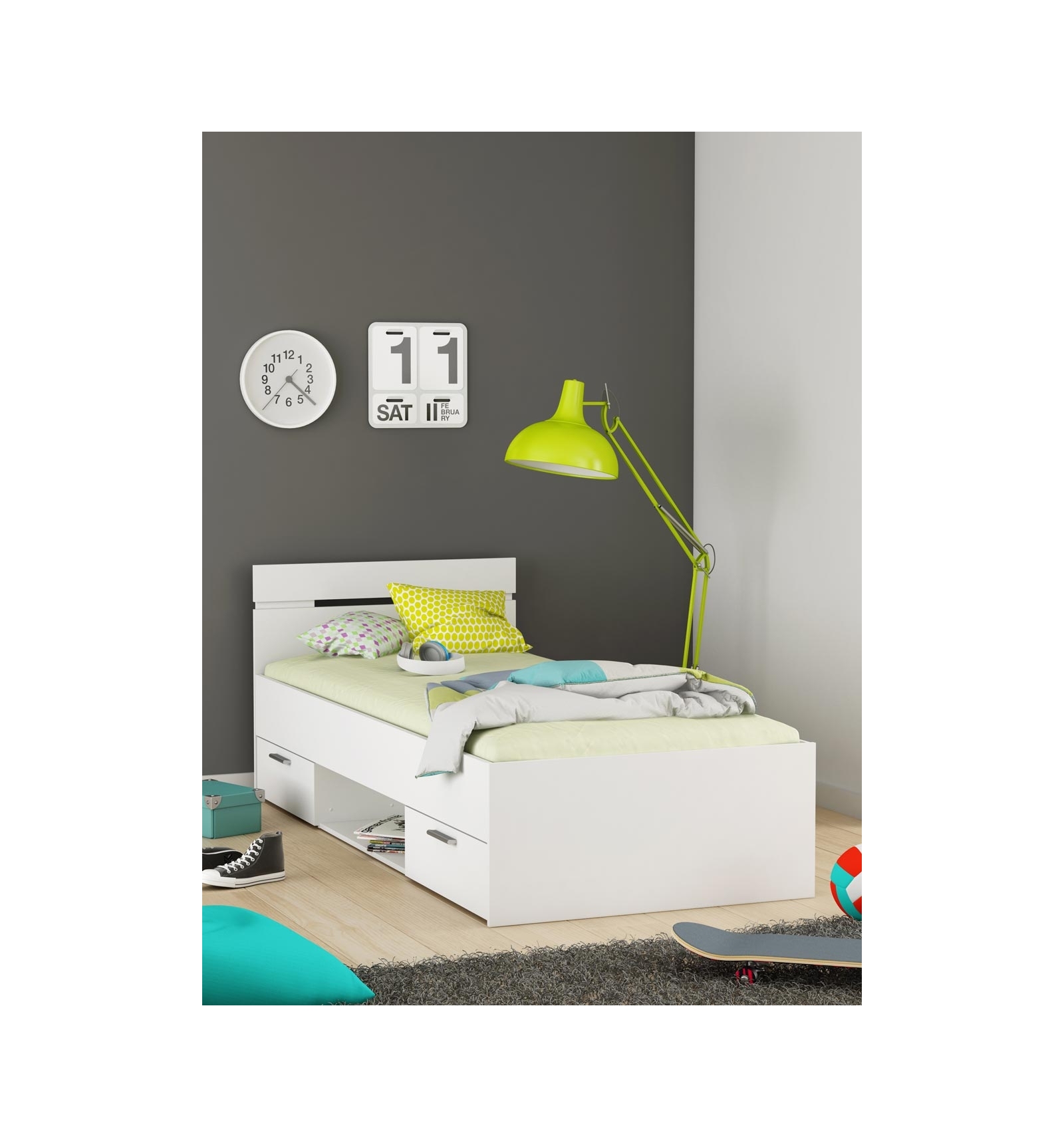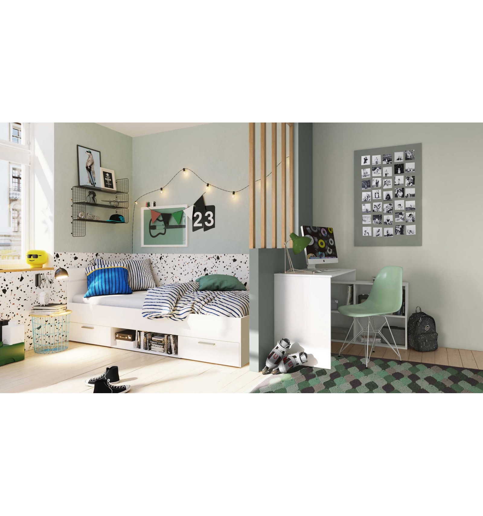 CAMA JUVENIL DE 90 X 200 CM EN COLOR BLANCO Y CON CAJONES INFERIORES