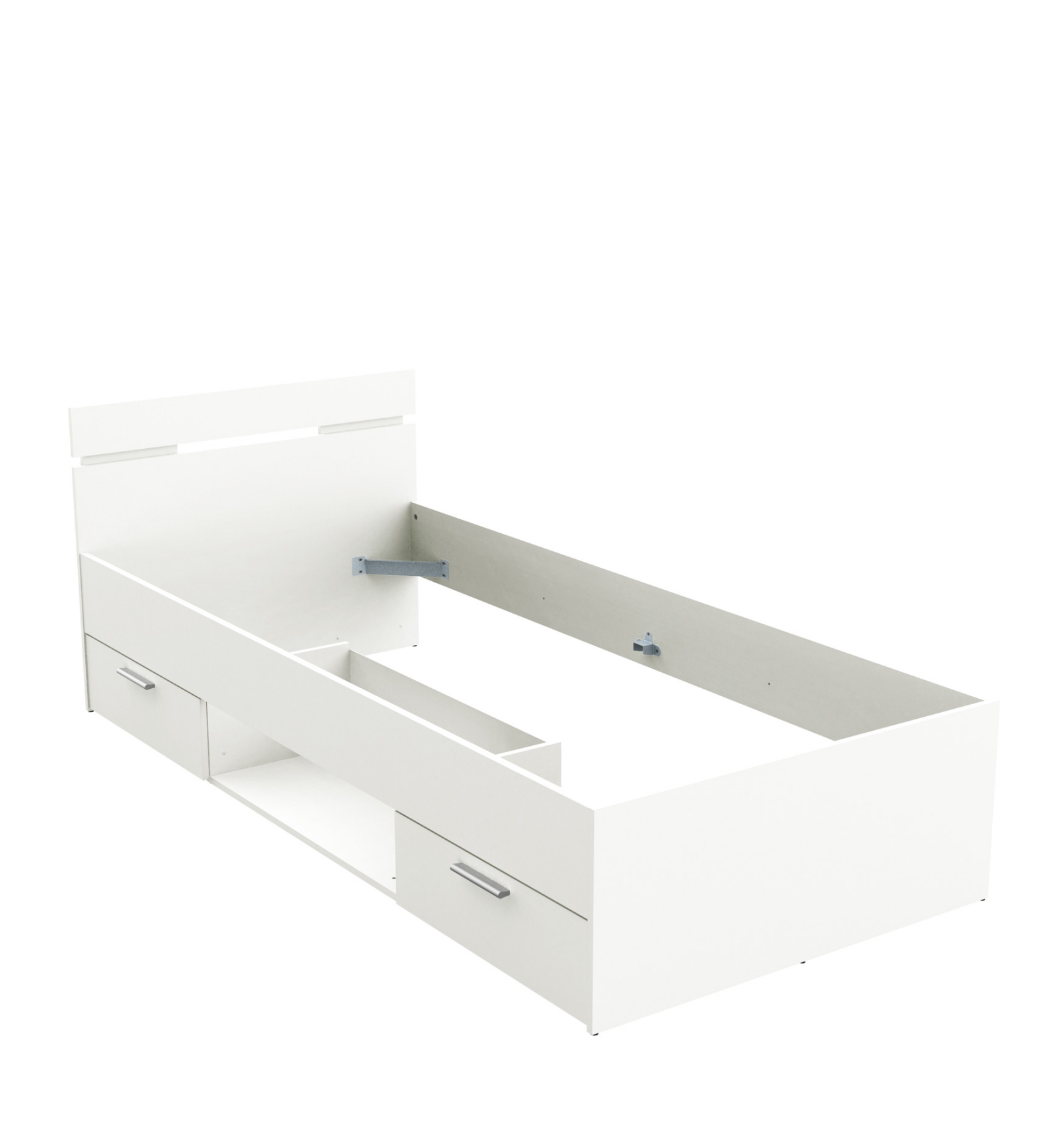 La cama incluye cuatro escuadras metálicas para poder fijar un somier de láminas (no incluído).