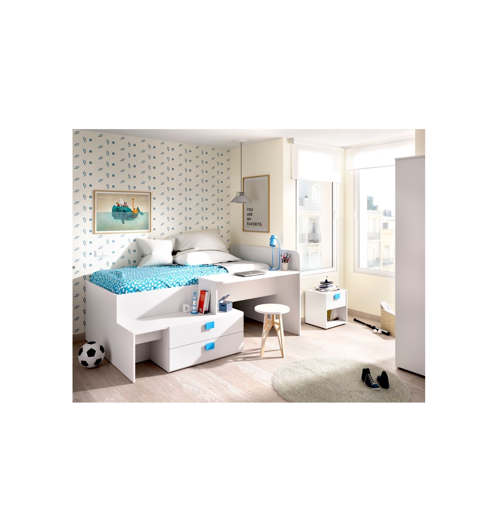 CAMA JUVENIL CON CAJONES Y ESCRITORIO. TODO A TU ALCANCE. MÁXIMA FUNCIONALIDAD EN UN MUEBLE COMPACTO