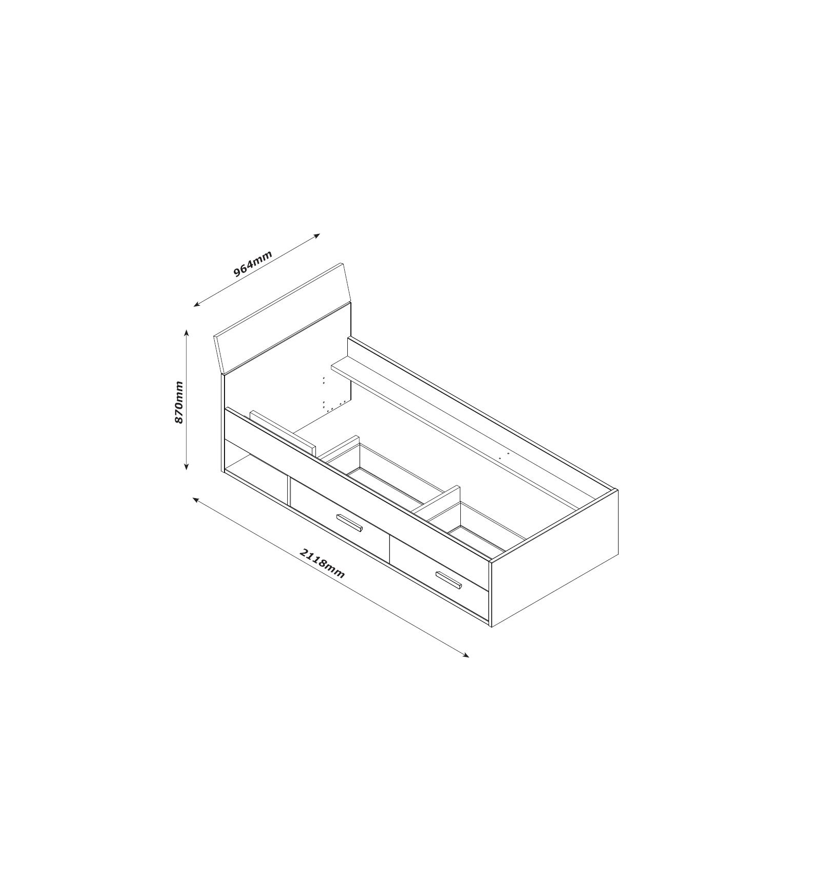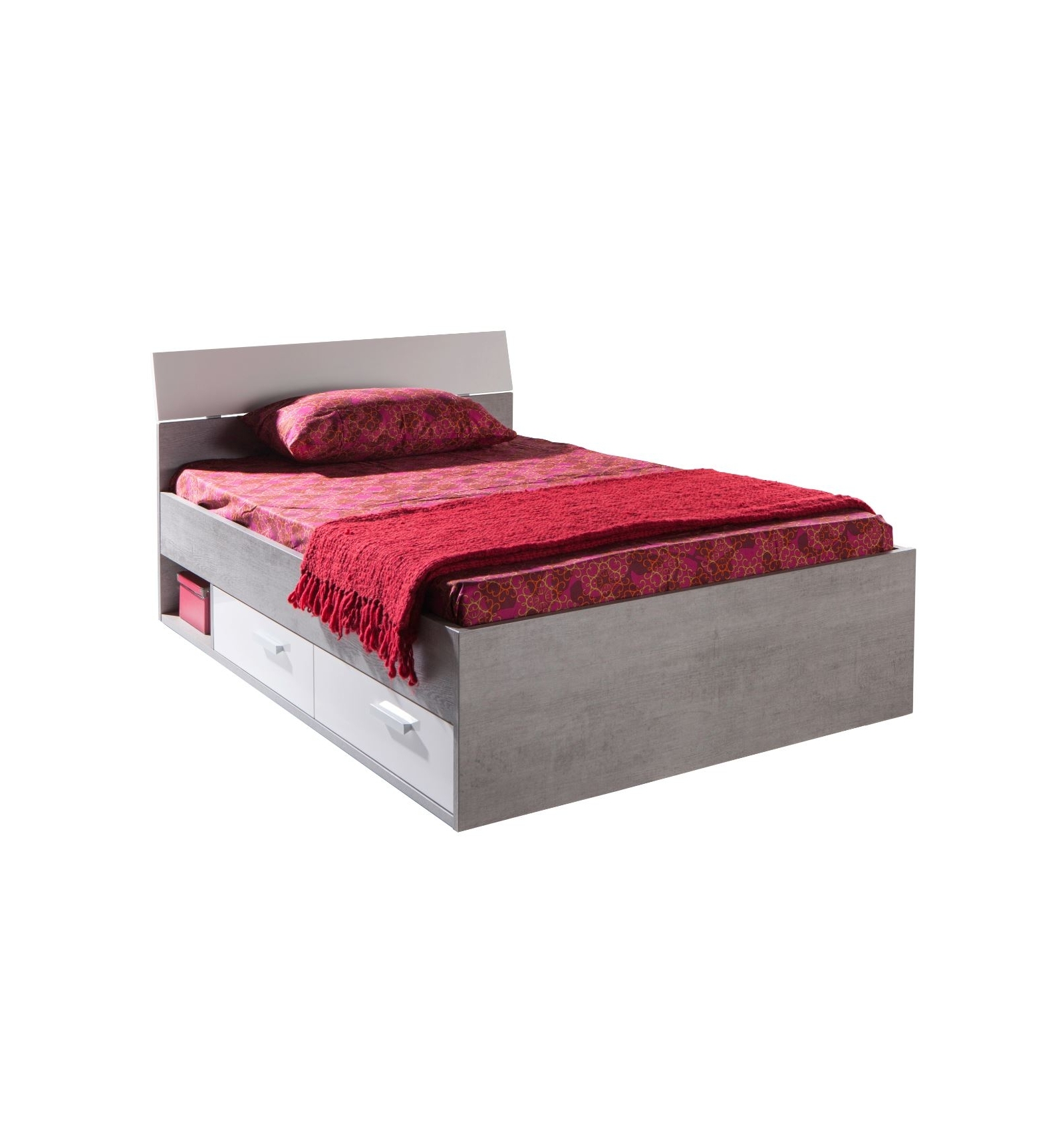 CAMA INDIVIDUAL CON CAJONES Y COMPARTIMENTO DE ESTILO MODERNO Y ACABADO BICOLOR EN GRIS CEMENTO Y BLANCO