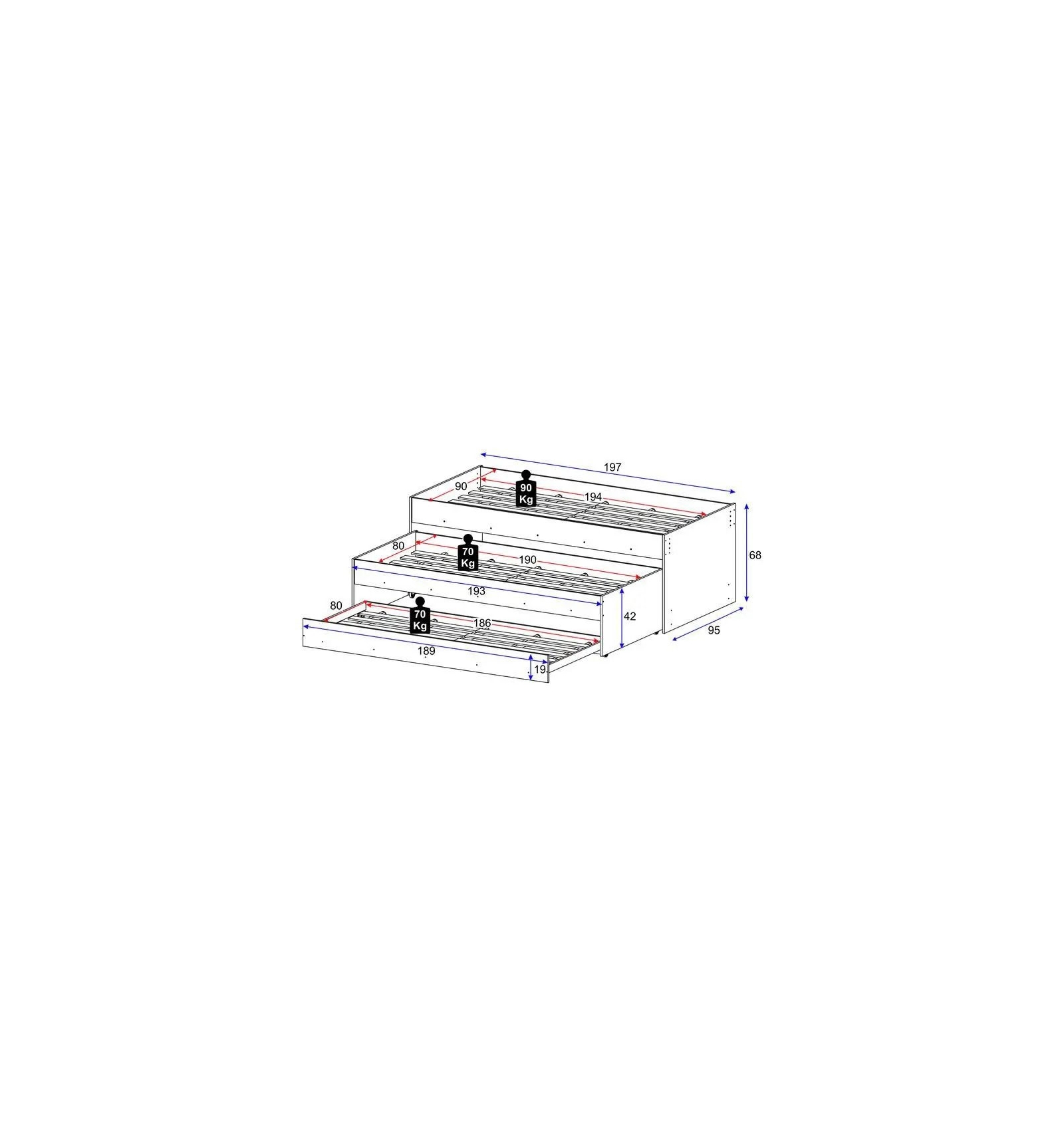 | Importante: | El colchón de 90 x 190 cm queda encajado. Se recomienda un colchón de 88 x 188 cm si se desea un poco de holgura para la ropa de cama. |