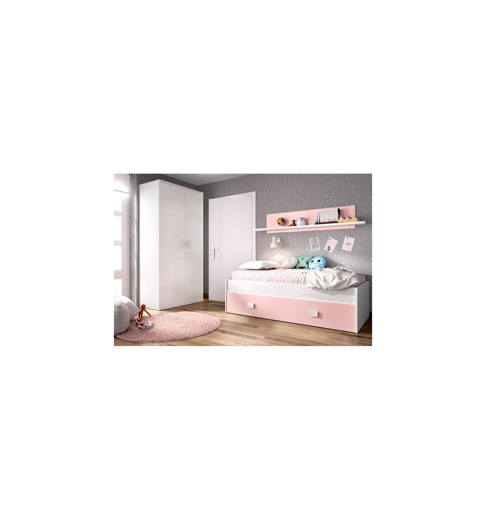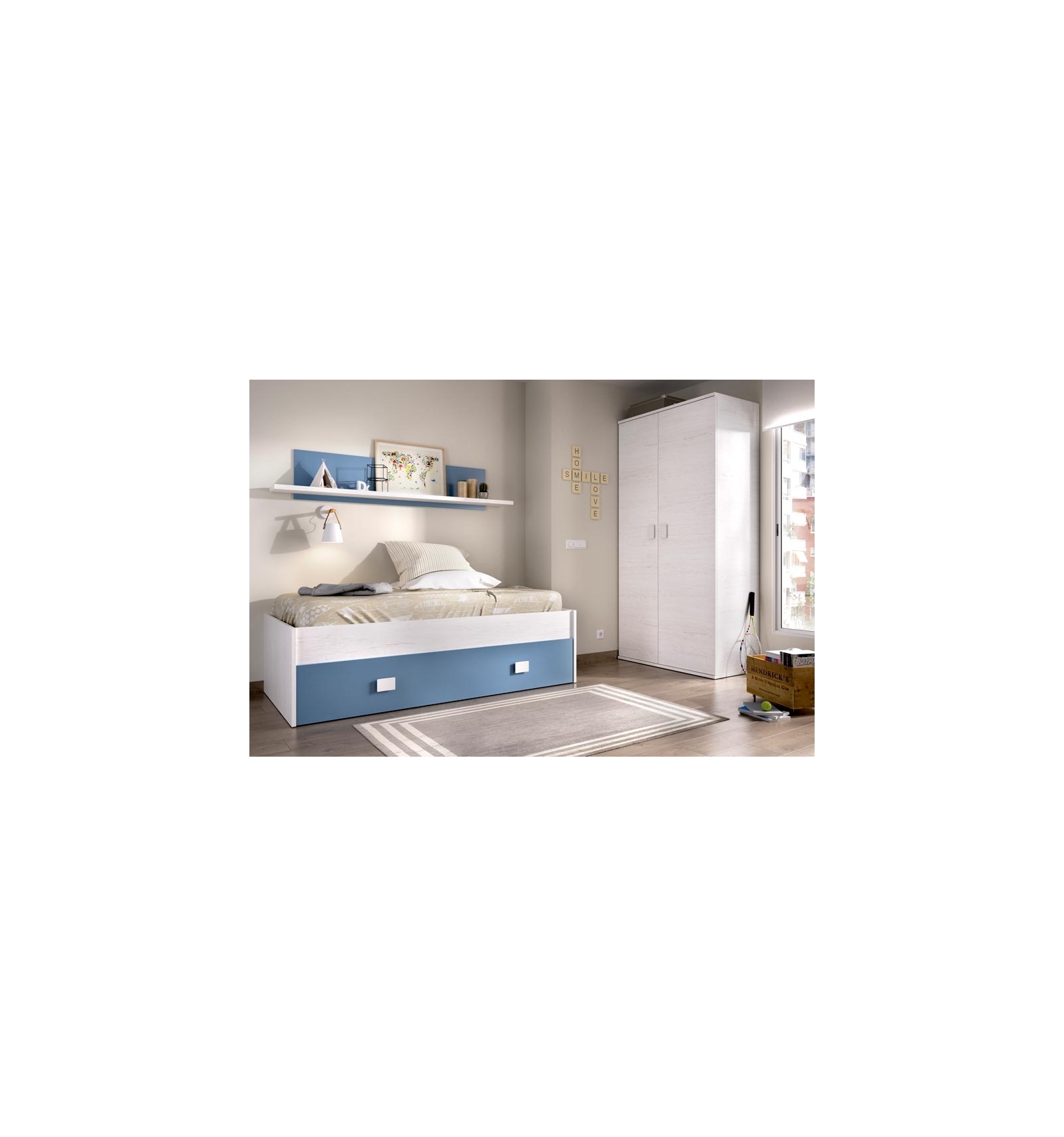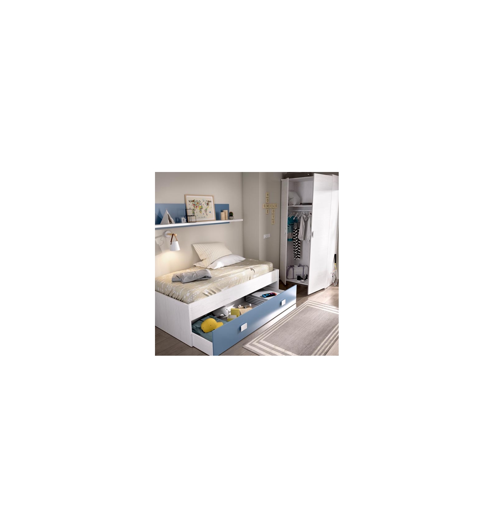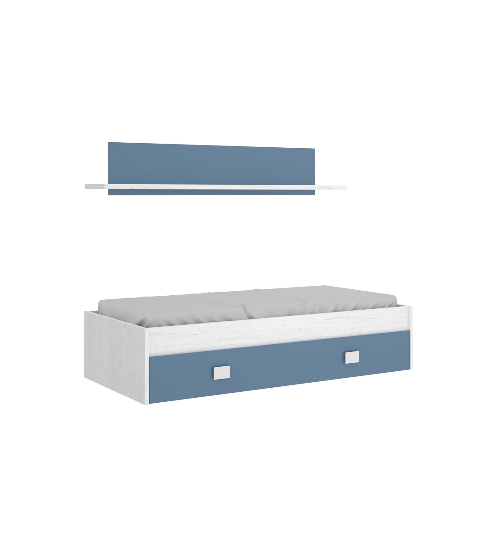 Dispone de un cajón inferior que puede ser utilizado como cama nido ó de almacenaje, según la necesidad.Incluye una moderna estantería en el mismo acabado que la cama.