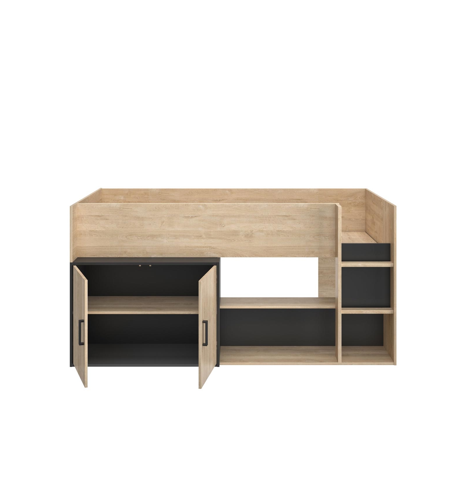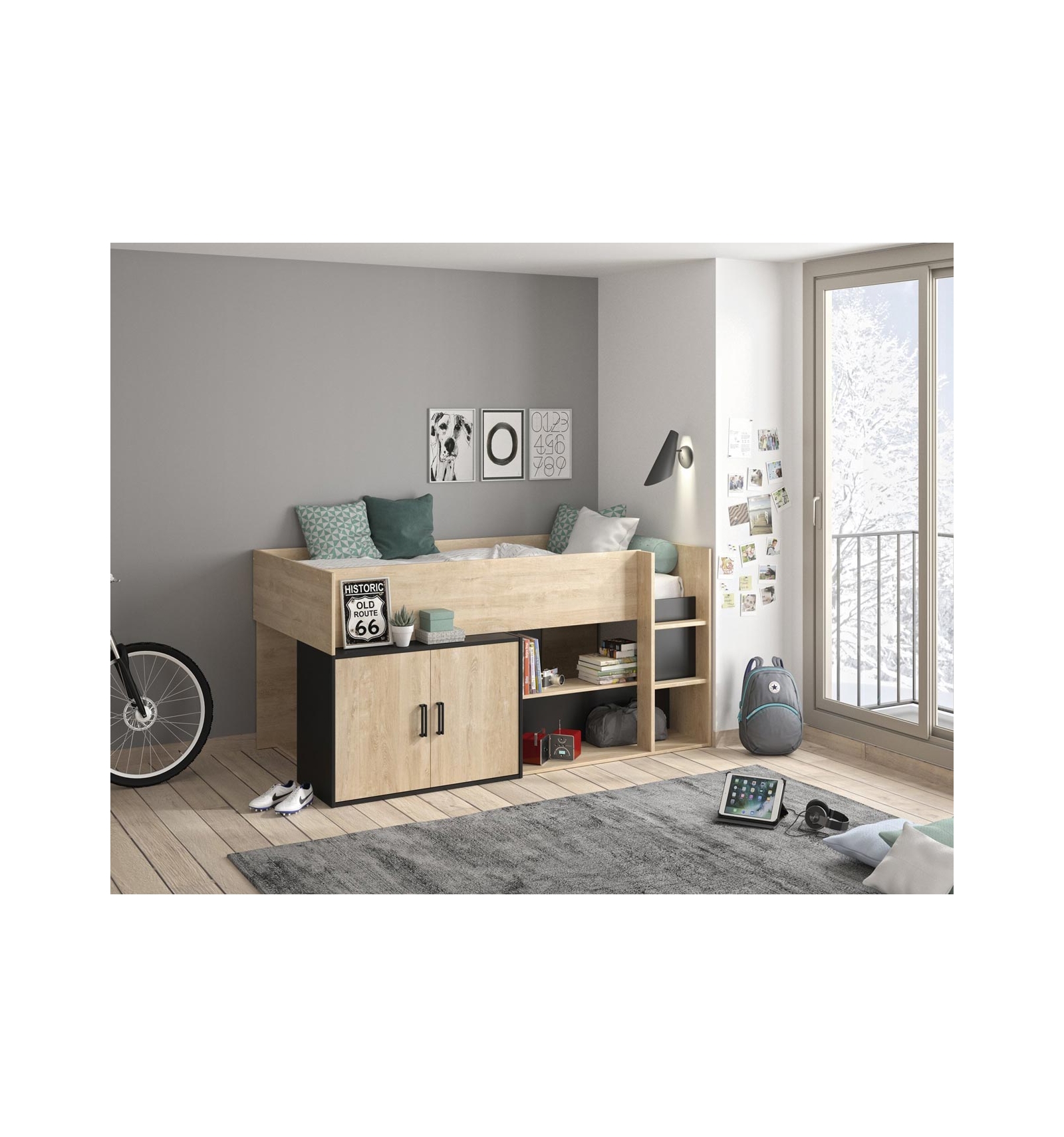 Si es el momento de renovar la habitación de tu hijo y deseas un mueble que además de ser cama maximice el espacio disponible, sin duda, esta cama semialta te interesa. Su combinación de colores es perfecta para niños y preadolescentes y sus múltiples accesorios les conquistarán.