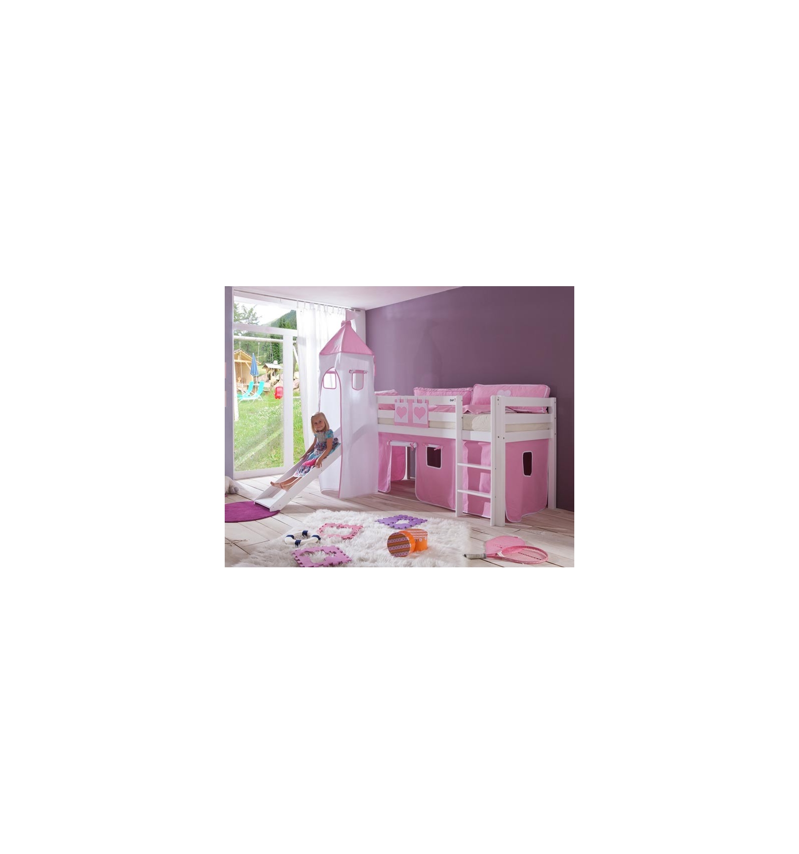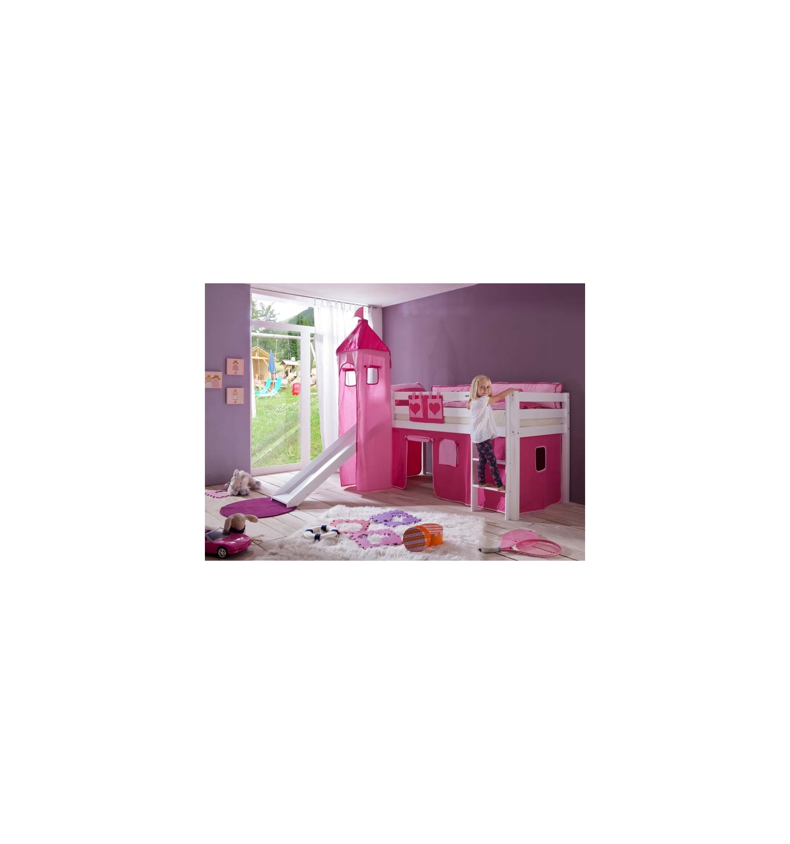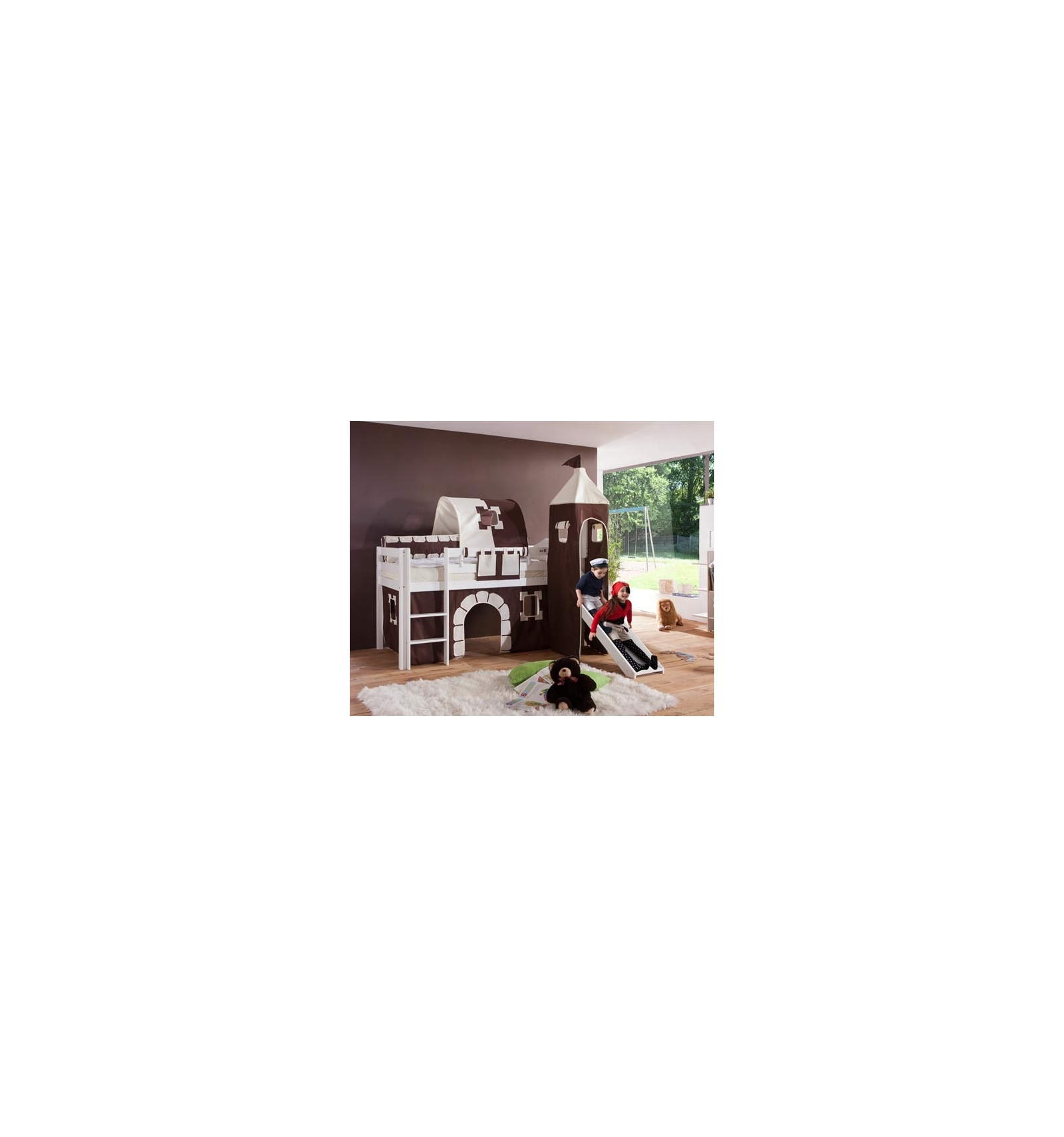 | Incluye: | Somier, Torre (estructura), Tobogán, Accesorios para el montaje, Manual de instrucciones y textil cortinas y torre . |