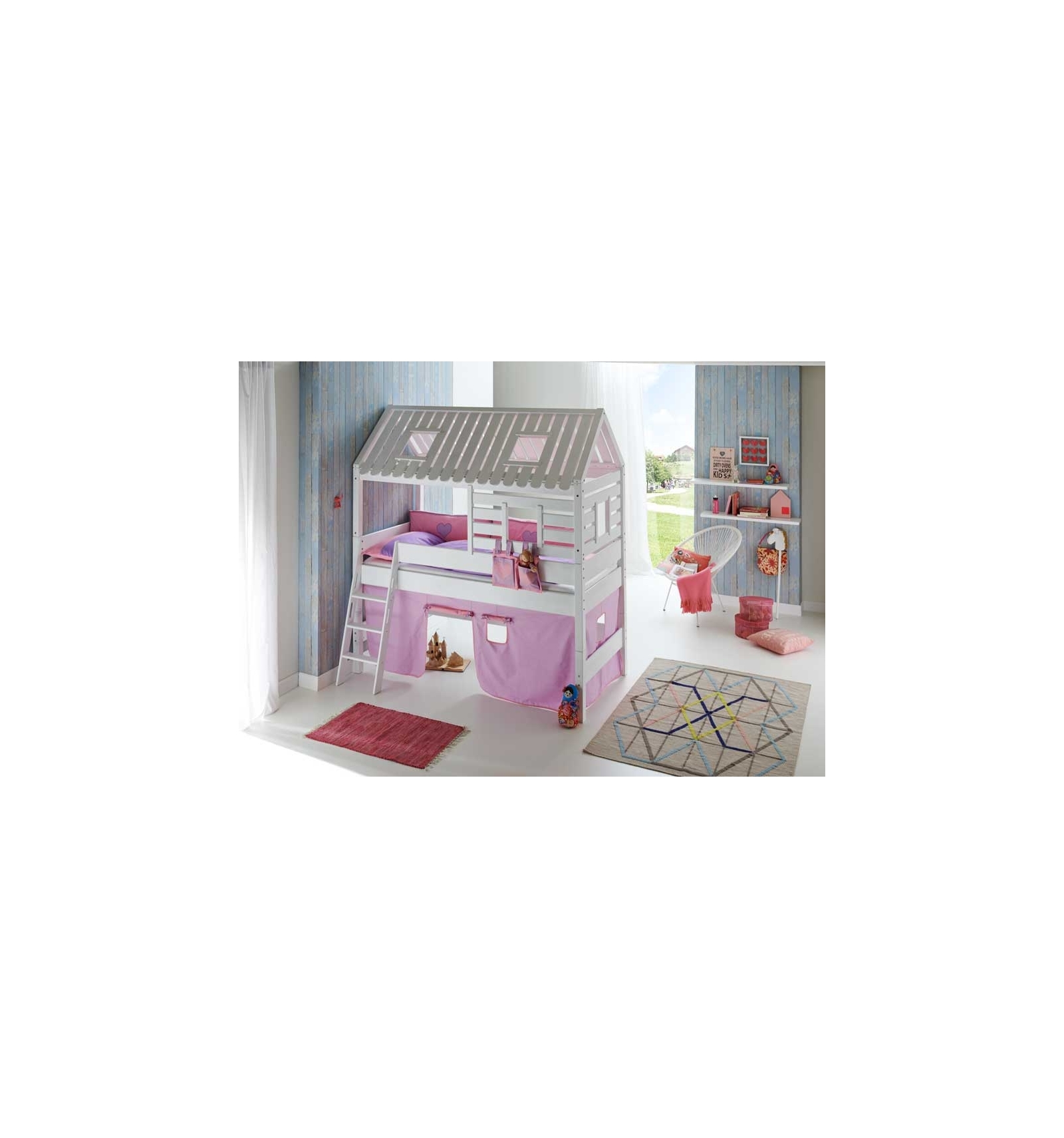 Dentro de la camas lúdicas o camas para jugar encontramos esta cama cabaña, que tiene todo lo que los niños pueden desear.