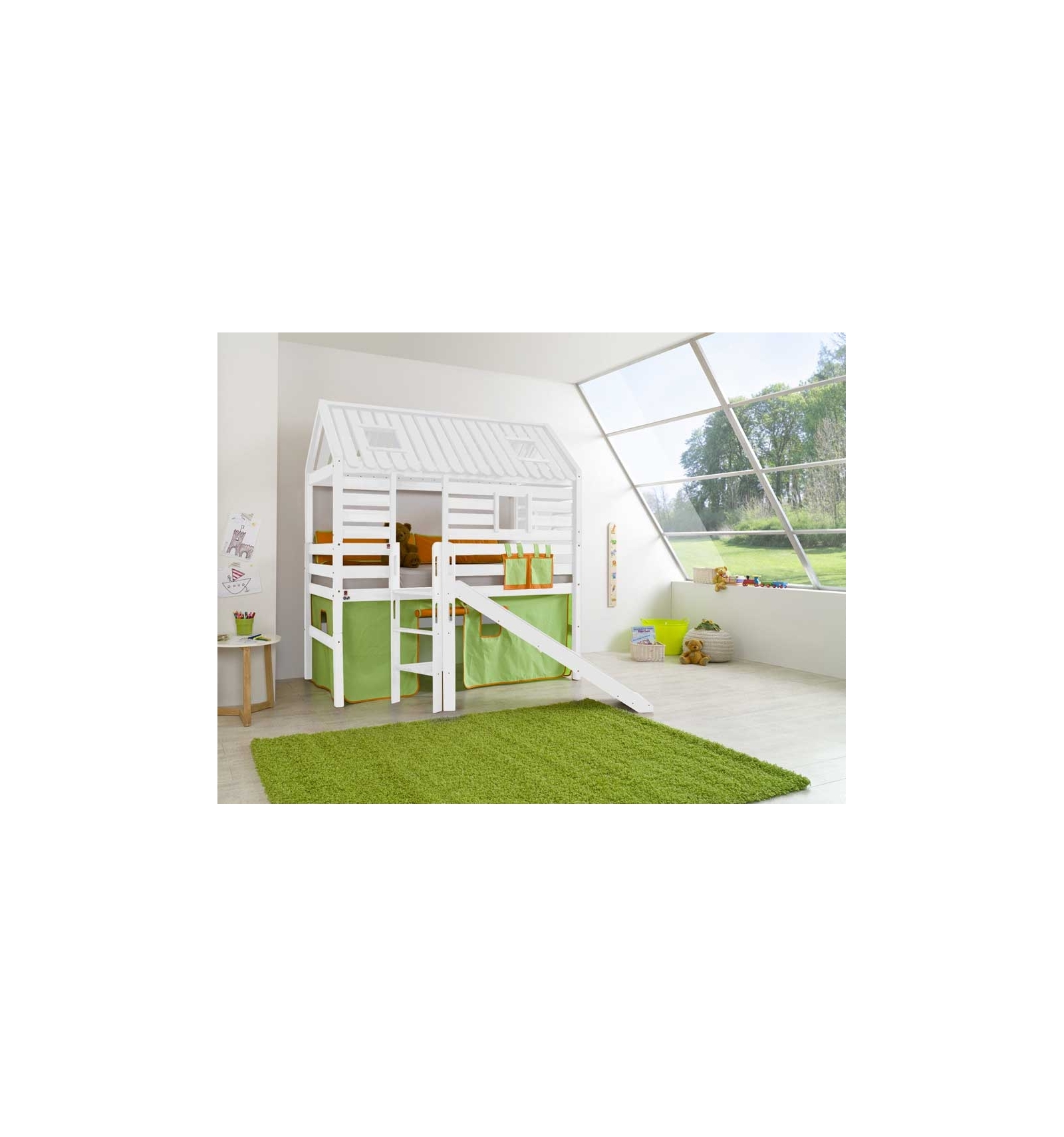 Convierte la habitación de dormir en un espacio de ensueño, donde los niños podrán jugar y vivir experiencias únicas en una cabaña con ventana y podrán bajar de su cama por el tobogán, como si de una auténtica cabaña de árbol se tratara.