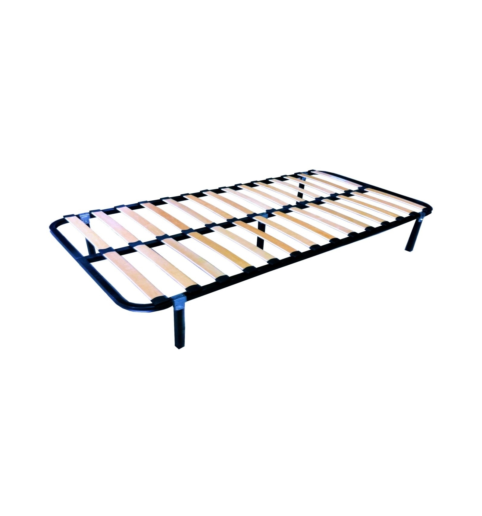 El somier fijo Atenas está fabricado en acero reforzado, con bastidor de tubo de 30x30 mm y barra central de refuerzo. Sus láminas de 53 x 8 mm son curvadas, en madera de haya natural de gran dureza y resistencia y van embutidas en el bastidor.