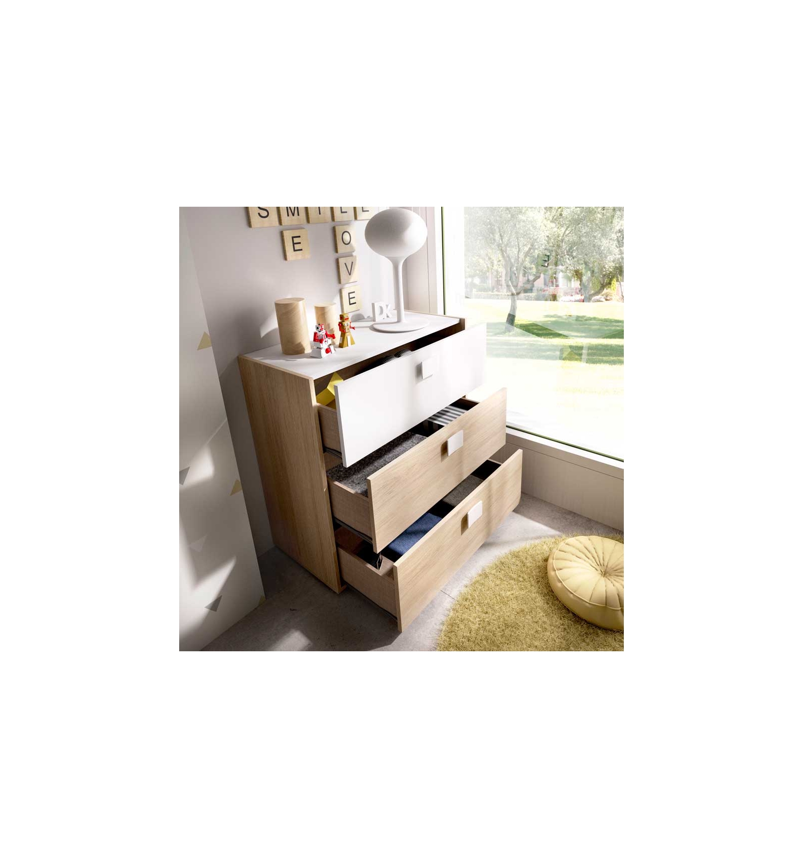 La cómoda Limo es el mueble perfecto para dormitorios juveniles. Con ella le darás un aire cálido y moderno gracias a su diseño nórdico. Su acabado de melamina de alta calidad lo hacen resistente, duradero y adaptable a cualquier estancia. ¡Además podrás limpiarlo con un paño húmedo o un plumero para tenerla siempre impecable!