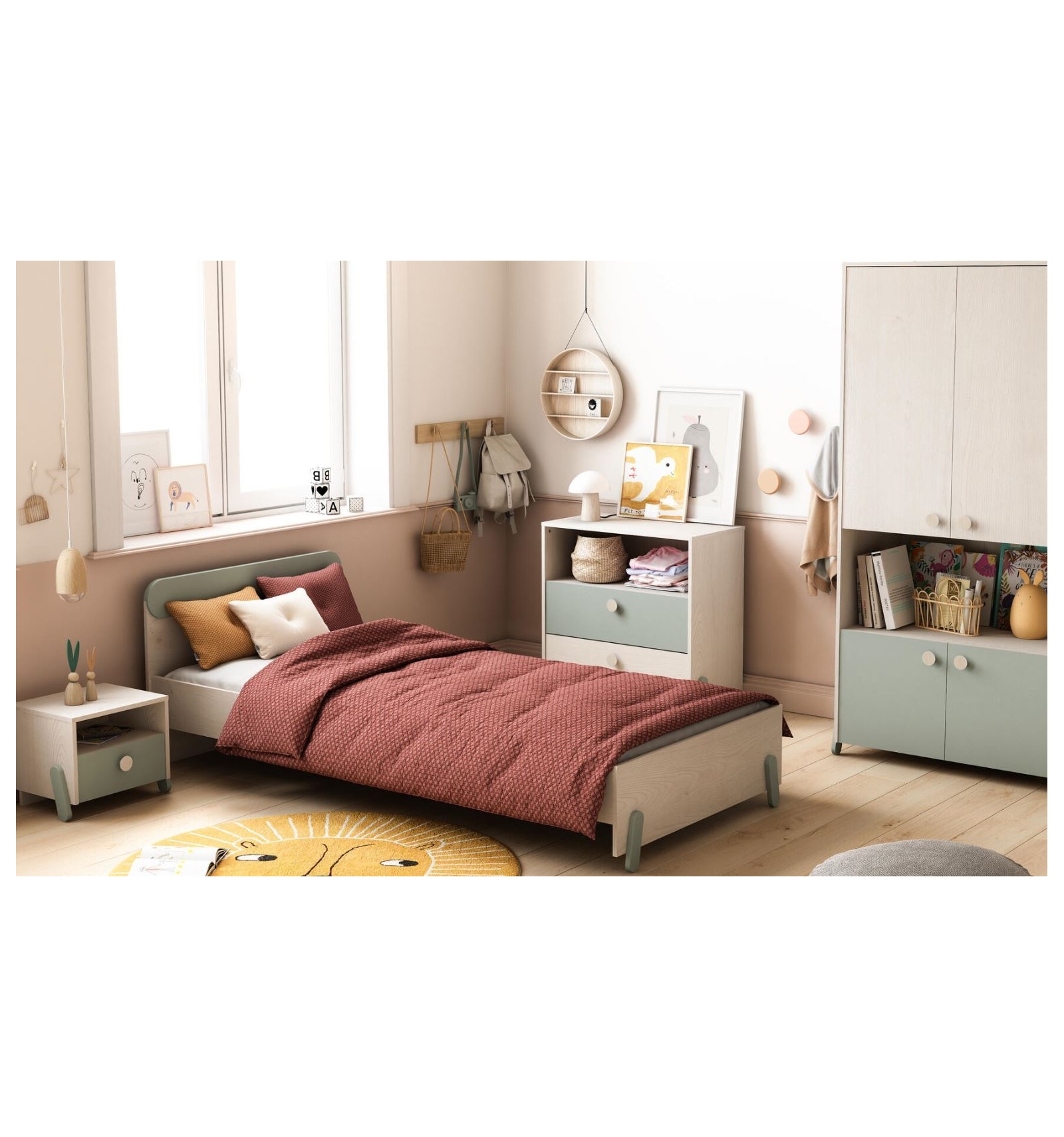 La cómoda infantil Aran combina con la Cama Infantil Aran, Armario infantil Aran y la Mesita de noche Aran.