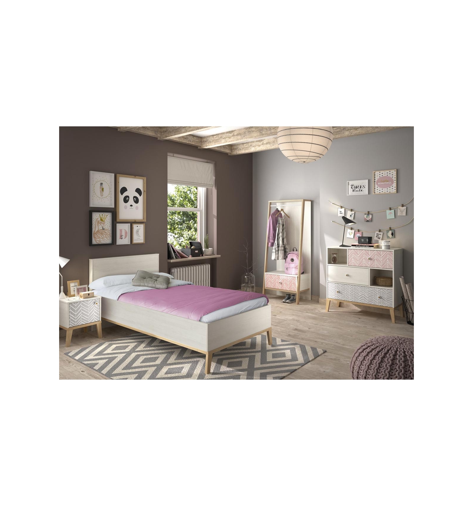La cómoda juvenil Terral combina con la cama, el escritorio, el armario, la mesita de noche y el vestidor de la misma serie.