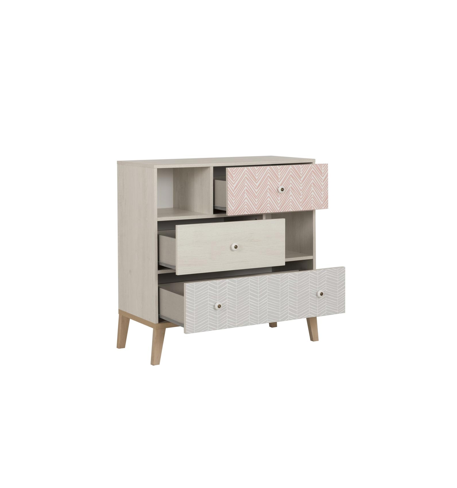 A medida que nuestros hijos se acercan a la adolescencia crece la necesidad de tener su propio espacio donde poder guardar su ropa y accesorios cómodamente. La cómoda juvenil Terral, está especialmente diseñada para ofrecer soluciones a sus exigencias.