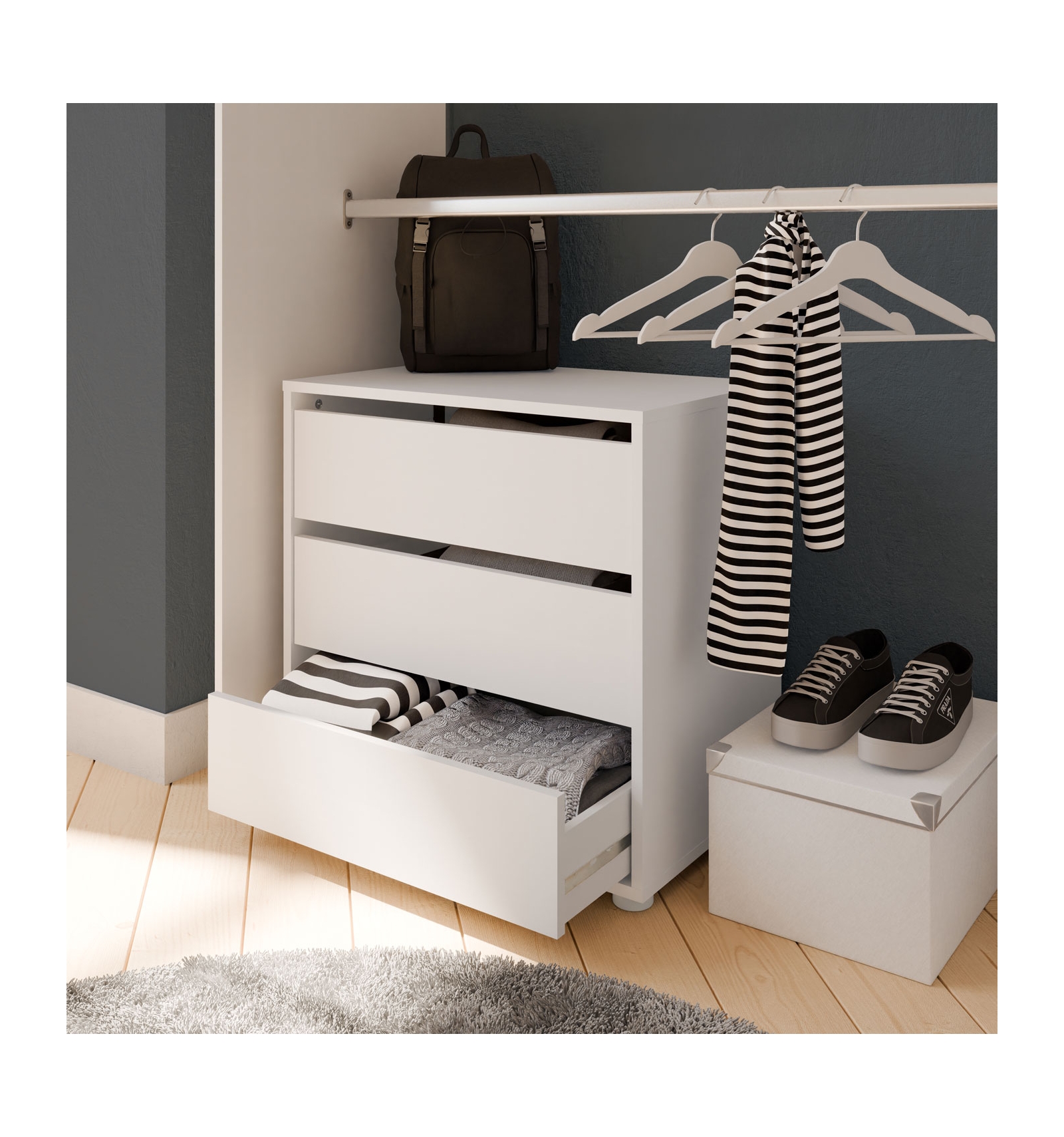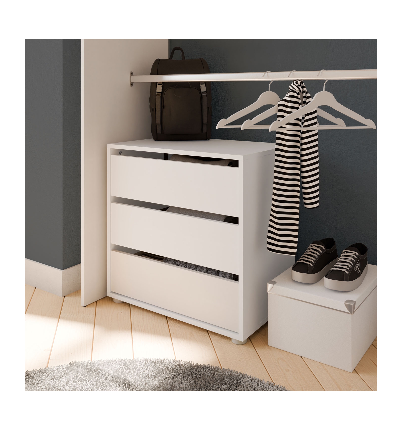 Optimiza el espacio de tu ropero o vestidor con la Cajonera para armario Coty la solución perfecta para una organización eficiente y sin sorpresas. Diseñada para adaptarse a tus necesidades, te permite instalar los cajones a tu manera, maximizando cada rincón de tu armario. Ideal para armarios amplios, esta cajonera es el complemento perfecto para mantener tus prendas ordenadas