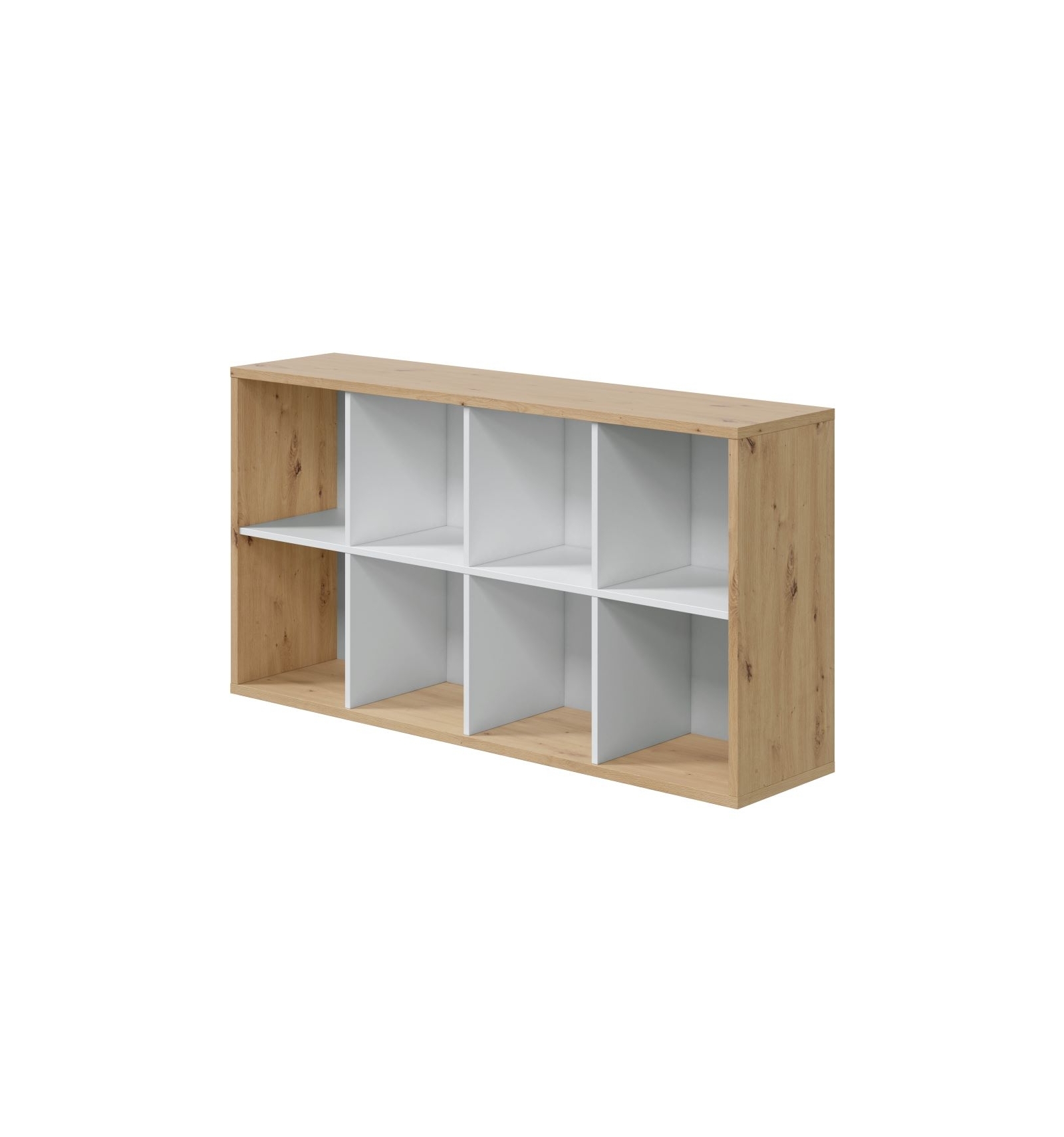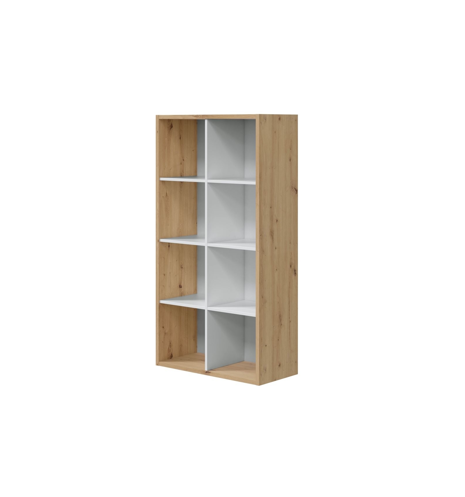 La estantería Juvenil Raiden combina modernidad y practicidad en un diseño sencillo, de líneas rectas y con un acabado en tonos roble y blanco. Puede colocarse en vertical u horizontal en función de las necesidades y espacio disponible.
