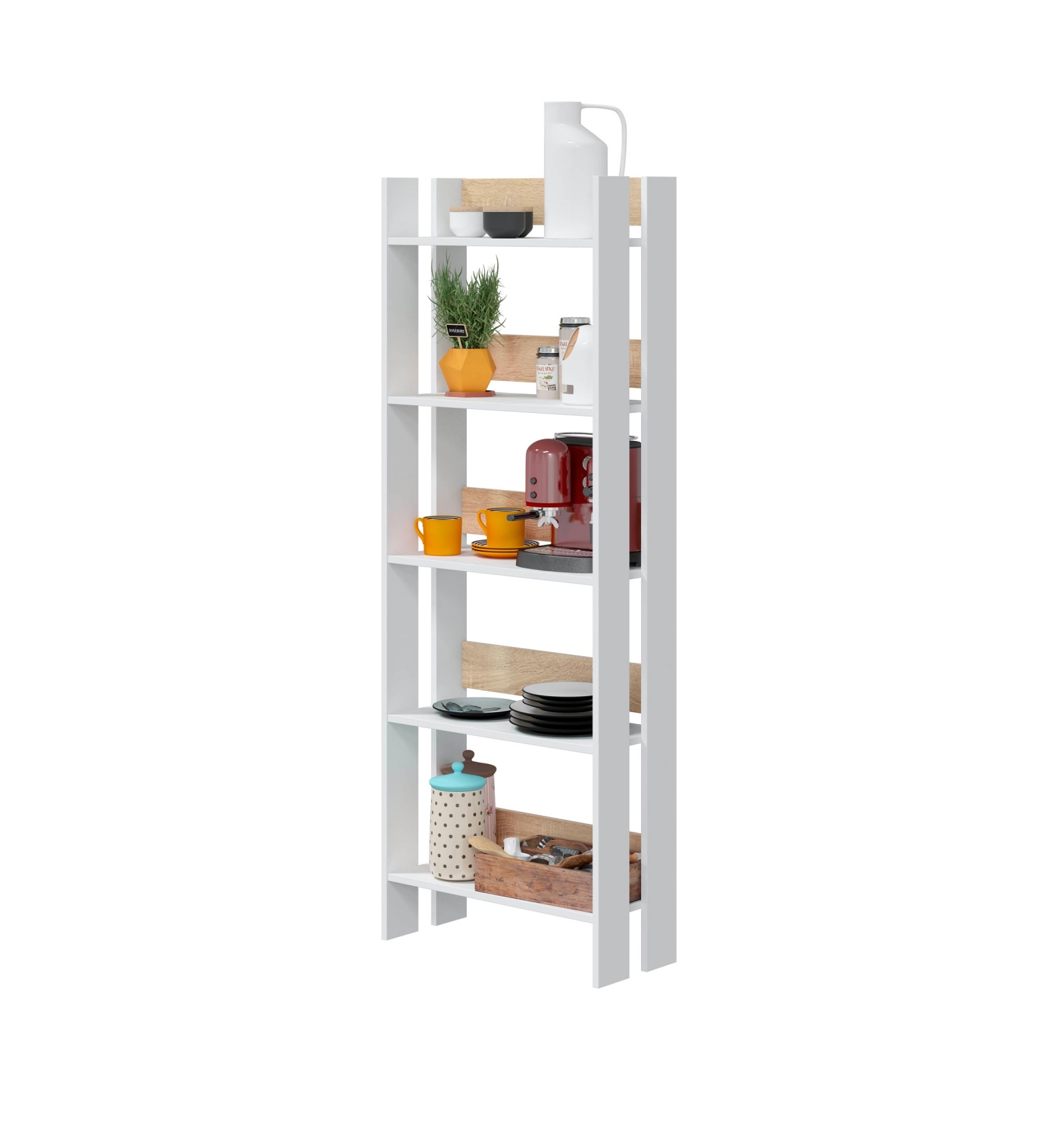 LA ESTANTERÍA BICOLOR CON CINCO ESTANTES ATHOS ES FUNCIONAL Y MODERNA. GRACIAS A SUS DIMENSIONES CONTENIDAS, PODRÁS COLOCARLA FÁCILMENTE HASTA EN LAS HABITACIONES MÁS PEQUEÑAS.