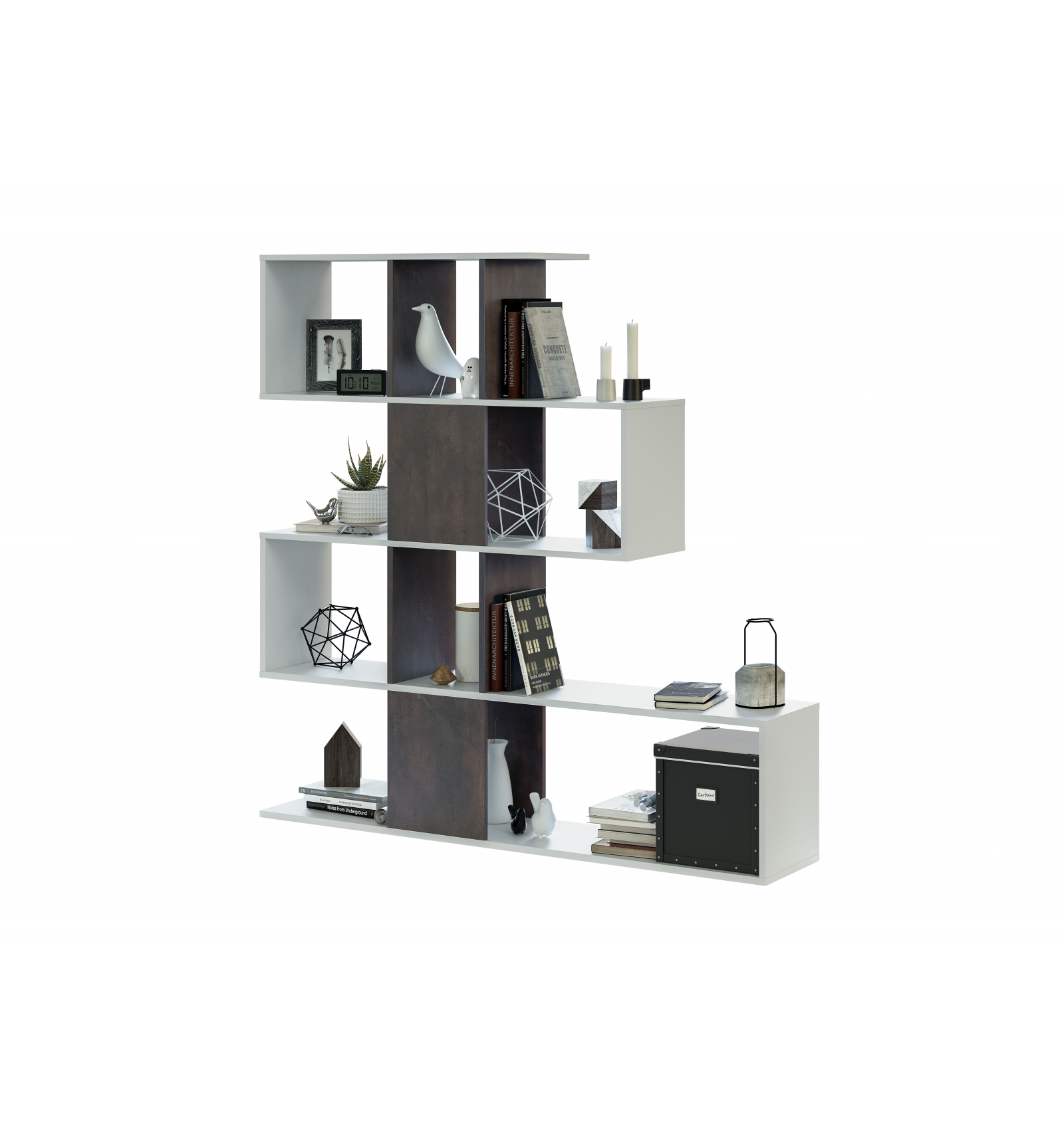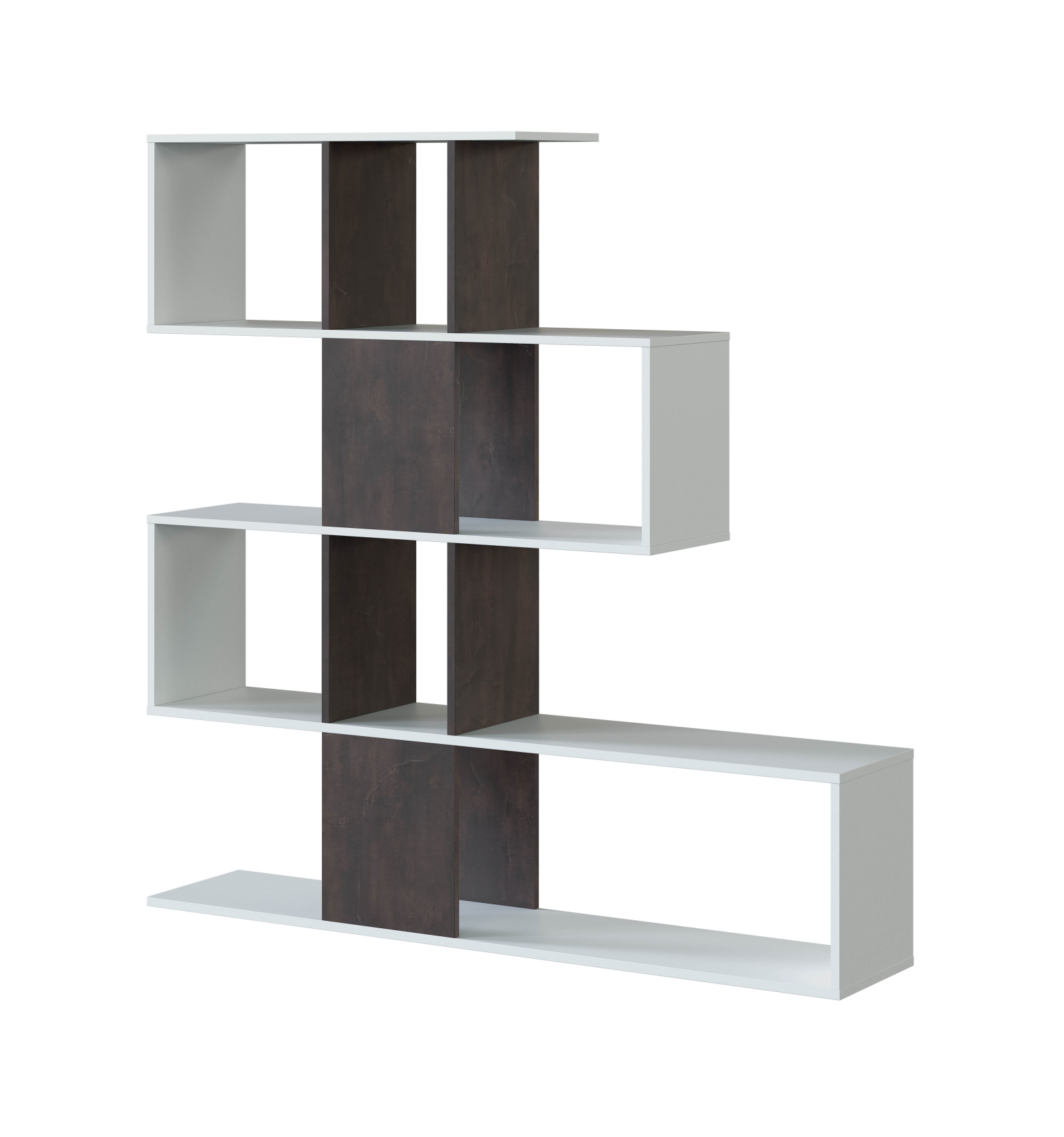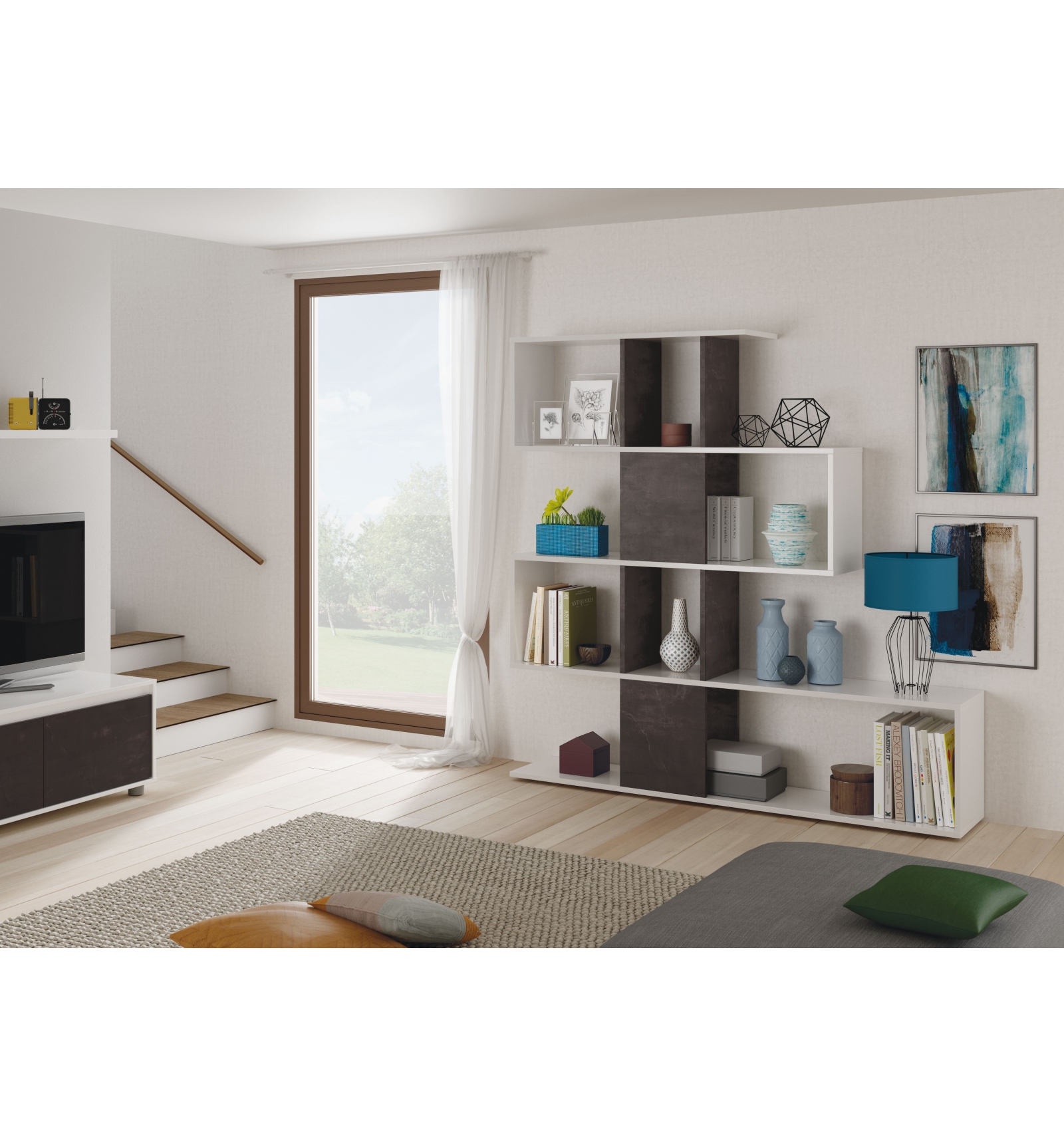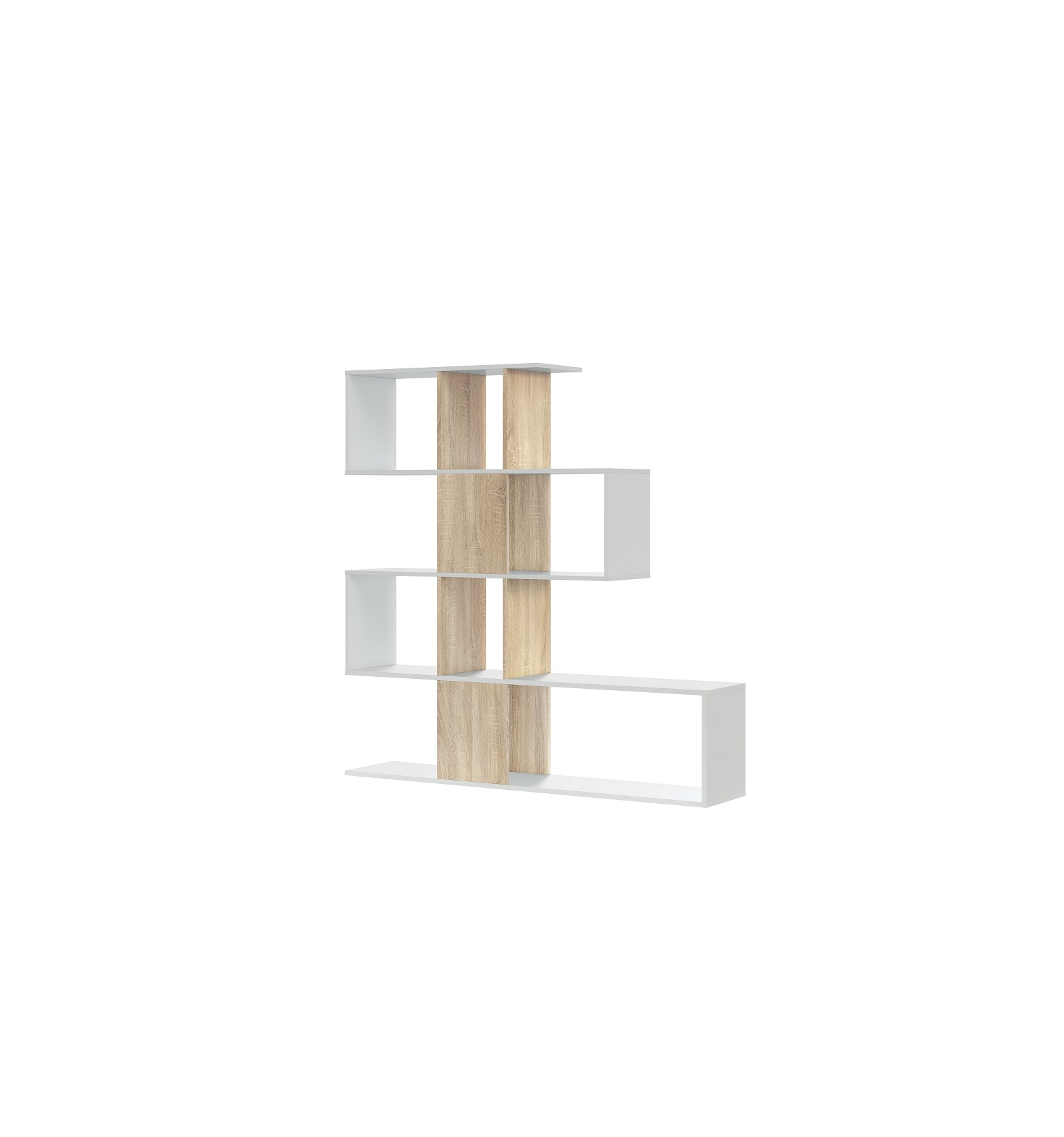Original estantería separadora con diseño irregular en forma de zigzag que ofrece gran cantidad de compartimentos en los que podrás colocar todo tipo de objetos o decoración.