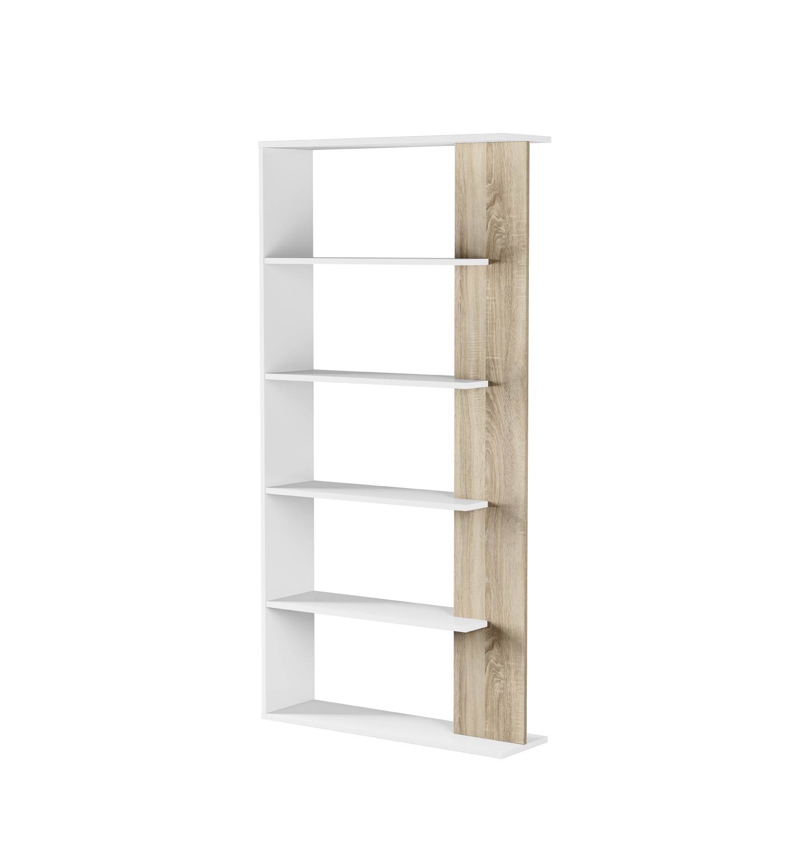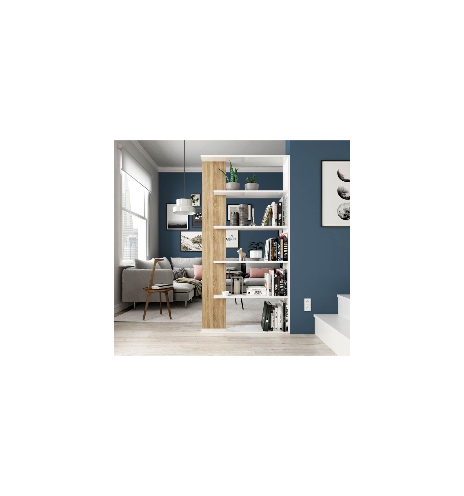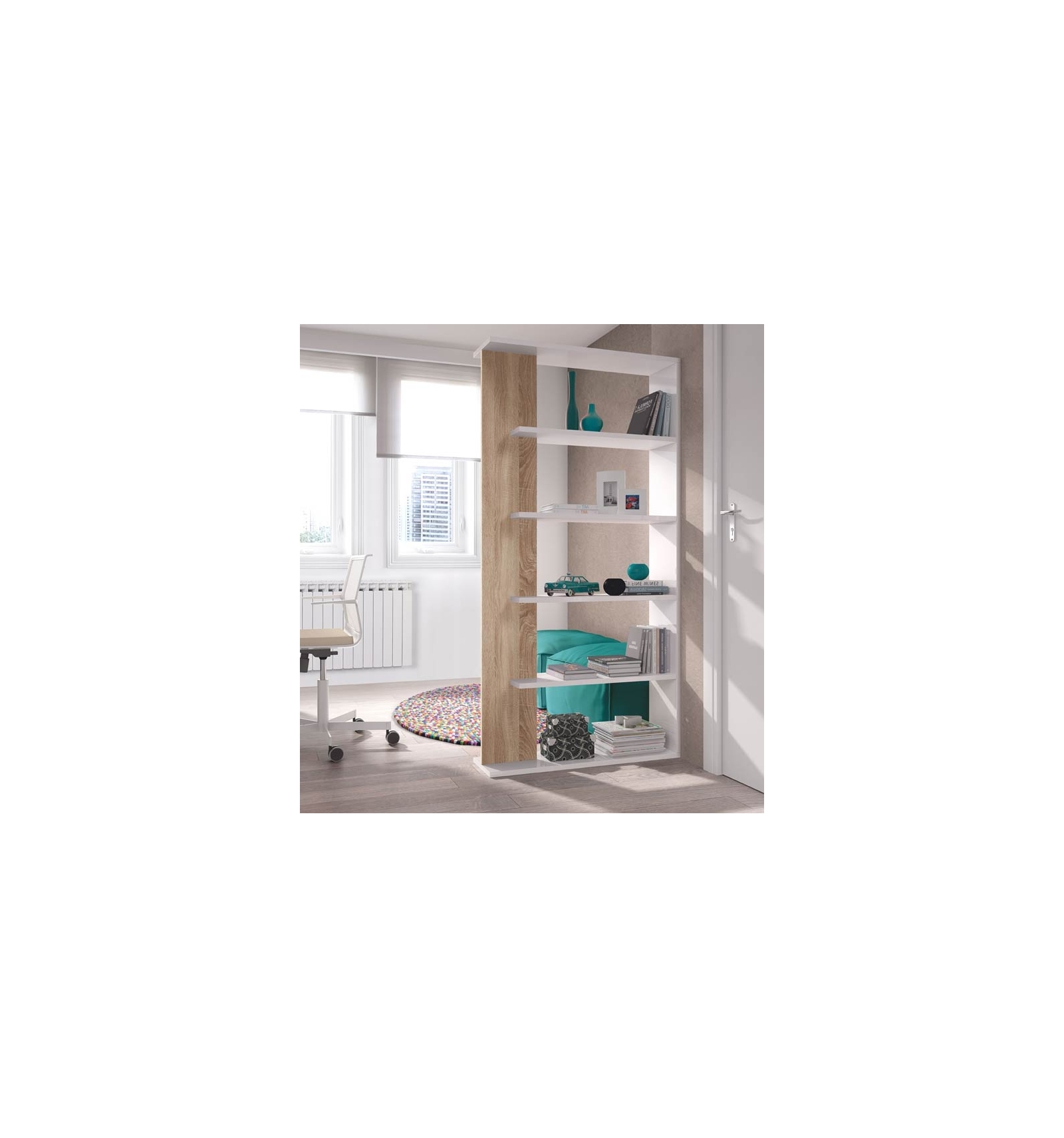 Estantería divisoria muy práctica y funcional que te ayudará a optimizar el espacio del salón, despacho o dormitorio. Con casi 2 m de altura, distribuidos en 5 estantes, la estantería divisoria Luciana ofrece gran capacidad de almacenamiento y solucionará tus problemas de orden ya que en ella podrás colocar desde tus libros o películas favoritas hasta elementos decorativos.