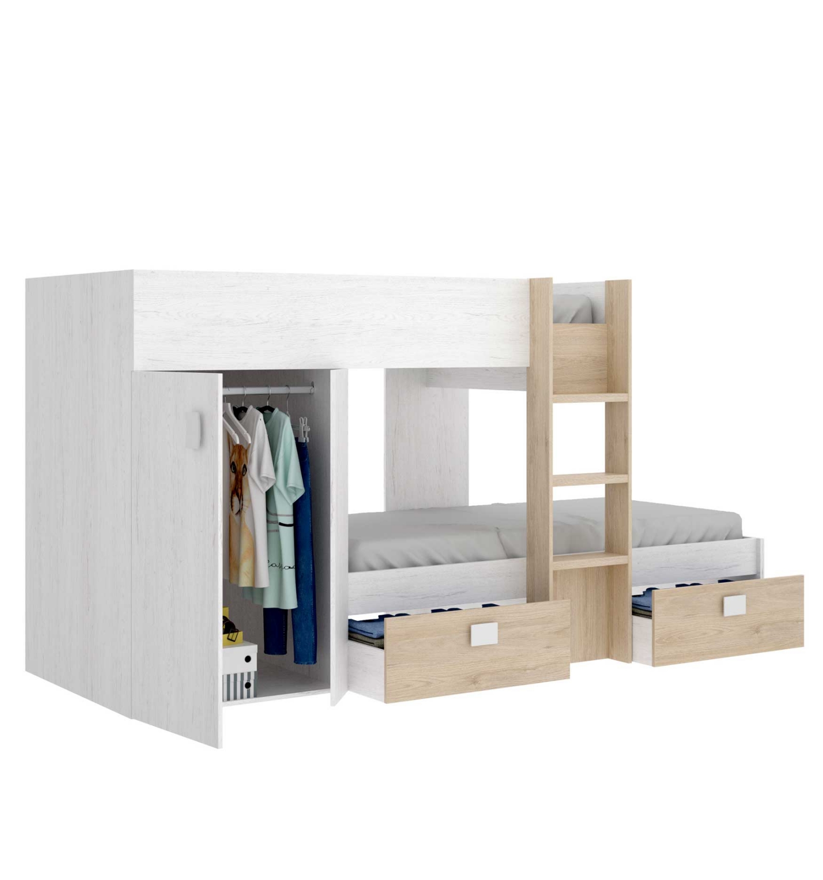 La Cama Tren Colin combina diseño nórdico, funcionalidad y resistencia. Perfecta para quienes buscan aprovechar el espacio sin renunciar al estilo y la comodidad.