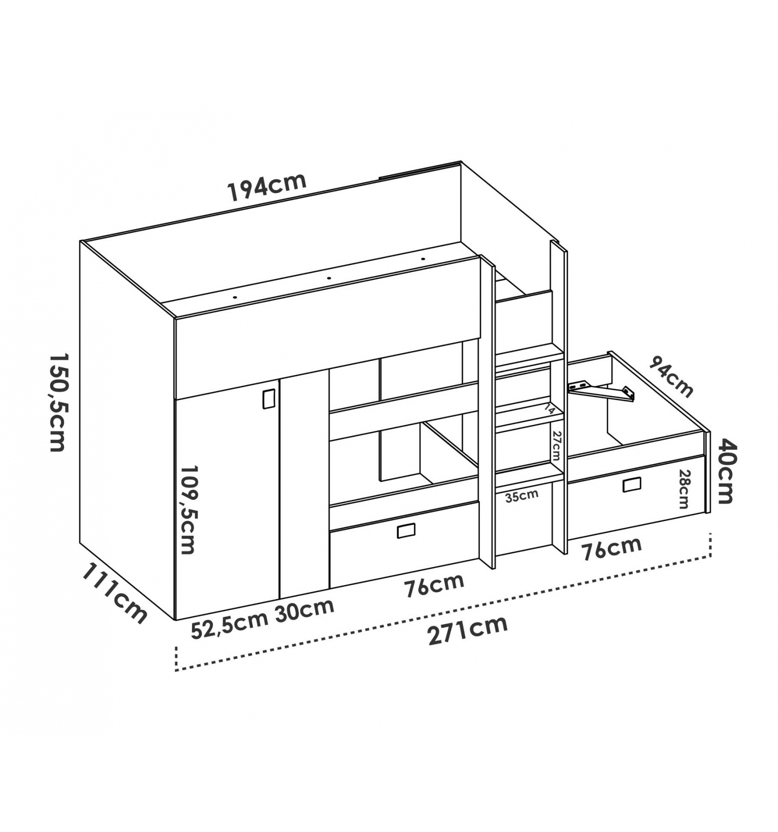 | Importante: | Cama superior no recomendada para menores de 6 años. Altura máxima colchón cama superior: 20 cms |