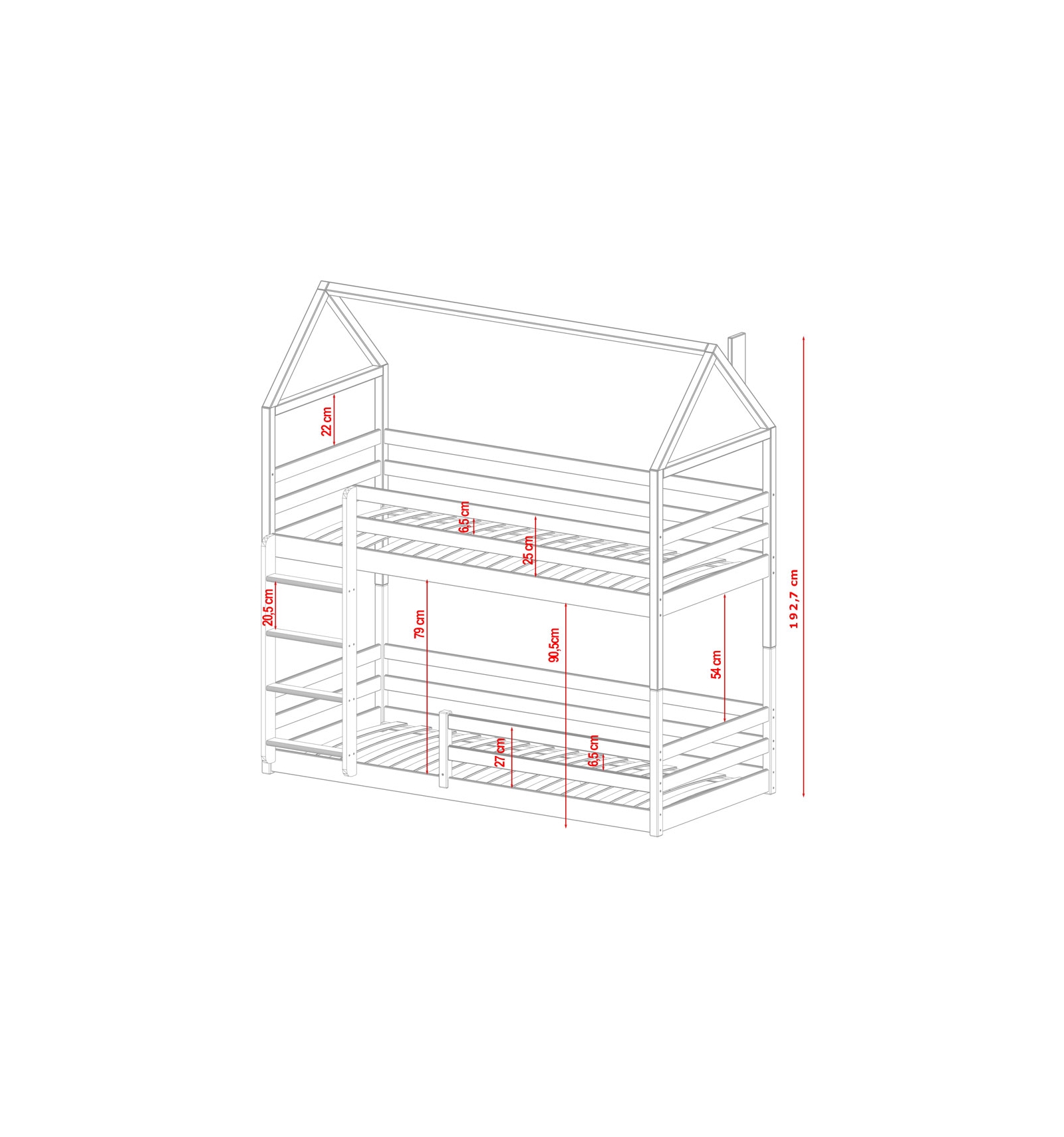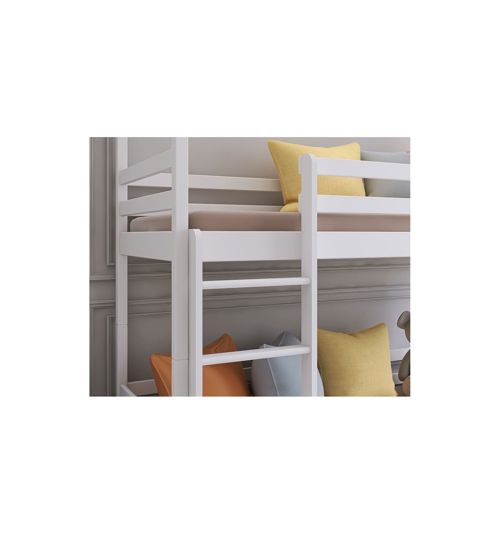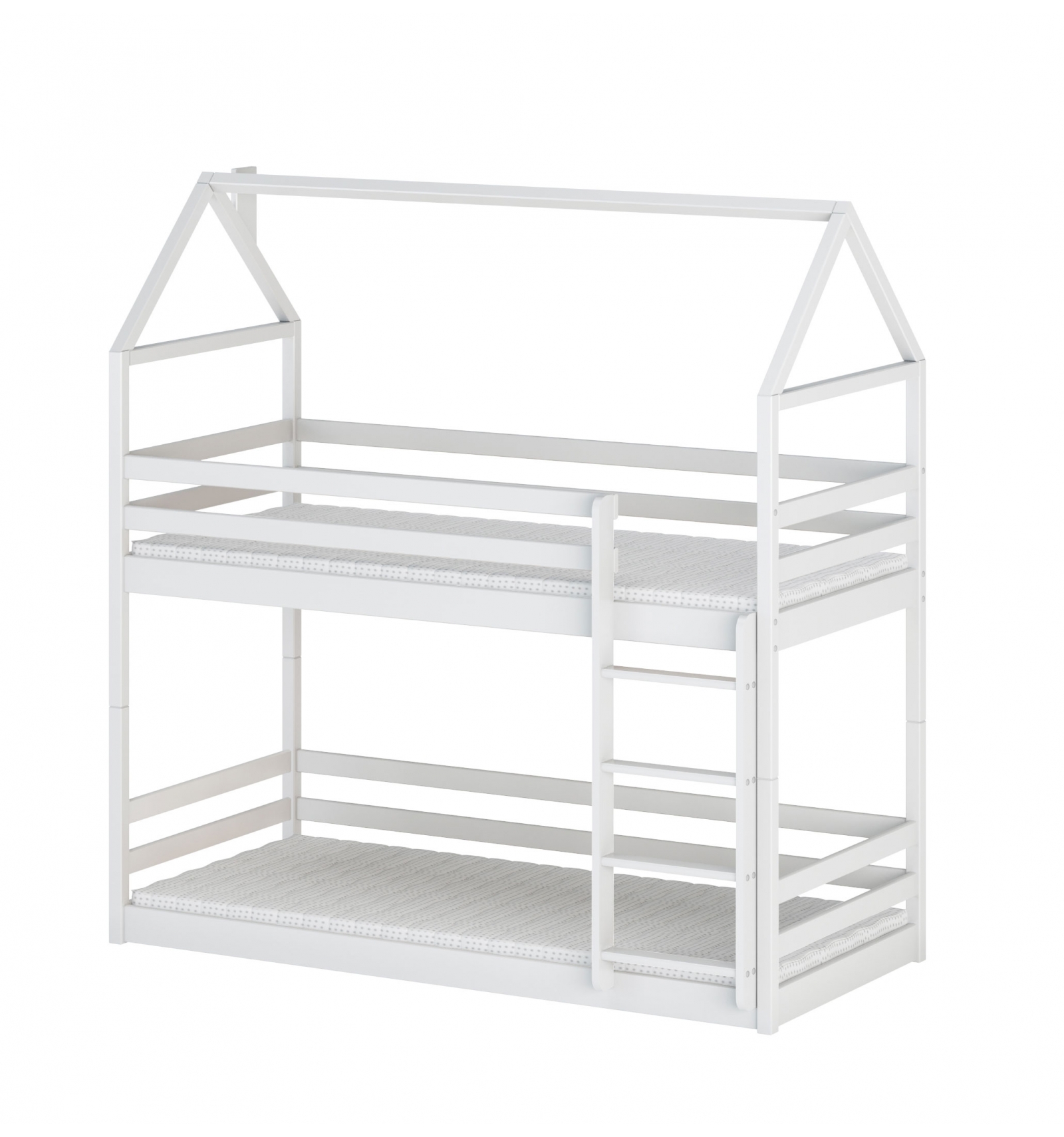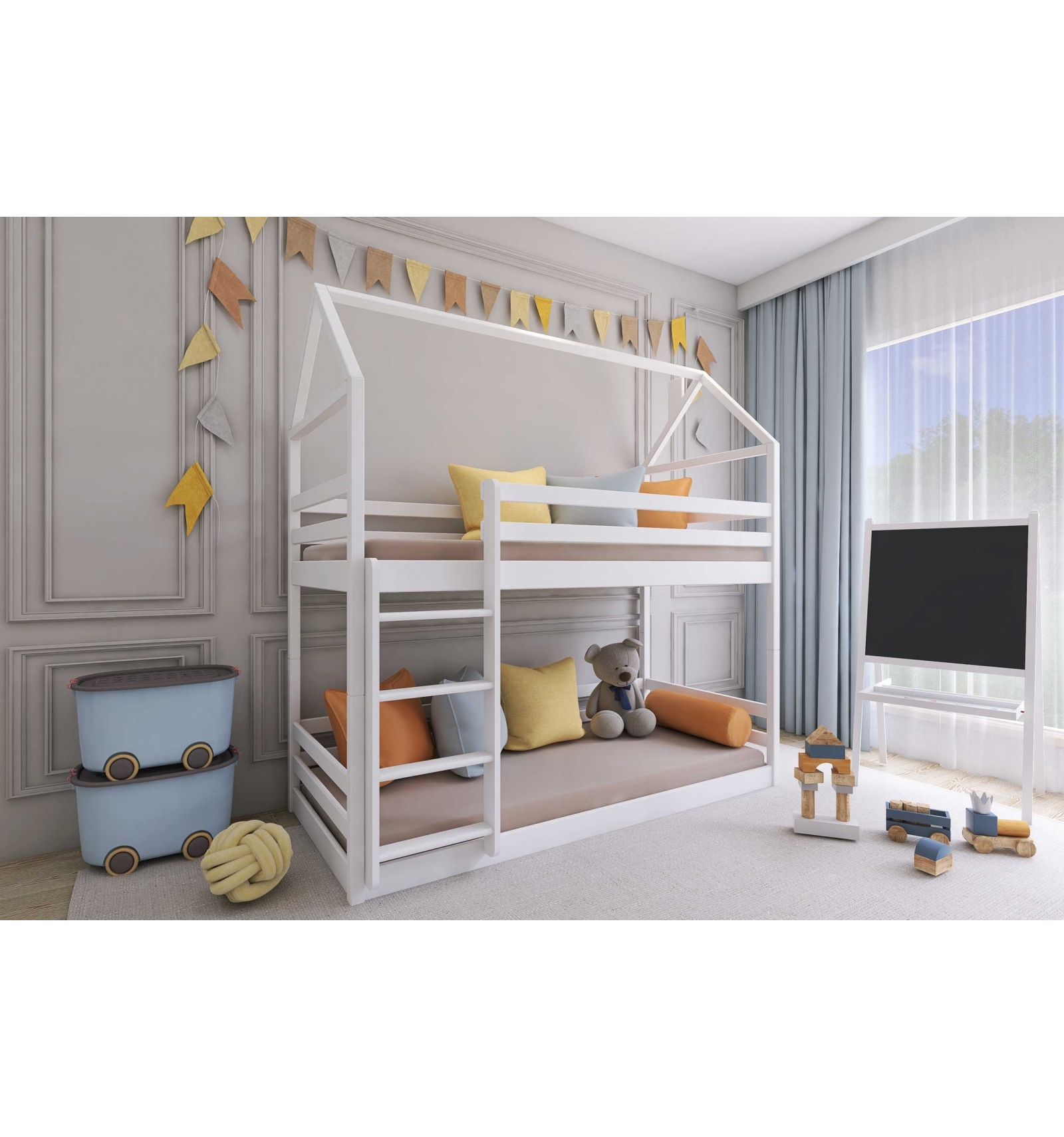 La Litera Miti convierte el dormitorio en un espacio de ensueño. Su forma de casita, unida a su estructura sólida de madera de pino, garantiza seguridad y diversión a diario. Ideal para compartir habitación con estilo y comodidad.