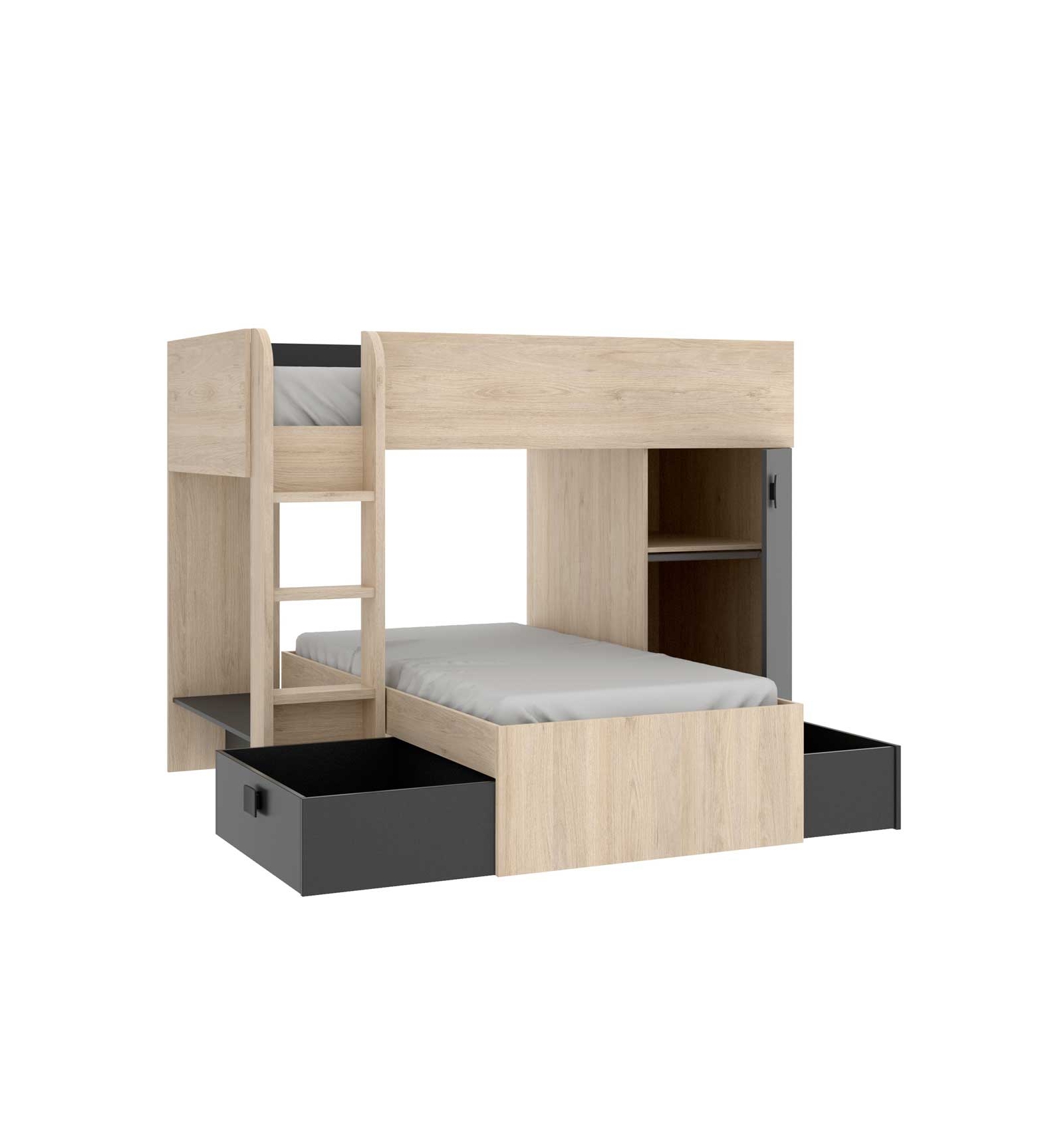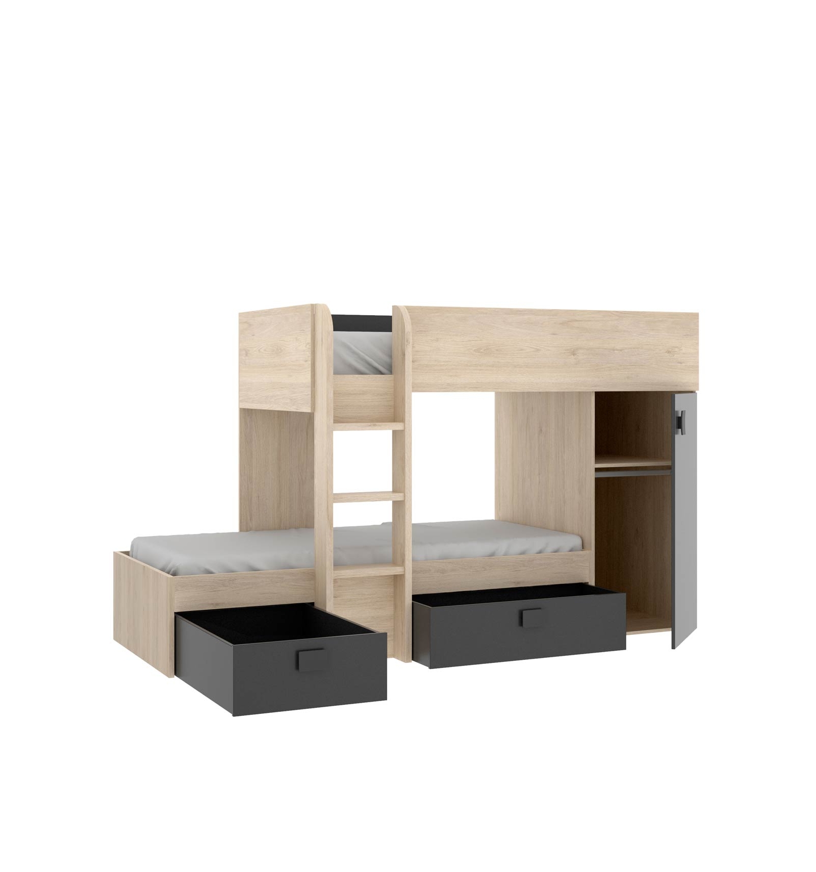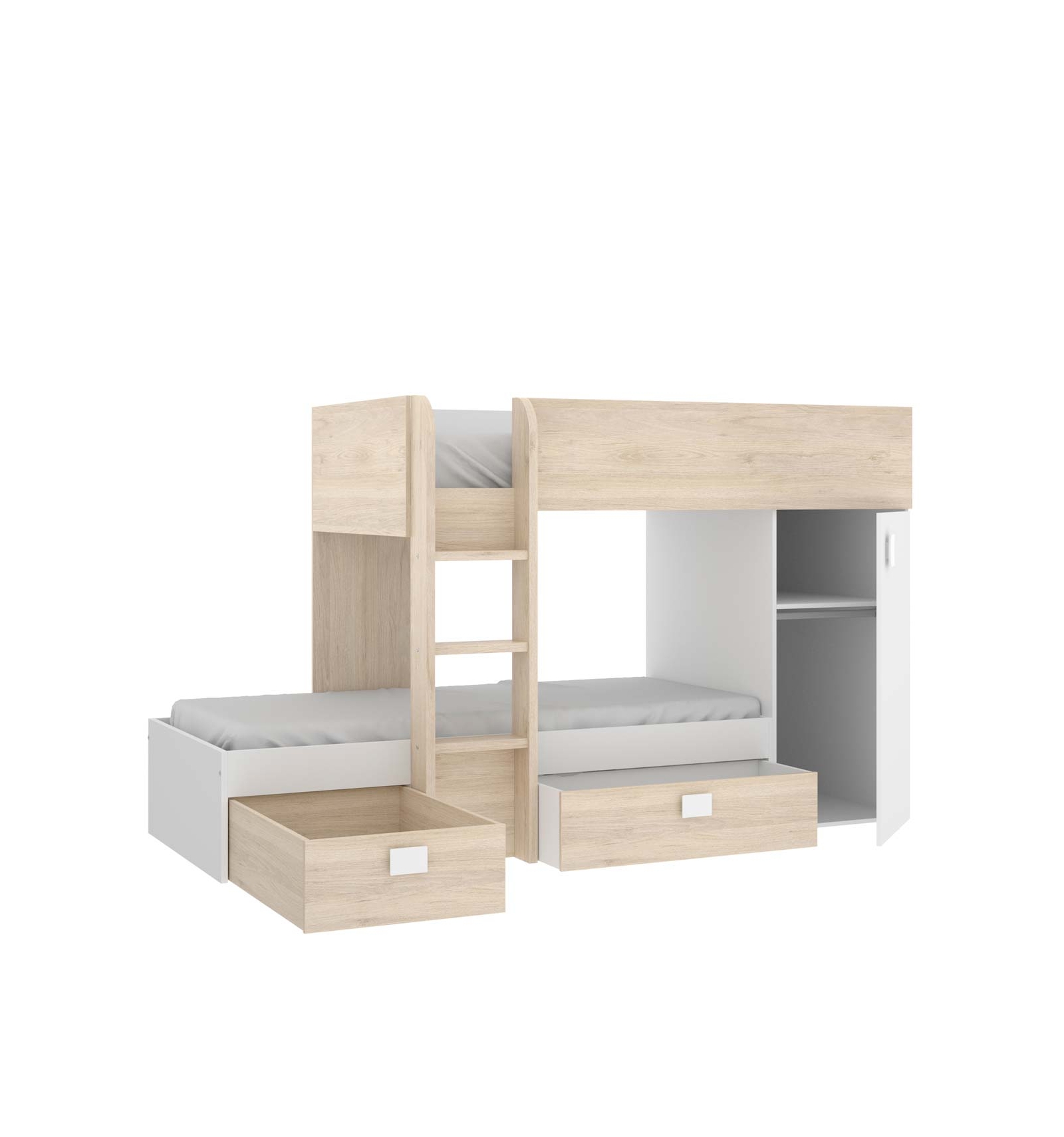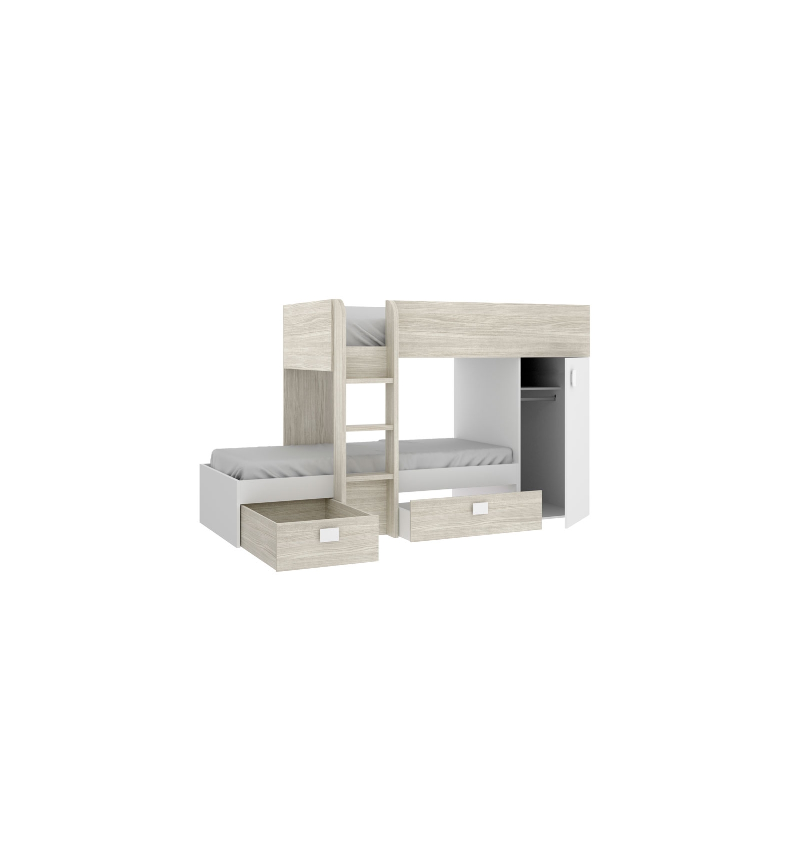 La Litera Modular Duo ofrece una solución completa para optimizar el espacio en dormitorios infantiles o juveniles. Su diseño moderno y su montaje adaptable permiten aprovechar cada rincón con estilo y orden.