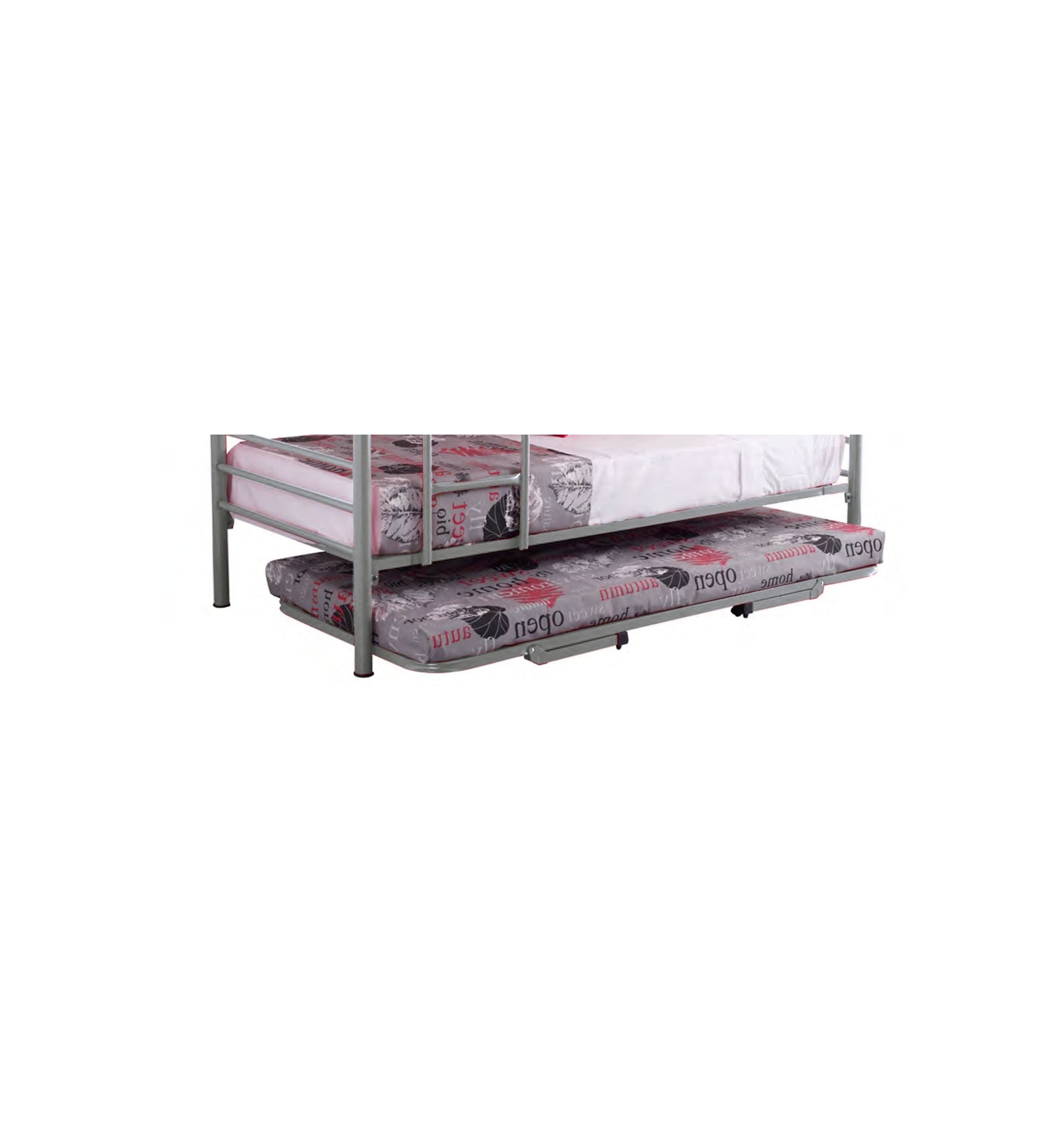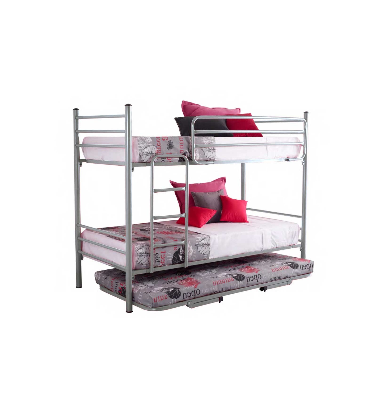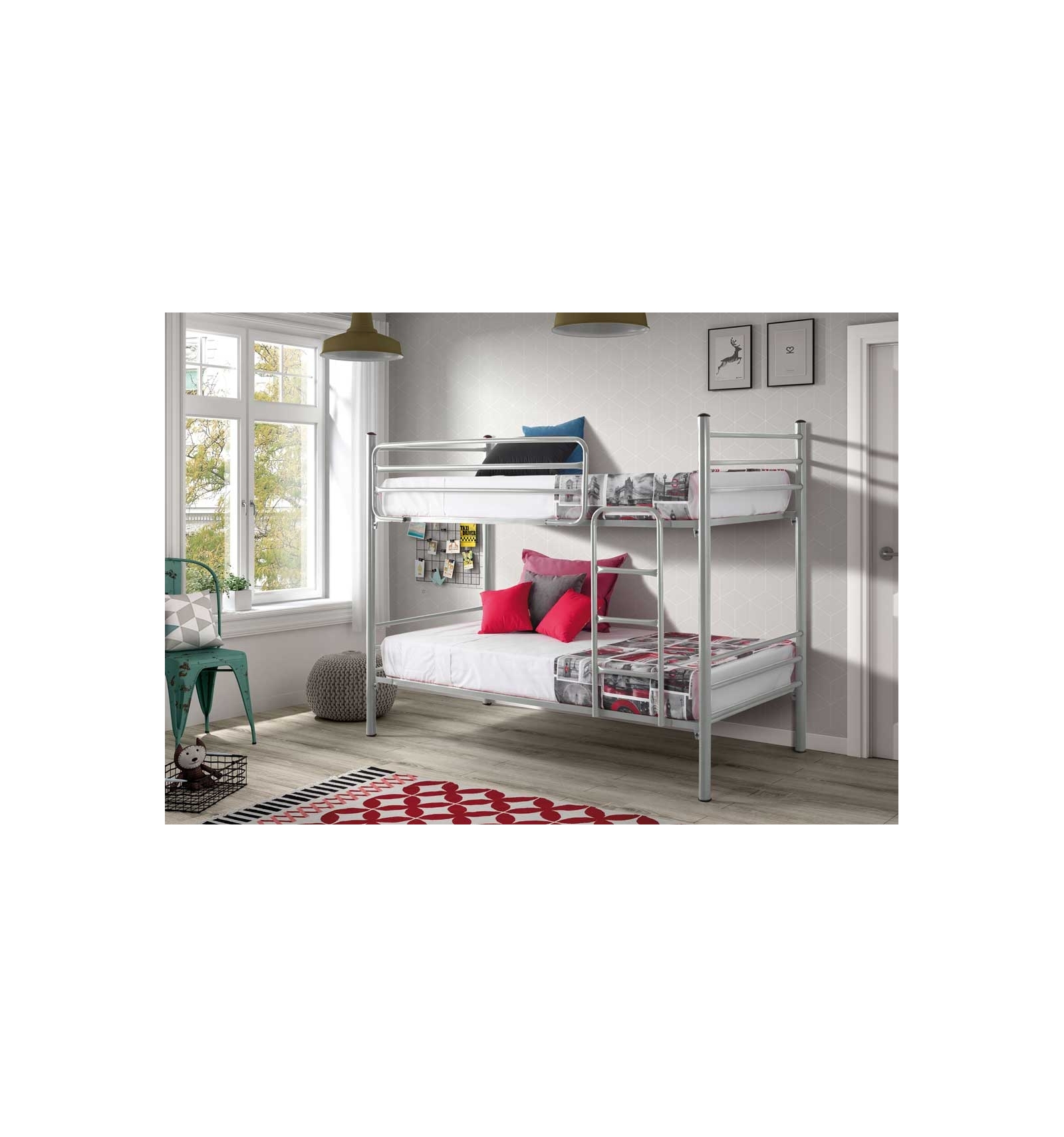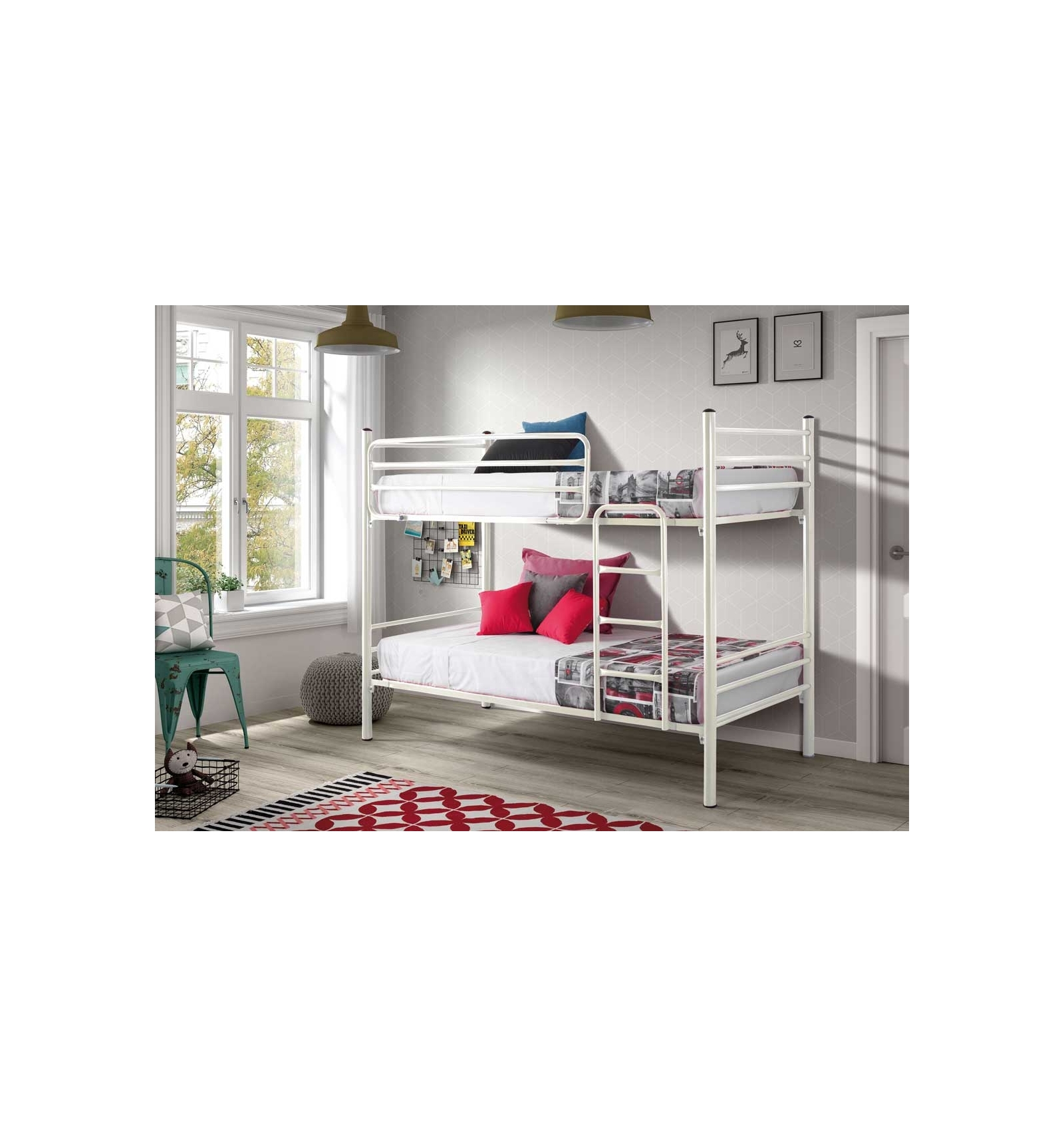 La litera Polar es la solución perfecta para aprovechar al máximo el espacio con estilo y seguridad. Su estructura metálica reforzada de 50 mm y los somieres de madera garantizan un descanso estable y duradero.