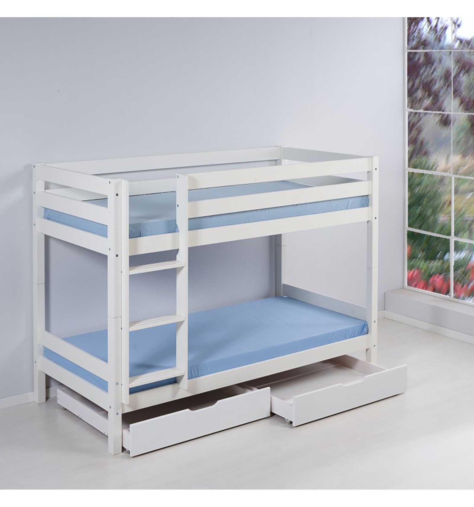 | Medidas colchón: | 200 x 90 cm, 190 x 90 cm (blanco lacado), 185 x 90 x 12 cm (cama supletoria) |