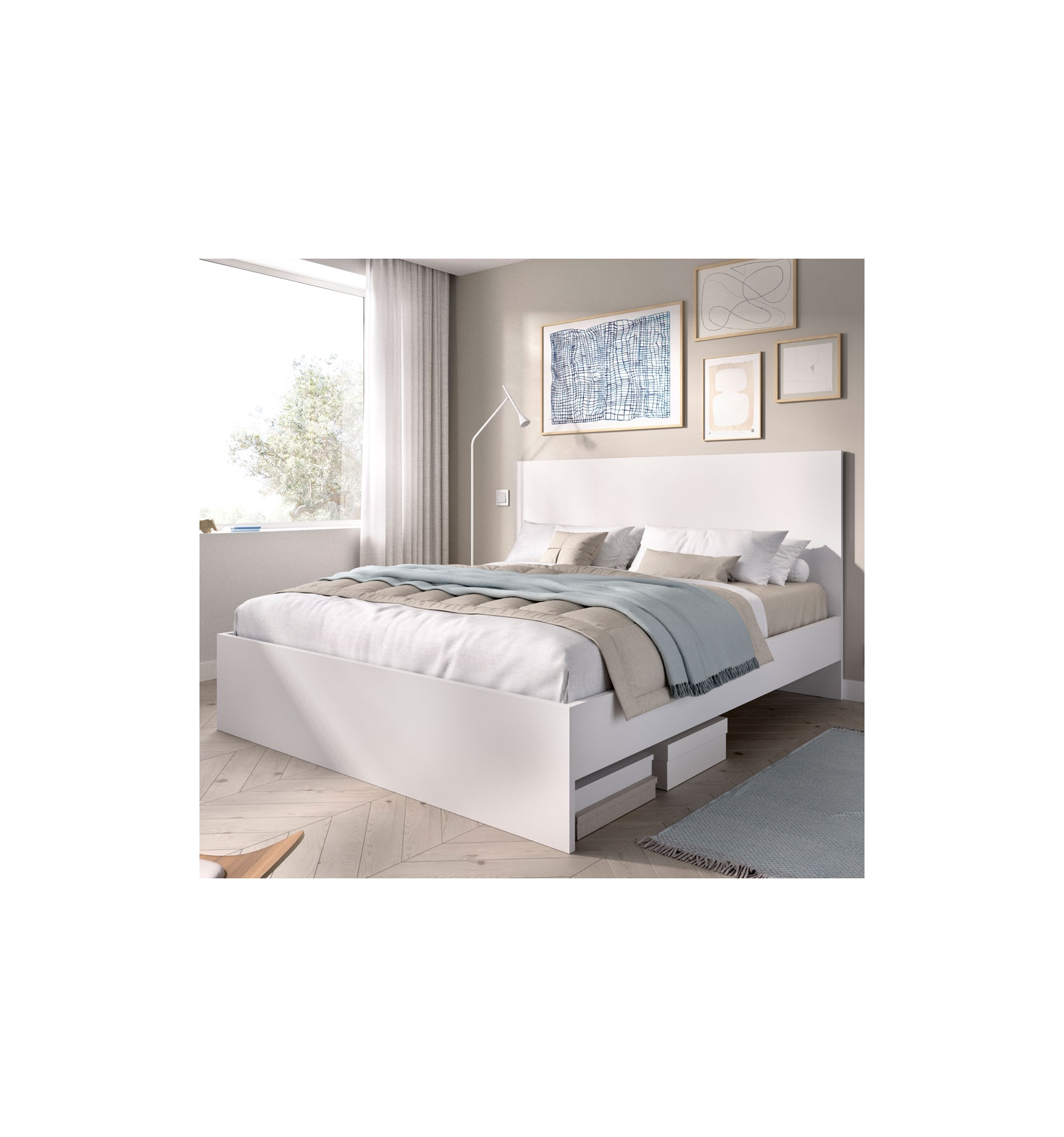 MODERNA CAMA MATRIMONIAL DE DISEÑO MINIMALISTA Y DISPONIBLE EN DOS ACABADOS, BLANCO Y NATURAL