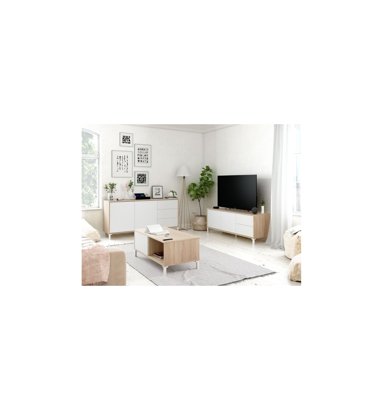 Te presentamos nuestra línea de muebles para el salón Peter. Se trata de muebles modernos, con combinación de roble y blanco y con una estupenda relación calidad-precio.