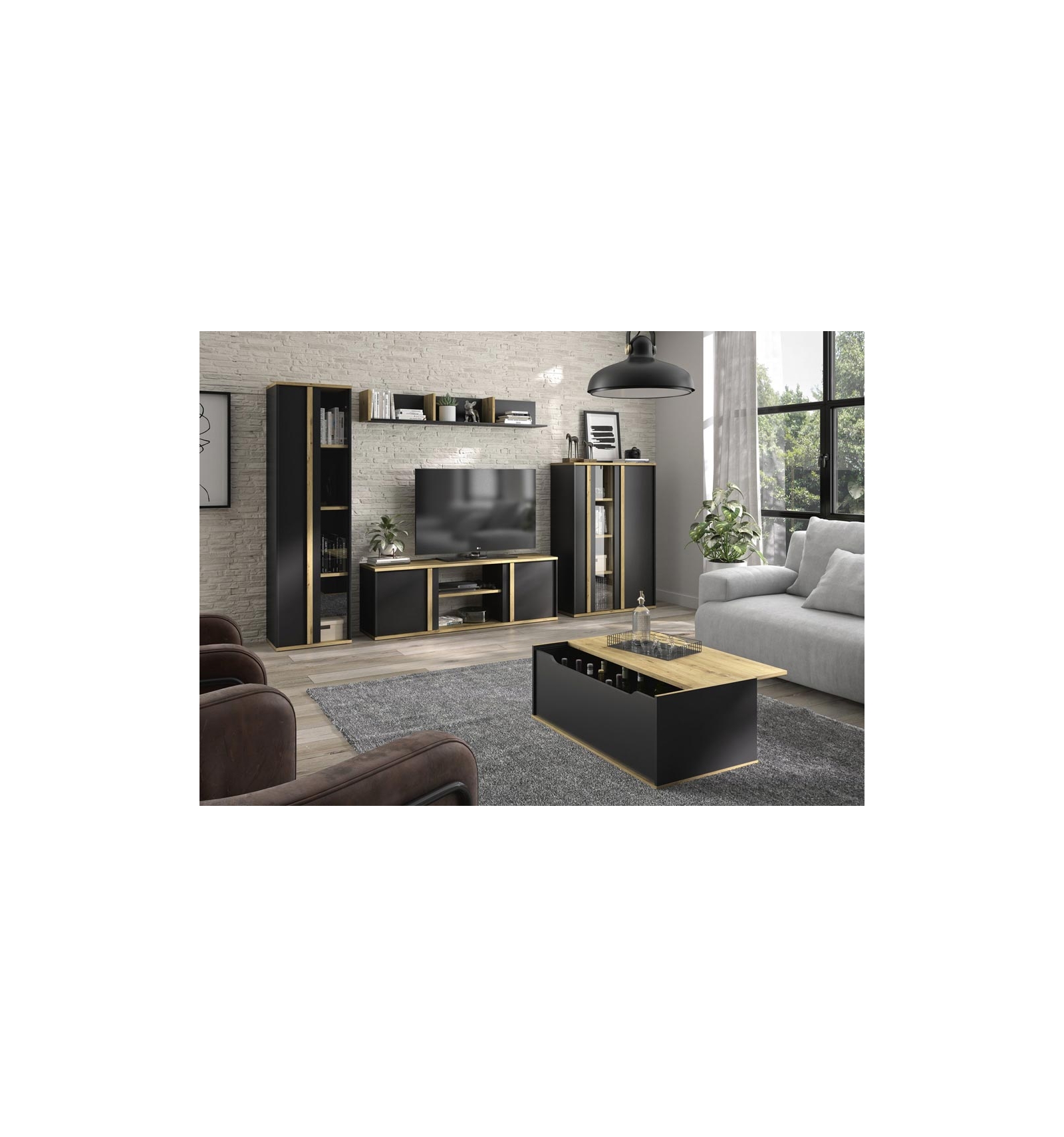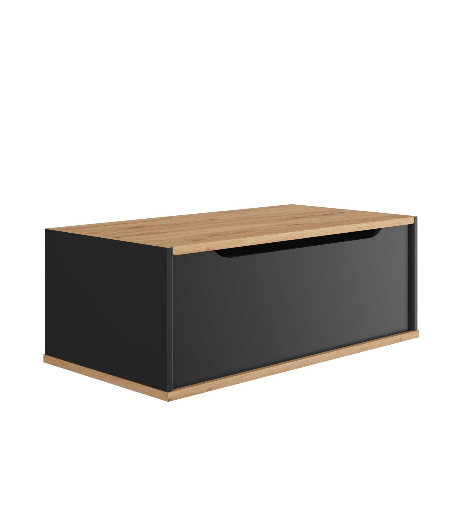 LA MESA DE CENTRO CON BAÚL ZONDA CUENTA CON UN DISEÑO ELEGANTE Y MODERNO QUE COMBINA LOS TONOS NEGRO Y ROBLE NATURAL.
