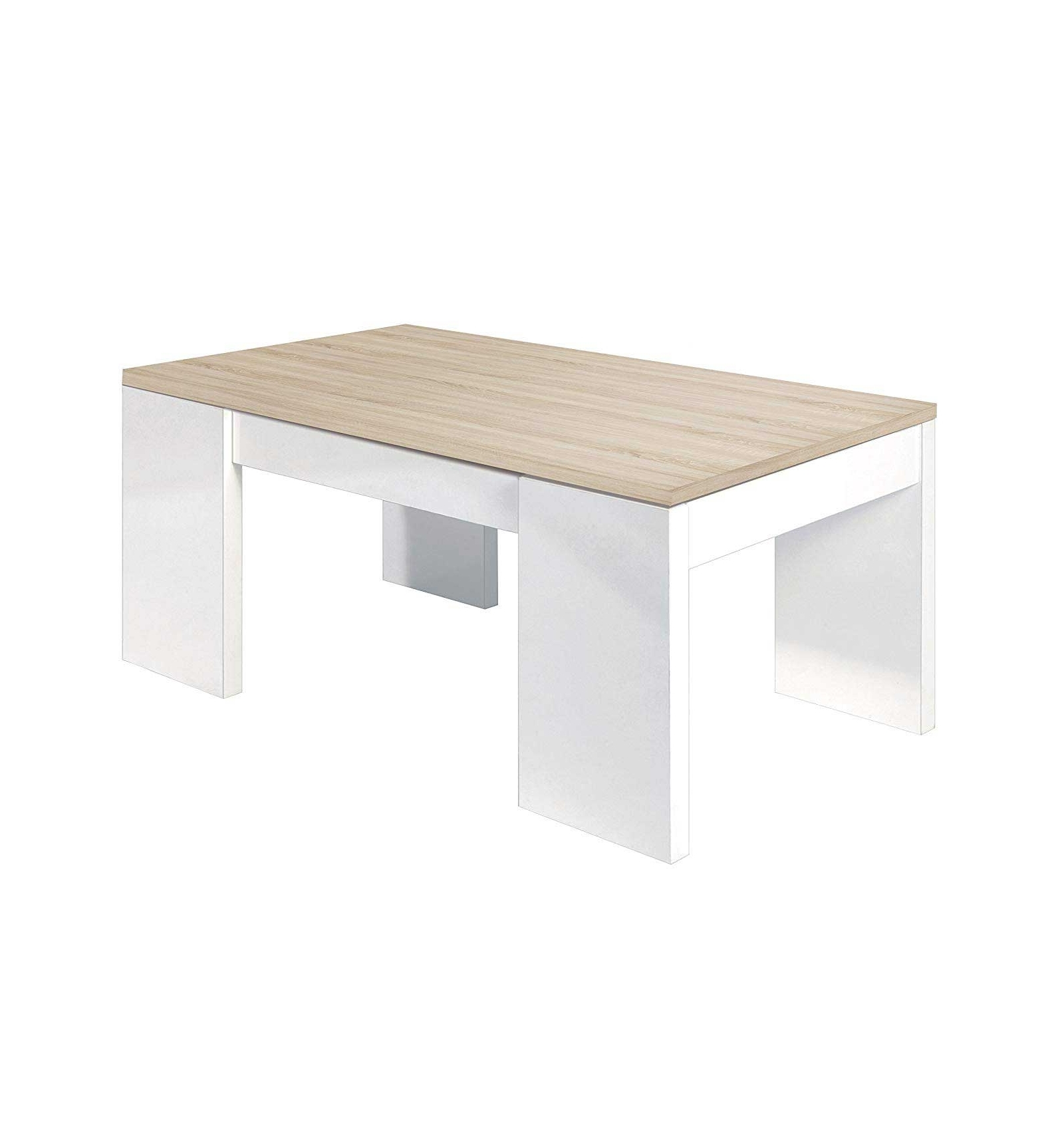 La mesa de centro elevable Davinia esta fabricada con materiales de primera calidad y por su cuidado diseño y variedad de acabados (blanco, roble o blanco / roble) te será muy fácil integrarla en cualquier estilo de decoración.