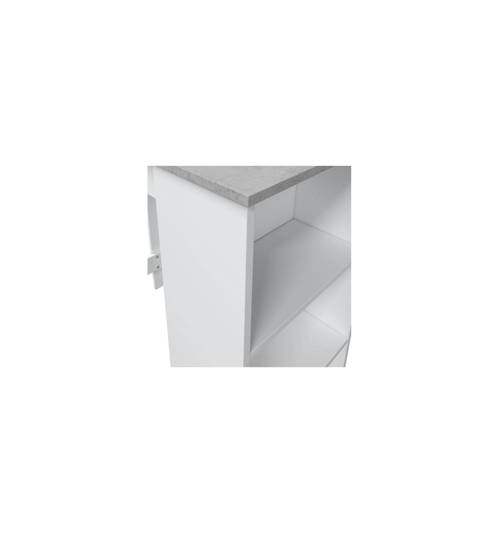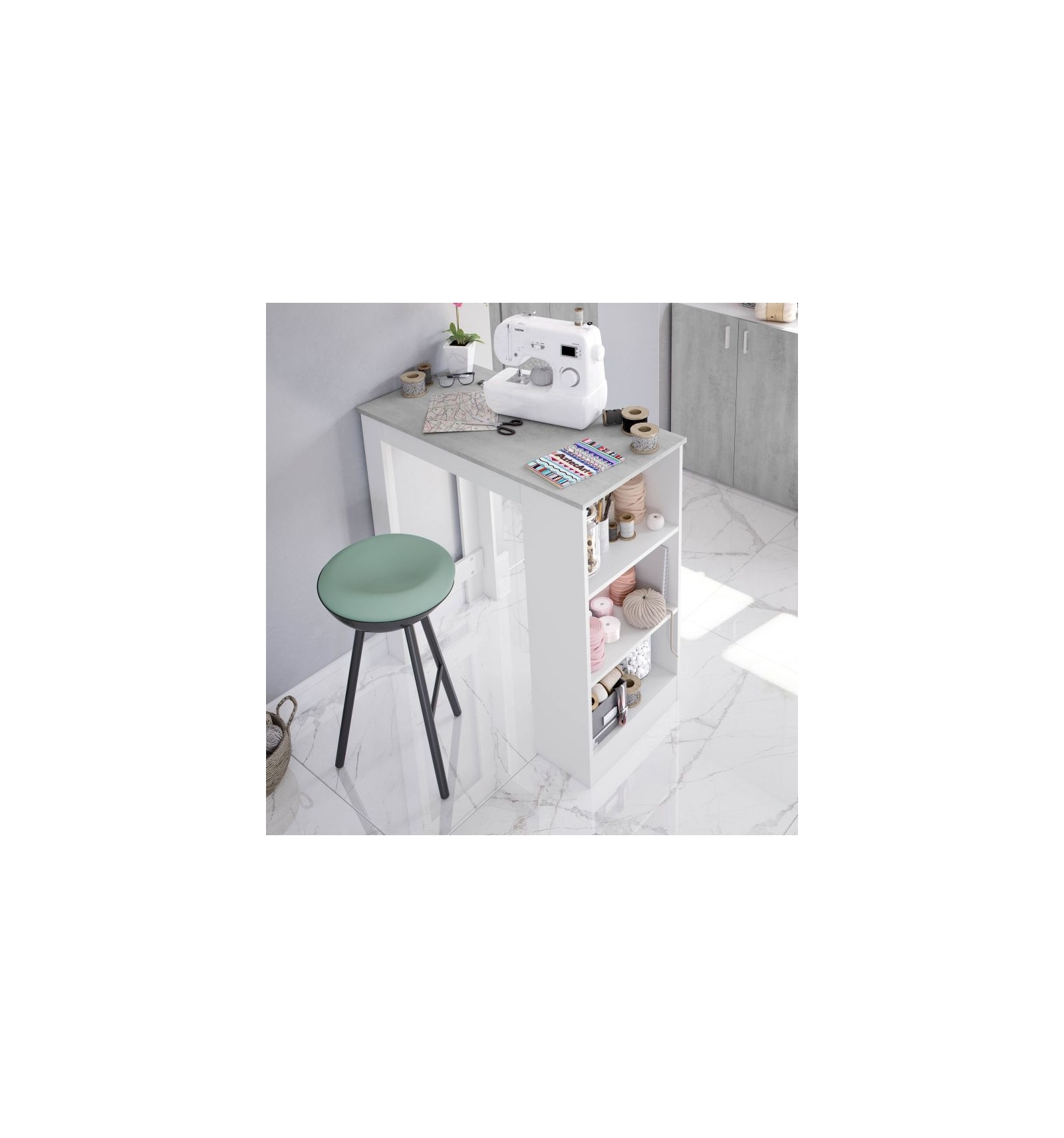 La mesa alta de cocina está fabricada en melamina que le ofrece resistencia y durabilidad y dispone de tacos ABS quitaruidos y antirayas en la parte inferior que mantienen la estabilidad y ayudan a proteger el suelo.