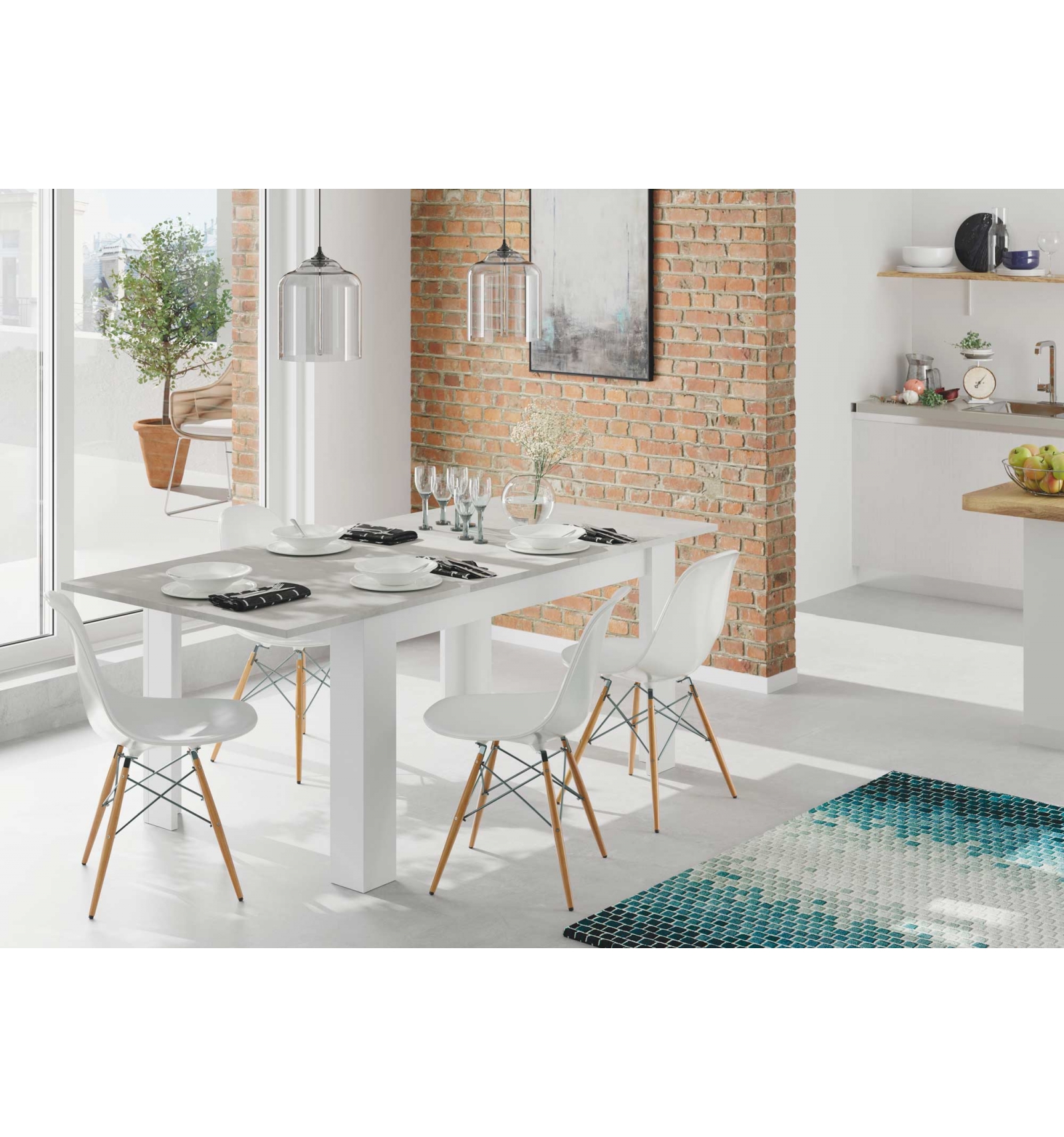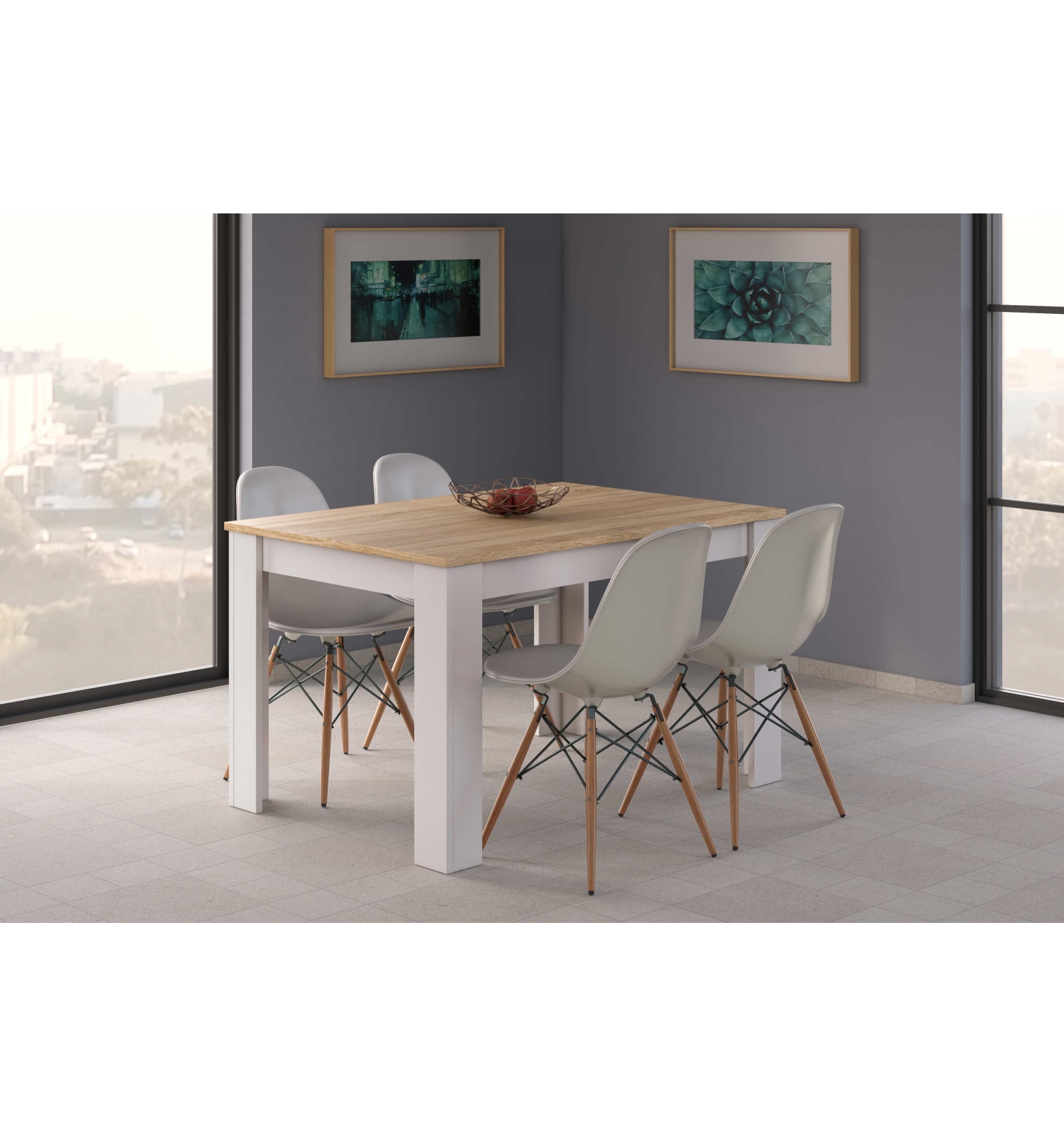 Por su diseño y colores disponibles la mesa de comedor extensible Jimena es fácil de combinar en cualquier ambiente pudiéndose adaptar al comedor o cocina aportando siempre un toque moderno.