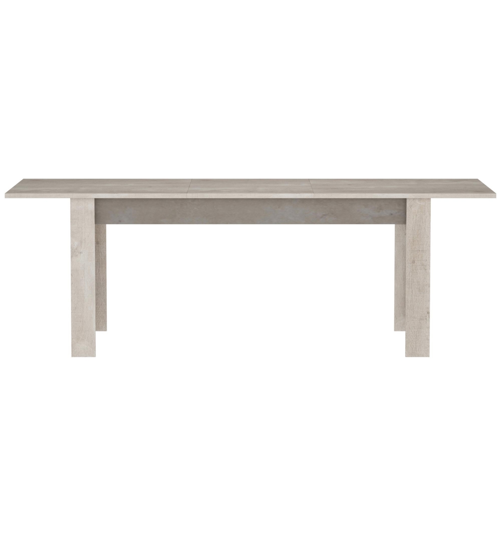La mesa de comedor extensible en posición normal tiene un largo de 170 cm, teniendo la opción de colocar la extensión central y alargarla hasta los 203 cm.
