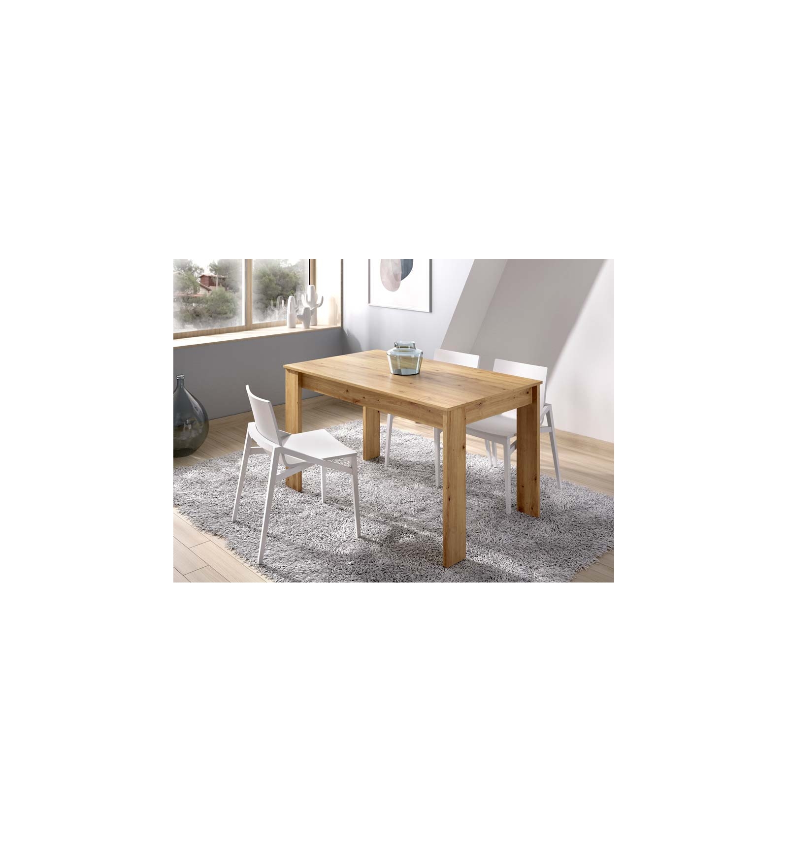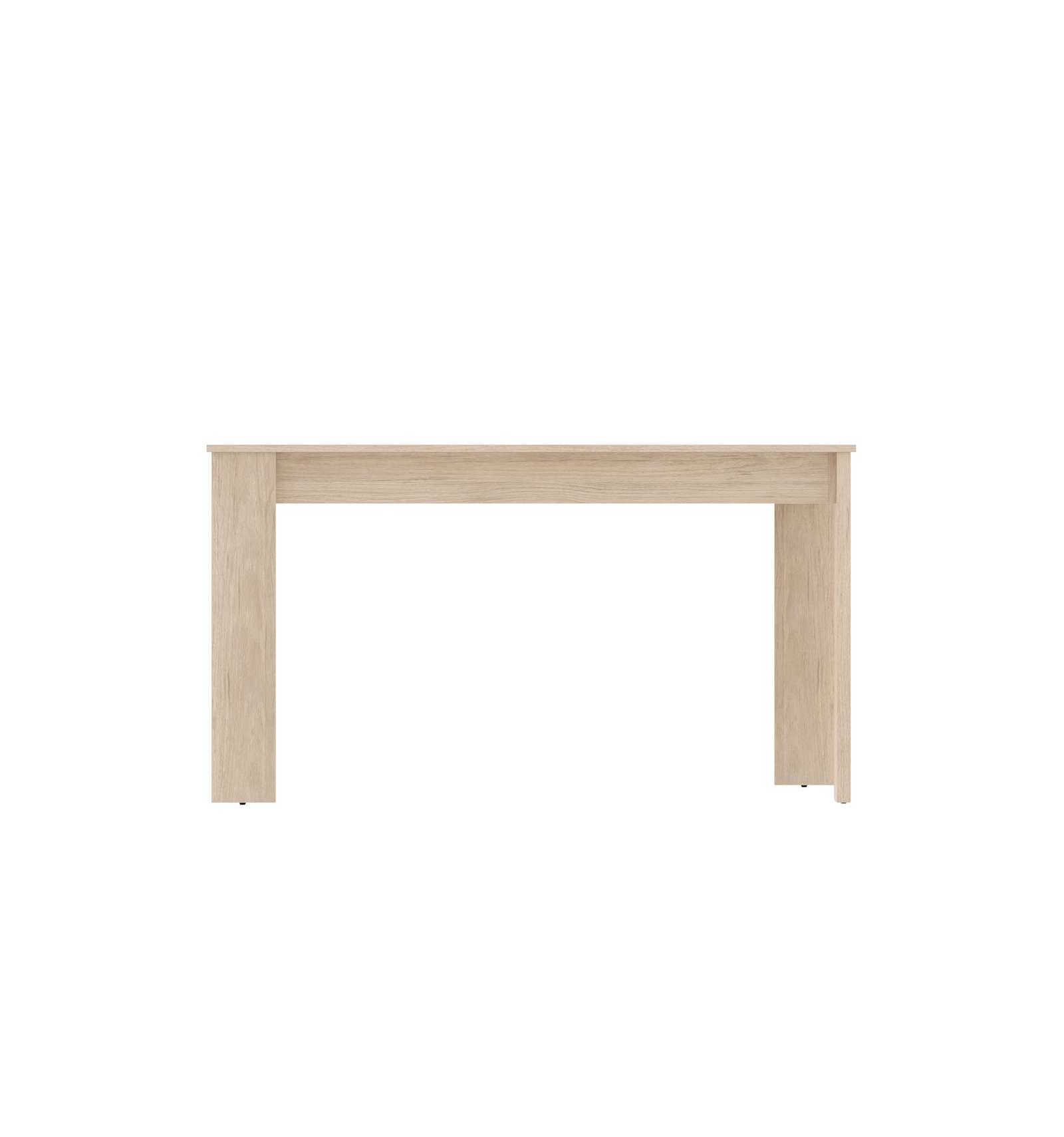 Con unas dimensiones totales de 139 cm x 77 cm de alto x 81 cm de ancho, esta mesa es lo suficientemente grande para acomodar a varias personas, y a la vez adaptable a casi cualquier comedor o cocina. Sus patas en el mismo acabado del tablero superior ofrecen una gran estabilidad y resistencia, lo que la convierte en una opción duradera para el uso diario. Además, su superficie es fácil de limpiar y mantener, ideal para hogares con niños o mascotas.