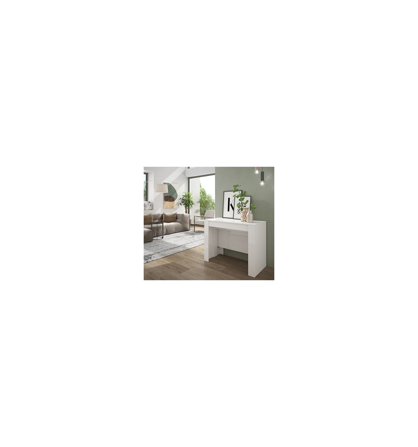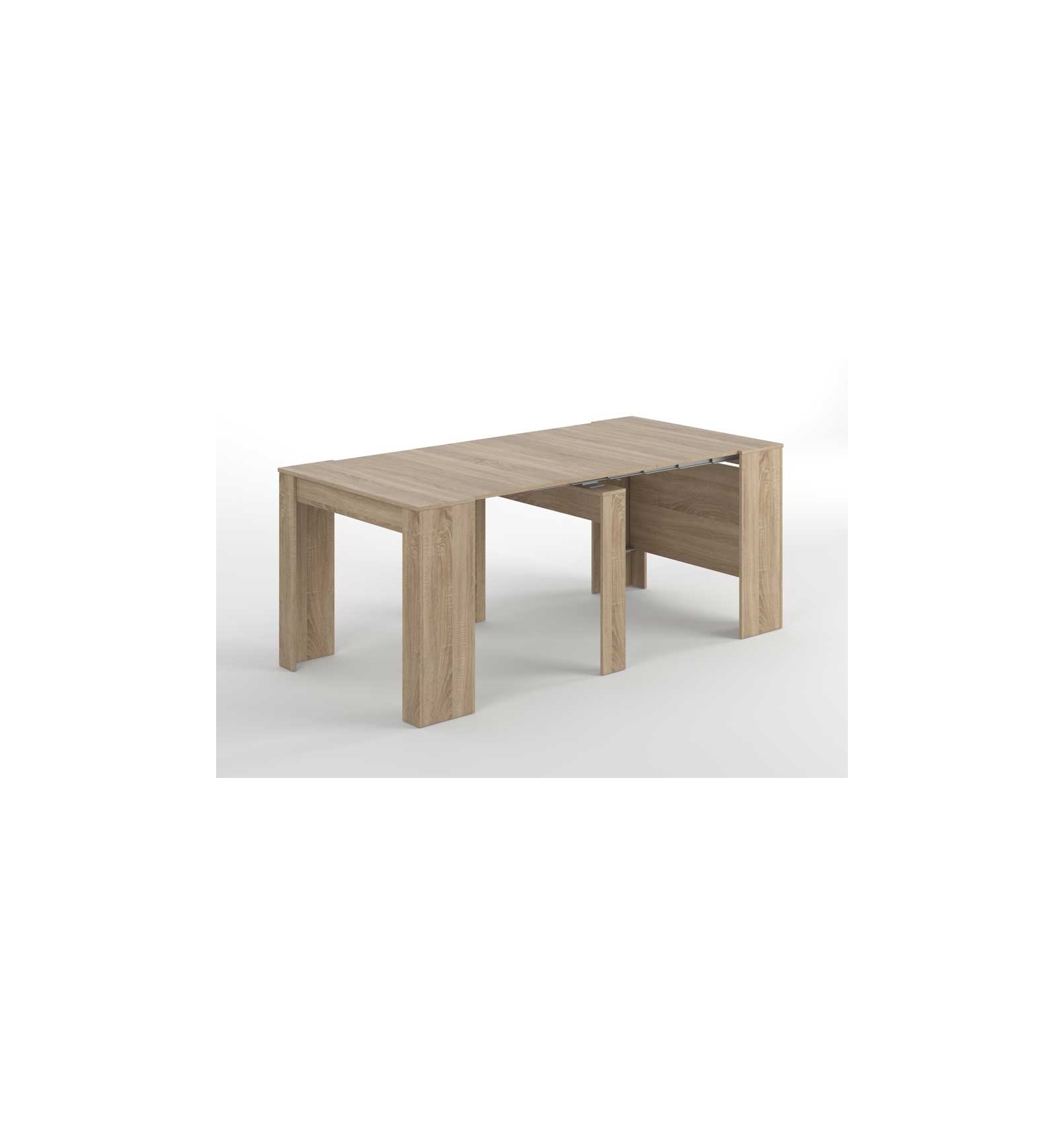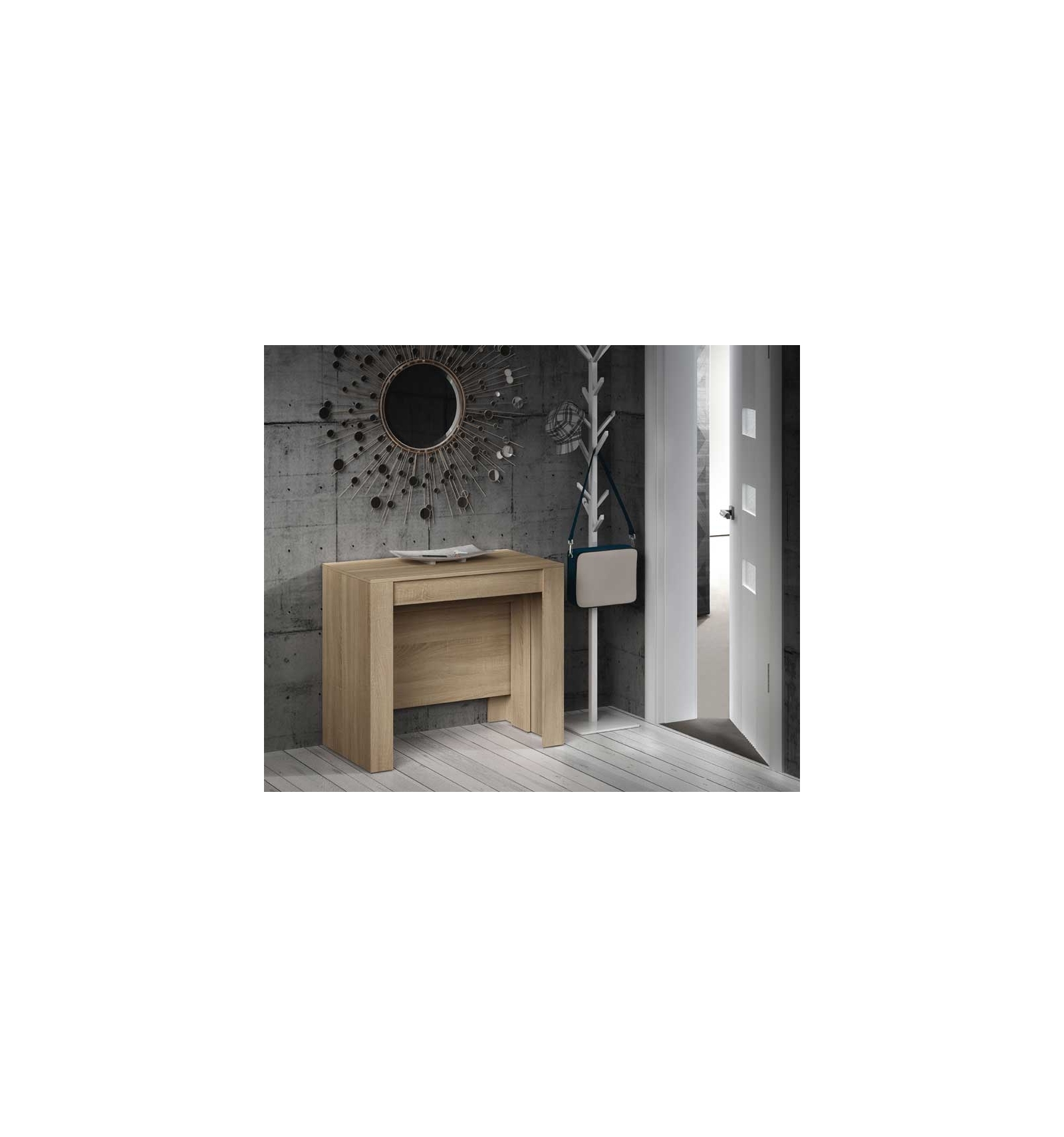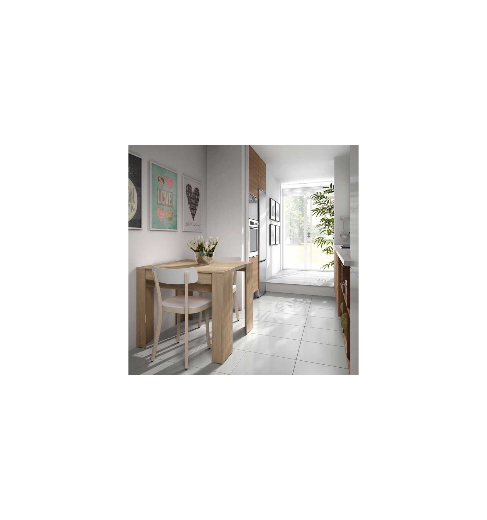Es un mueble muy versátil y funcional, que puede servirte de mueble de recibidor o escritorio cuándo está cerrada, mesa de cocina para un cómodo desayuno o como espectacular mesa de comedor para toda la familia cuando la abres.