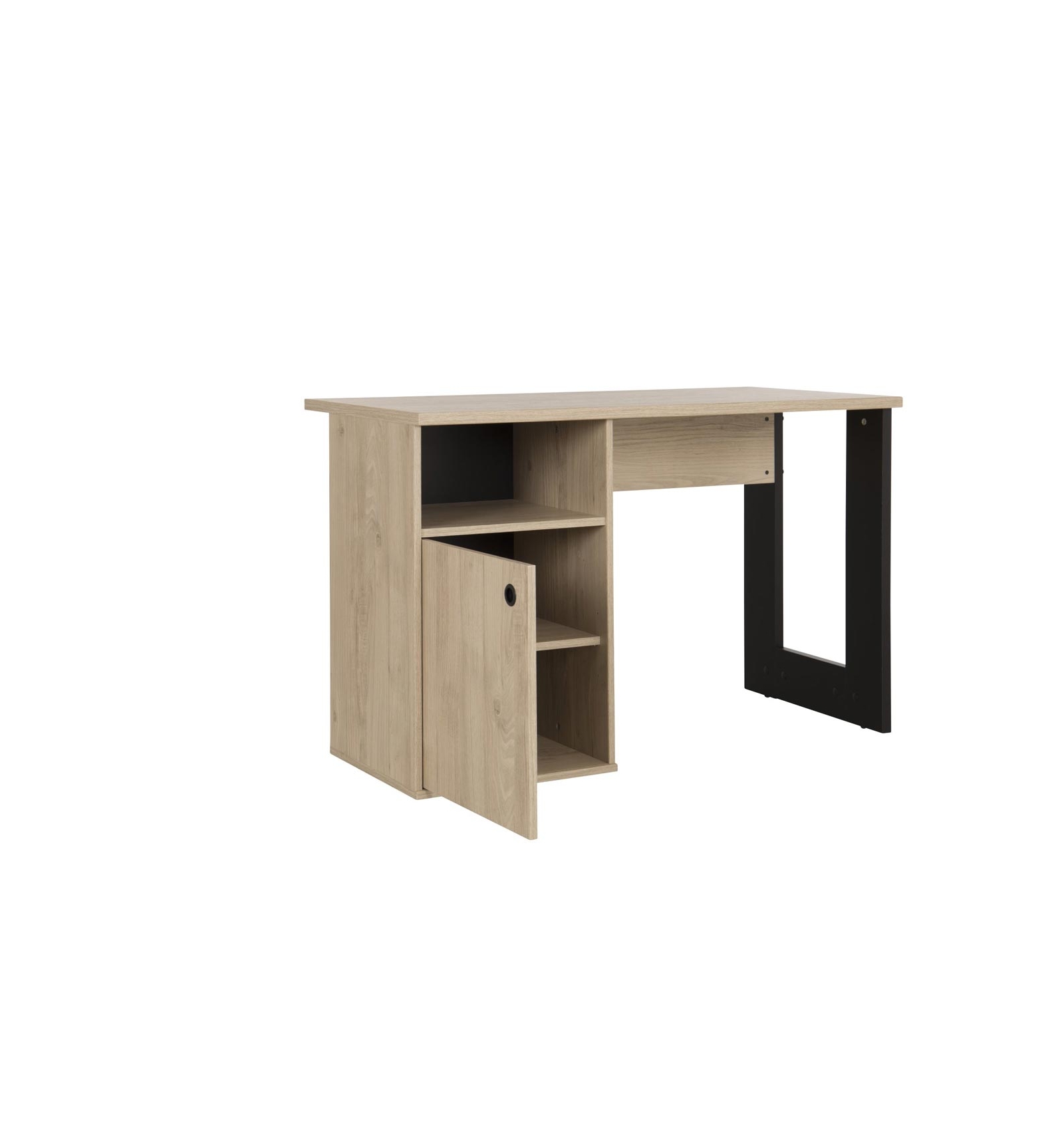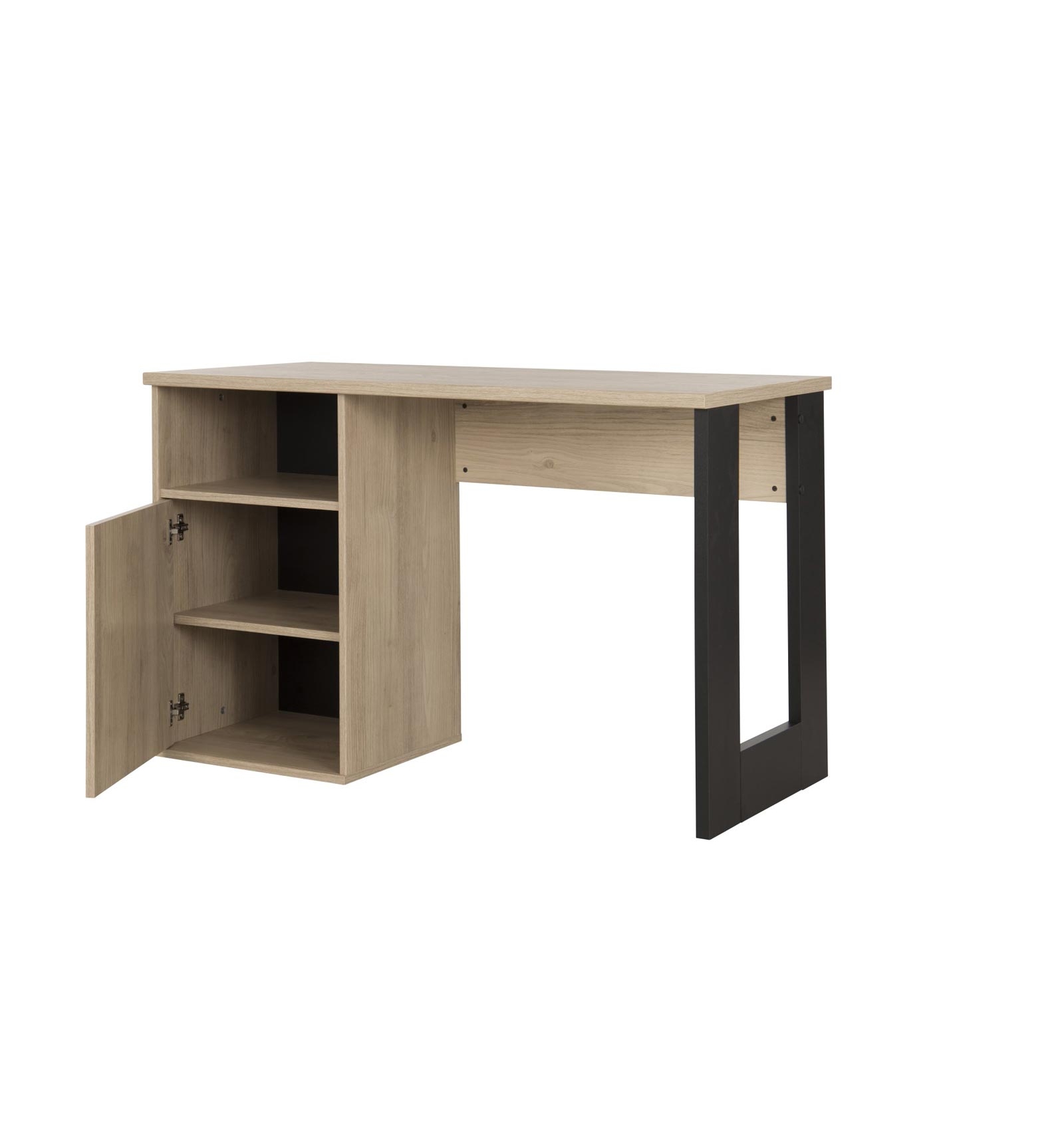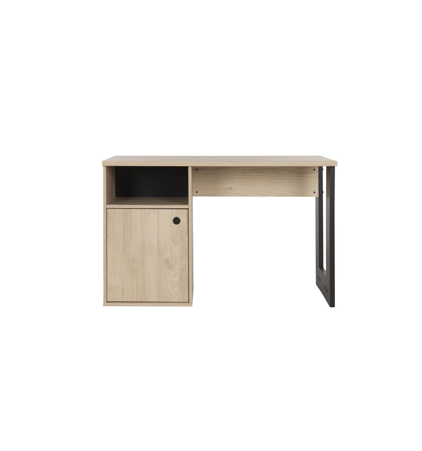 Este escritorio de estilo industrial destaca por su diseño moderno y simplicidad. Su amplia superficie de trabajo y capacidad de almacenaje posibilitan que pueda trabajarse cómodamente y de manera ordenada.